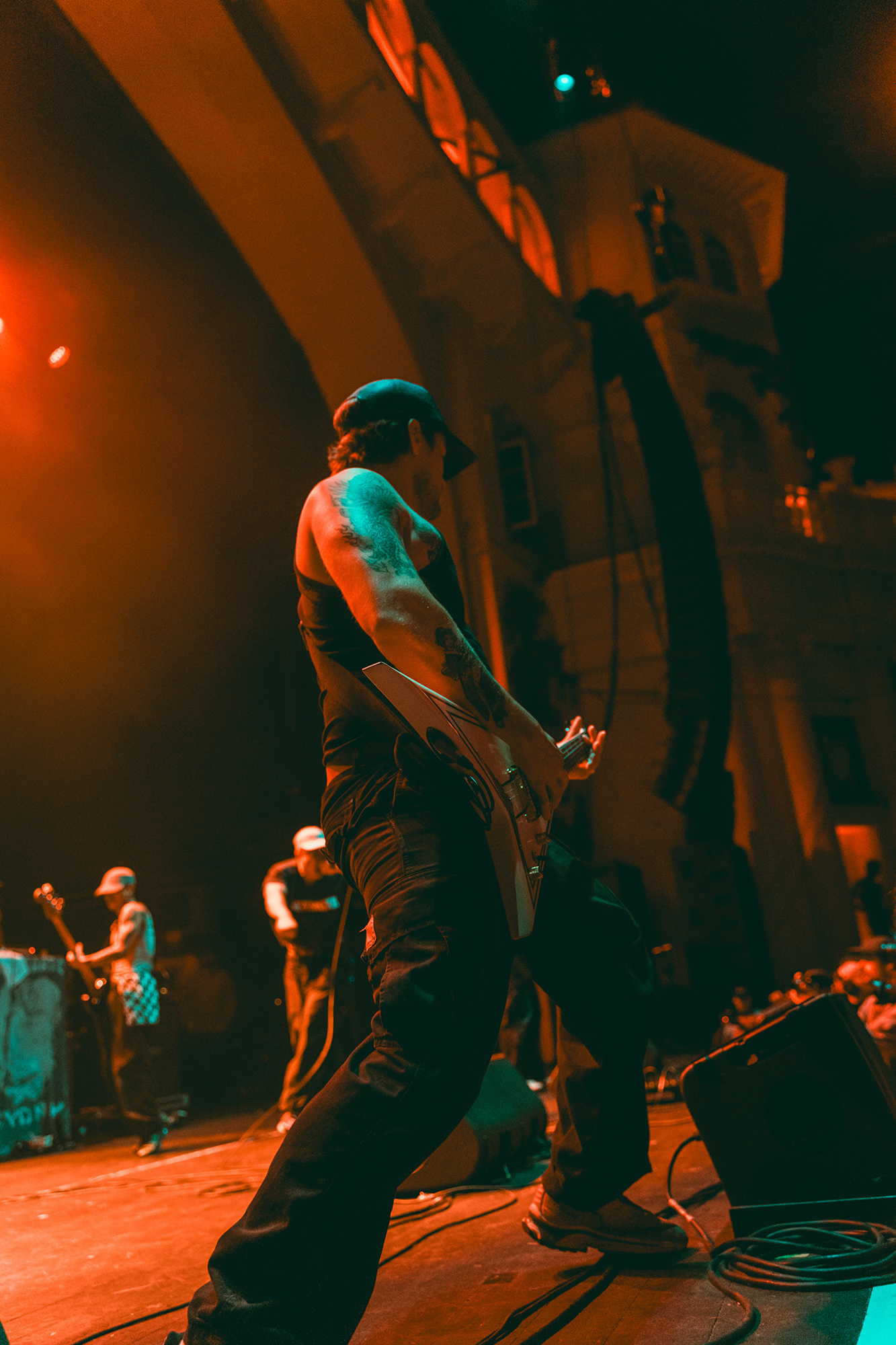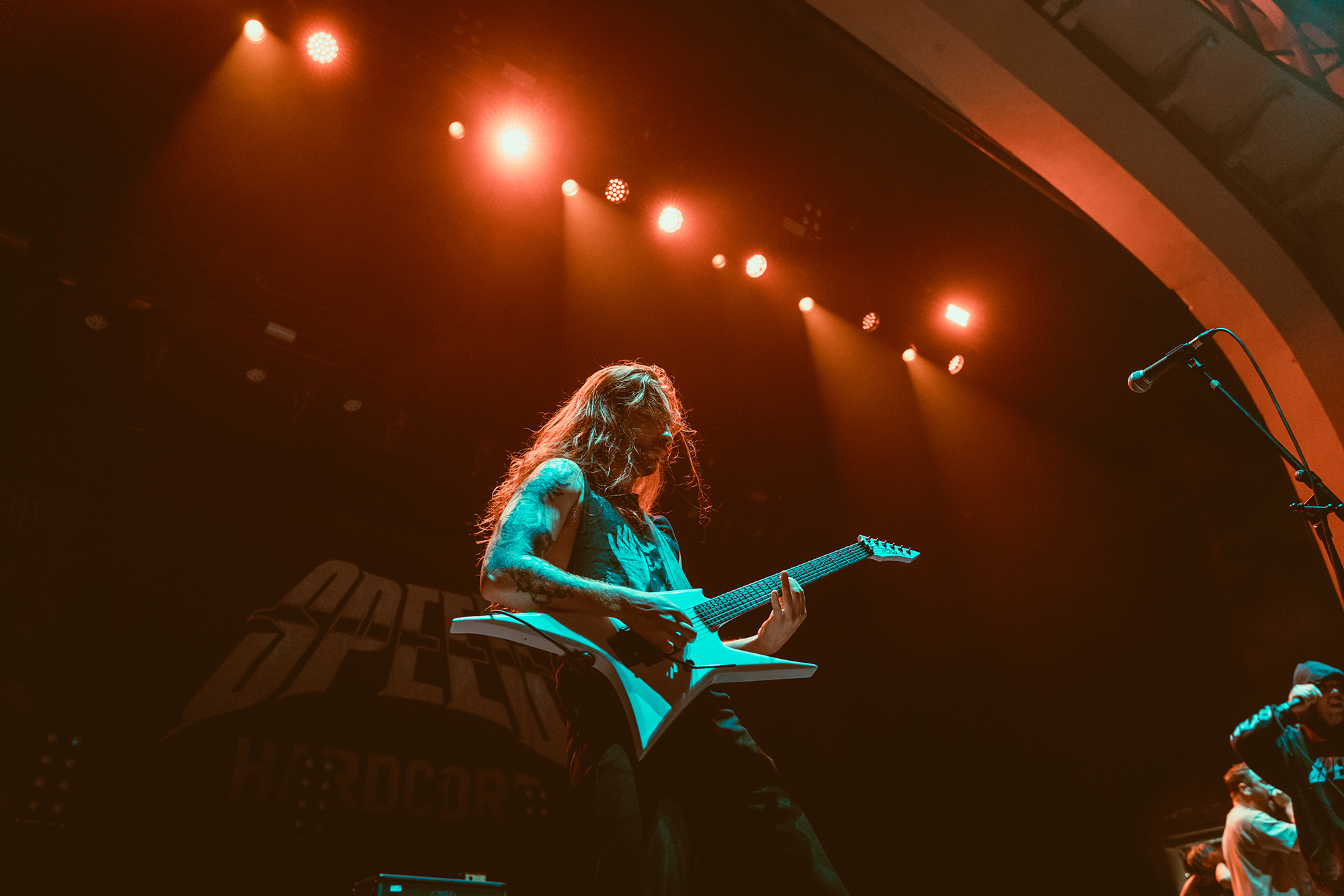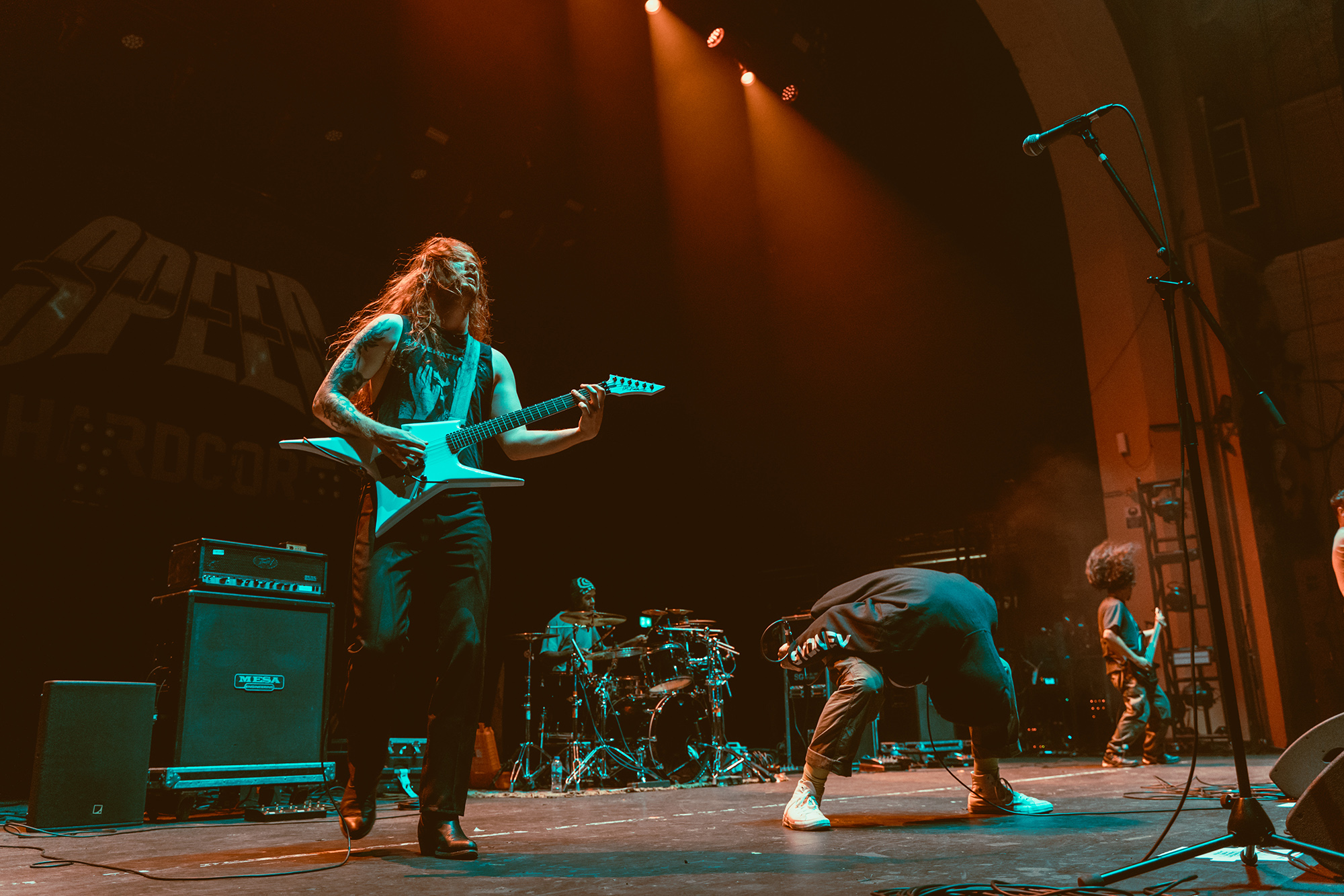 āSPEEEEEEED!ā The cries have gone up well before the band are onstage, but once they are they swiftly tear Brixton a new one. Playing a pure strain of hardcore with no frills and even less bullshit, Australiaās SPEED are the moment. Jem Siow is a blur, near constantly moving across the huge stage as do his bandmates, an electrifying display of hardcore swagger and confidence. Thatās echoed by the floor that erupts into constant pits and hardcore dancing, the crowd very much getting the message that push pits arenāt welcome here. Despite the aggression, SPEEDās message is one of love and acceptance, something Siow stresses between songs and shouting out the UKās own burgeoning hardcore scene. Itās easily the most energetic set of the night and proves that one day they could themselves be headlining a venue this size.Ā