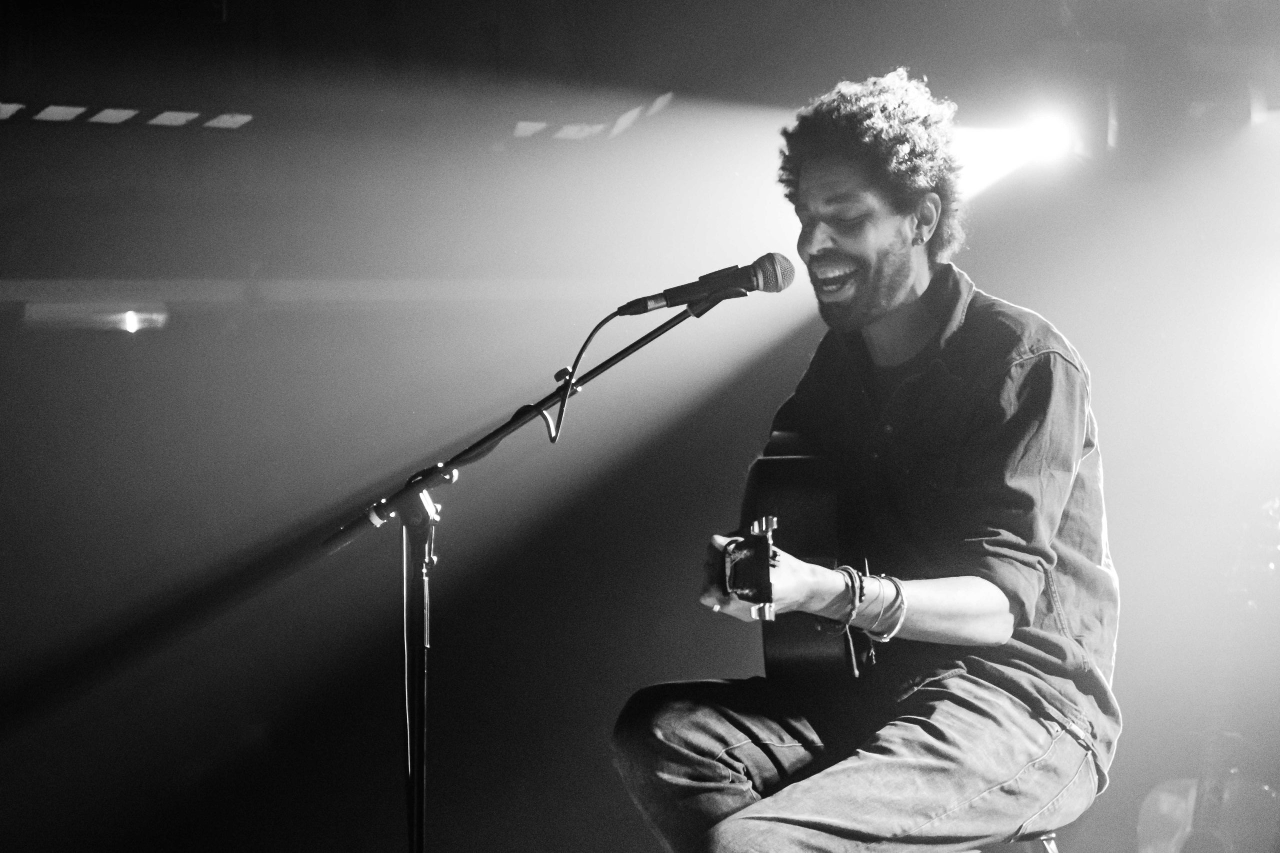 Tonight’s bill is opened by Ben Jordan, a native of Denver in Colorado but who has lived in Bristol, specifically Clifton, for some time. “I stutter and I’m super awkward; go me!” he declares to the amusement of everyone present, something he also plays up to as he says he’s just happy to have a crowd in front of him. He comes across as a very genuine person: whether he’s taking potshots at himself or discussing the concept of canned water, nothing seems forced or staged and this adds to his charm. Even a couple of mistakes are laughed off, but that’s the beauty of acoustic shows – attendees know there’s nowhere to hide if you mess up and are far more forgiving than they would be otherwise. As for his musical talent, it speaks for itself; a soulful voice with a hint of gravel that floats through the venue with ease, songs like Kingdom’s Bore and Hard Times resonating loud and clear. He’s due to release an EP of new material soon and it’s fair to say that there will be a lot of people looking forward to hearing it when it drops after tonight.