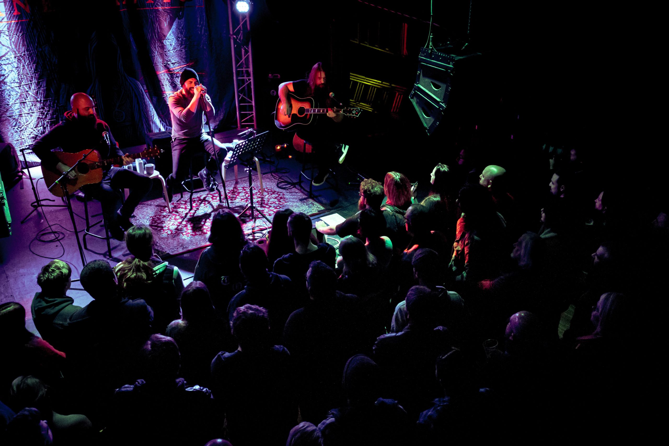 Here’s a hot take for you – acoustic gigs can be a hell of a lot more fun than full band, electric ones. Bristol’s famed boat venue Thekla is abuzz tonight for LAMB OF GOD guitarist Mark Morton but in arguably the most wholesome way possible. There’s a calmness that drifts through the venue, no clamour to get to the front of the stage or eagerness for throwing shapes; just two hundred people ready to stand and appreciate three stripped back performances whilst enjoying a pint. Oh, and the headliner just happens to be the lead guitarist for one of the biggest metal bands in the world; standard.