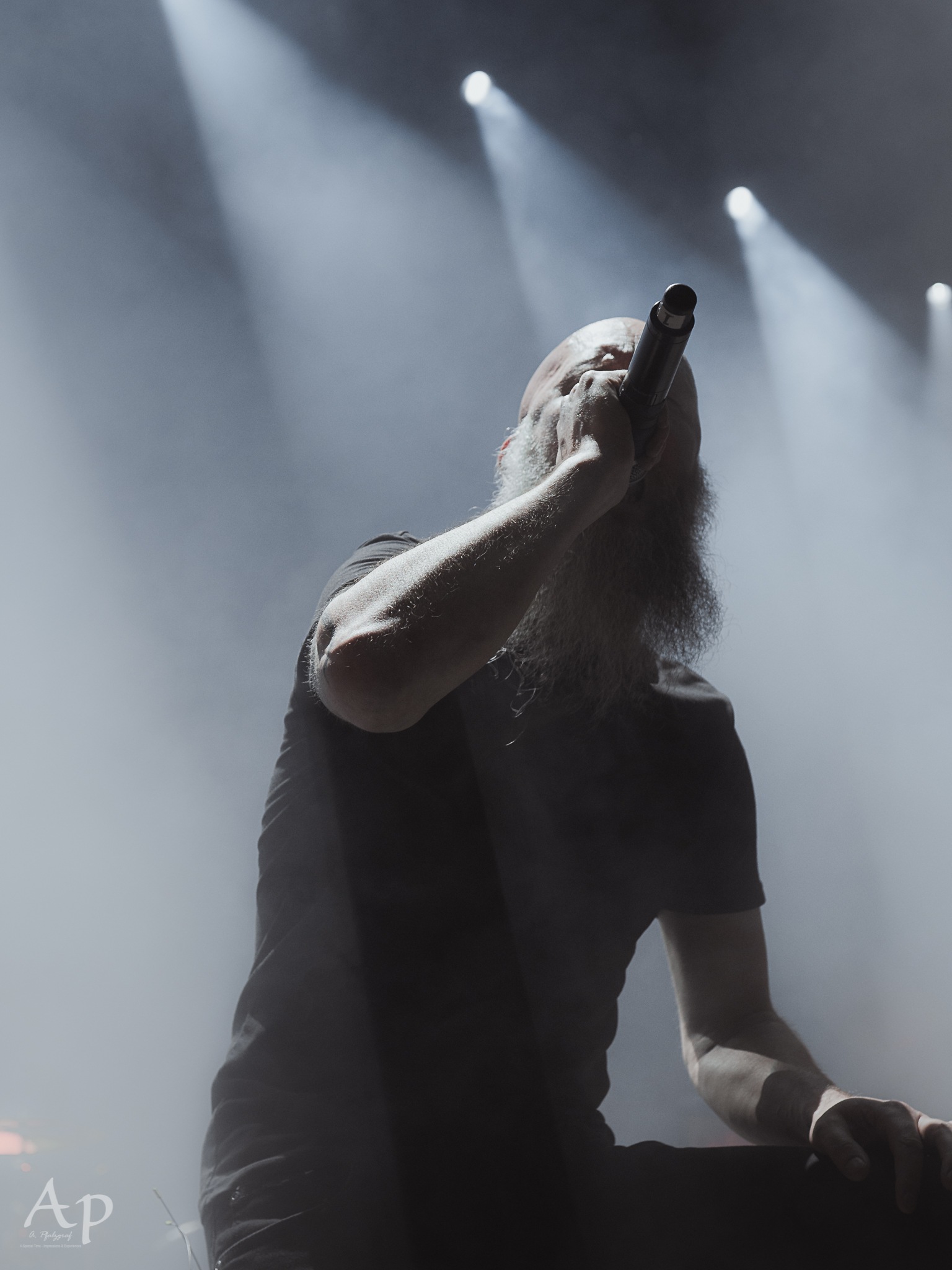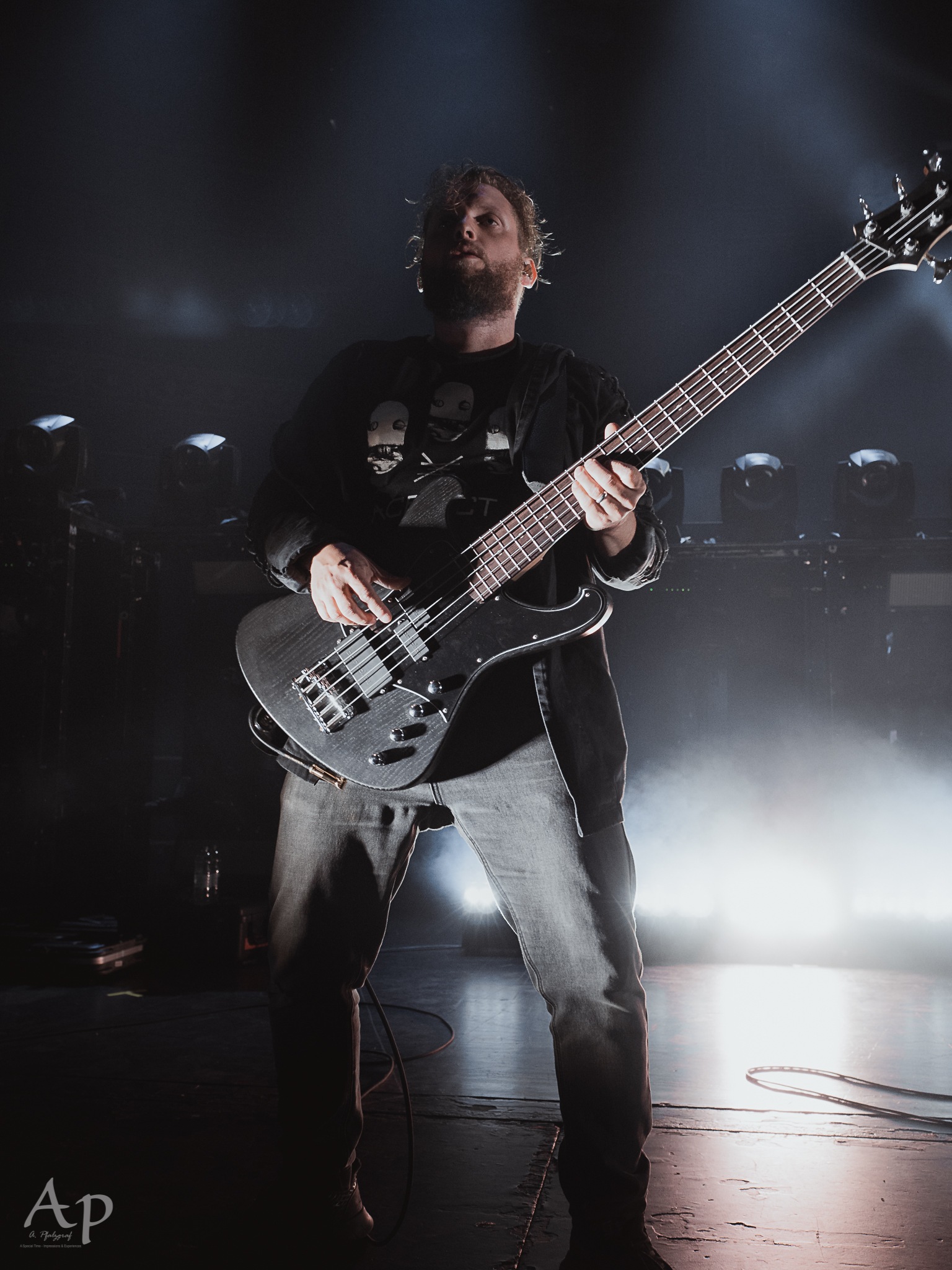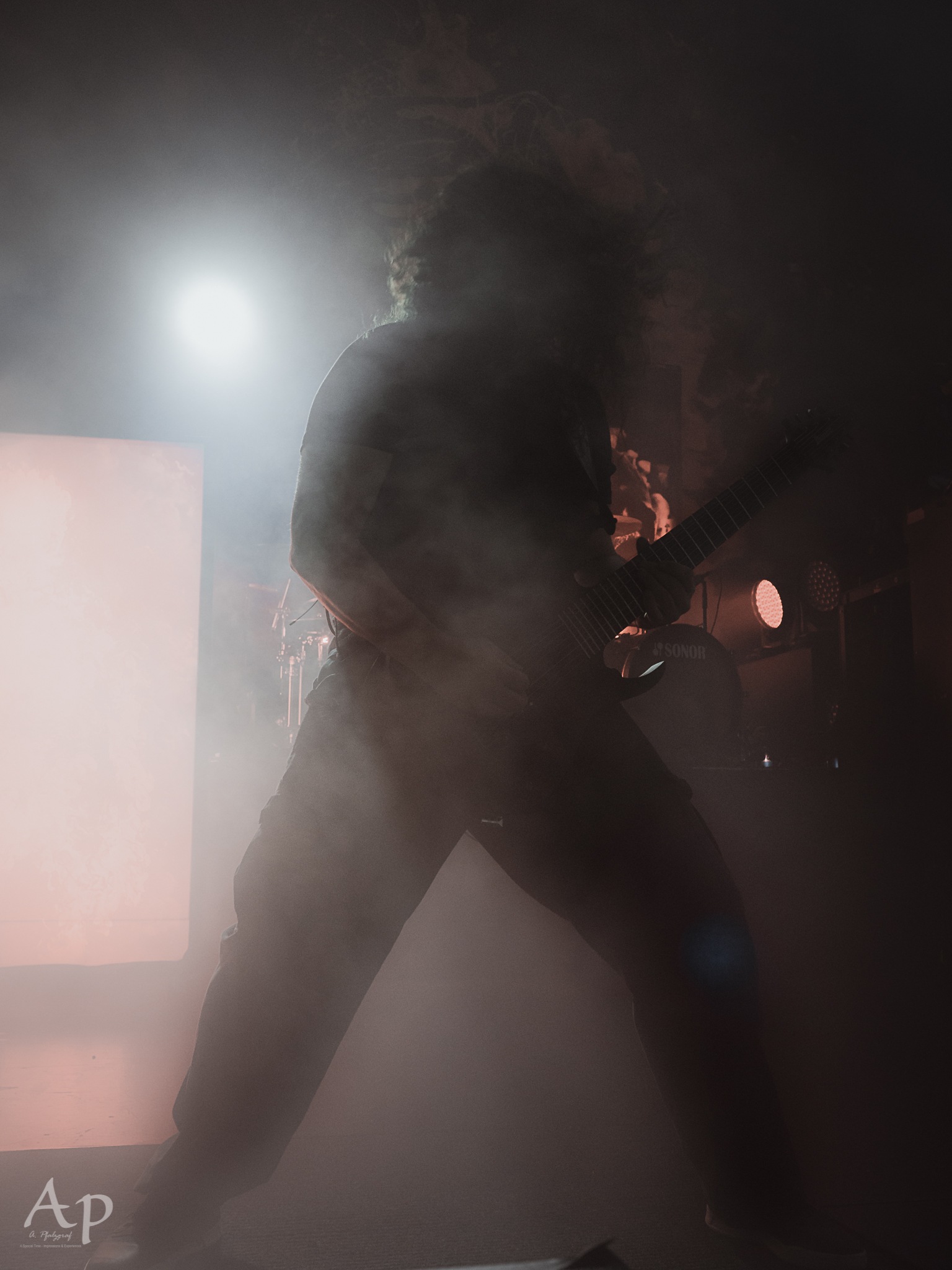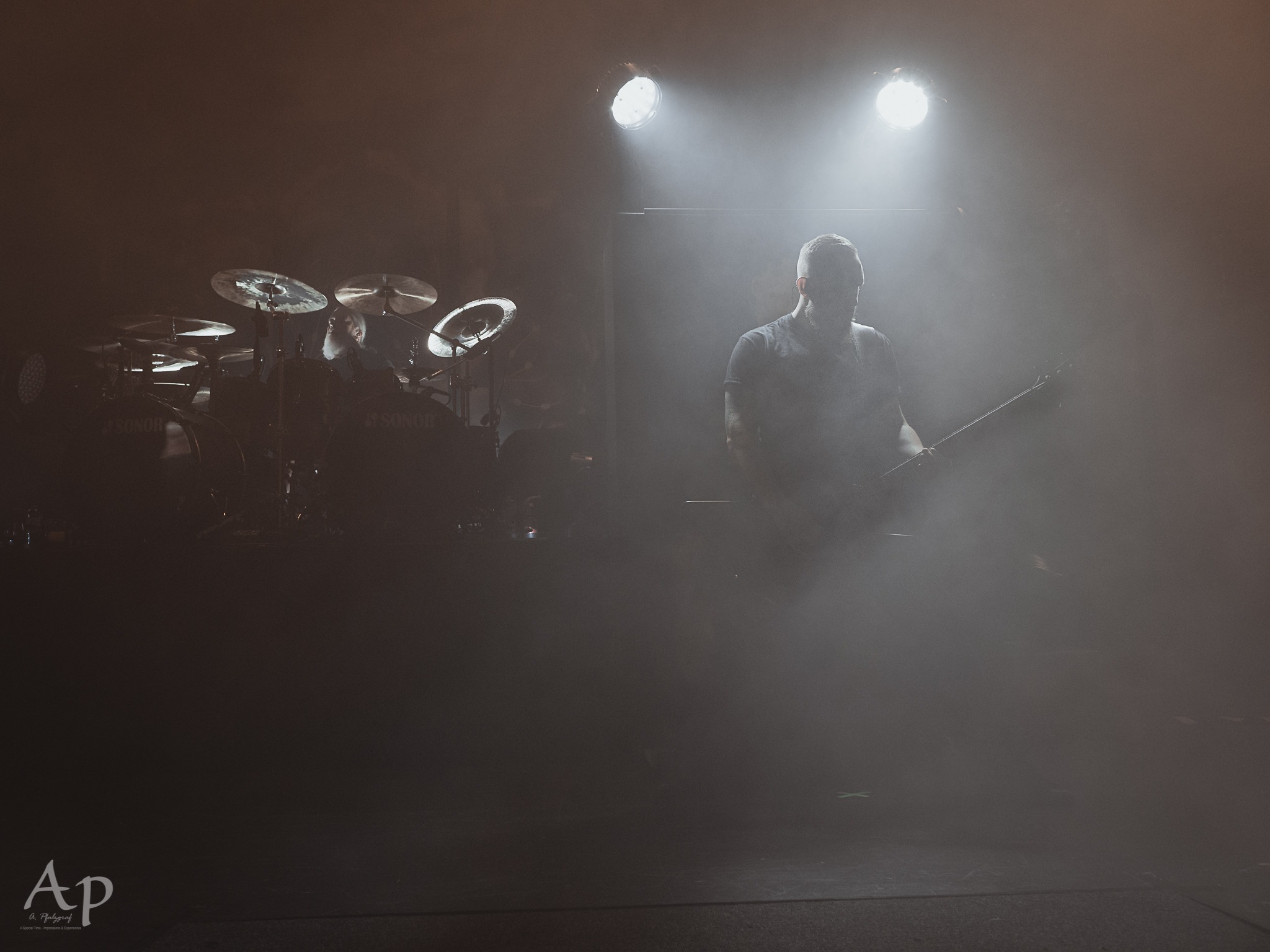 The limbering up we mentioned earlier may have sounded excessive, but it was more than needed. With very little reprieve between songs, the mosh pits came thick and fast. The Hurt That Finds You First marked the beginning of whirlpool like circle pits, a sight which Kidman took great delight in watching for a moment. While he could see them, it was difficult for anyone floor level to have seen them as the stage had been shrouded in hazy lighting and an abundance of dry ice. When caught in the moment though, that very seldom matters. Yet this permanent haze allowed the pomp of the light shows to take full effect. Cutting across the room, the lasers and strobe lights built a world of MESHUGGAH’s creation in wonderful fashion.
