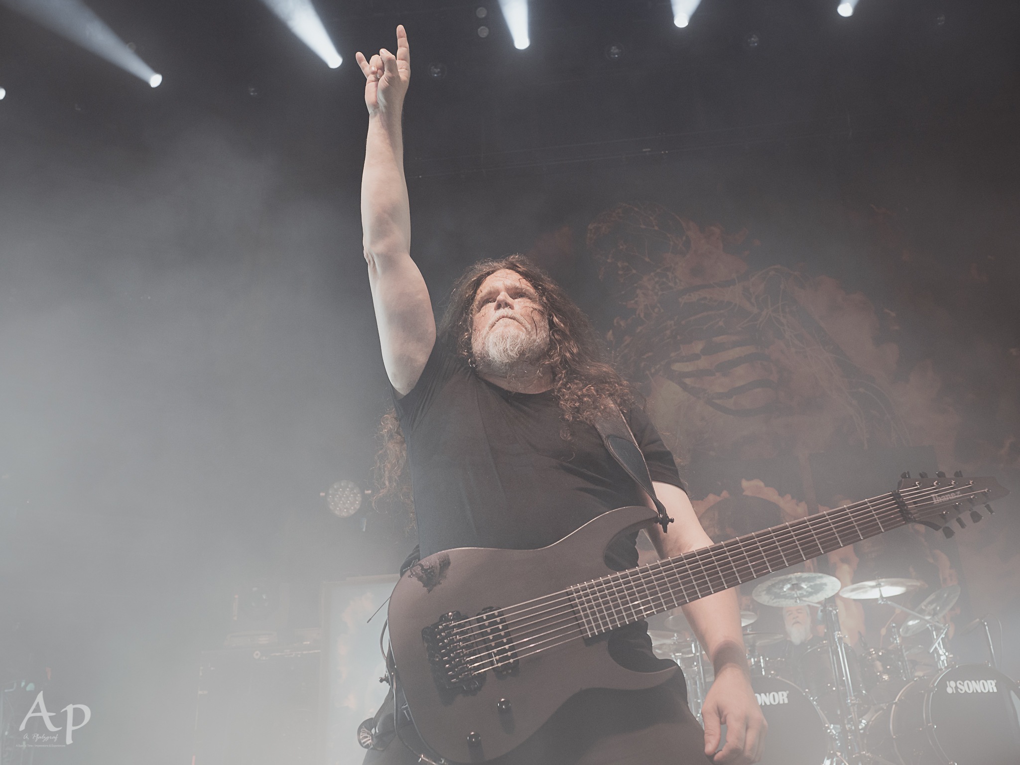 Wheeling this year’s Immutable out on the road, it’s only right MESHUGGAH opened with Broken Cog. Considering the context of this weekend, the title could well represent our current climate. But that’s not for us to comment on. Set against light boxes the band came out to an unglued auditorium. Powering through the opening track, the men remained in front of the boxes as the spectacle began. A slight criticism comes in some of that pageantry becomes lost in translation for those of the audience who aren’t facing the stage head on. This unintentional alienation broke the visual illusion for select members of the audience. Though a live show isn’t just a visual experience.