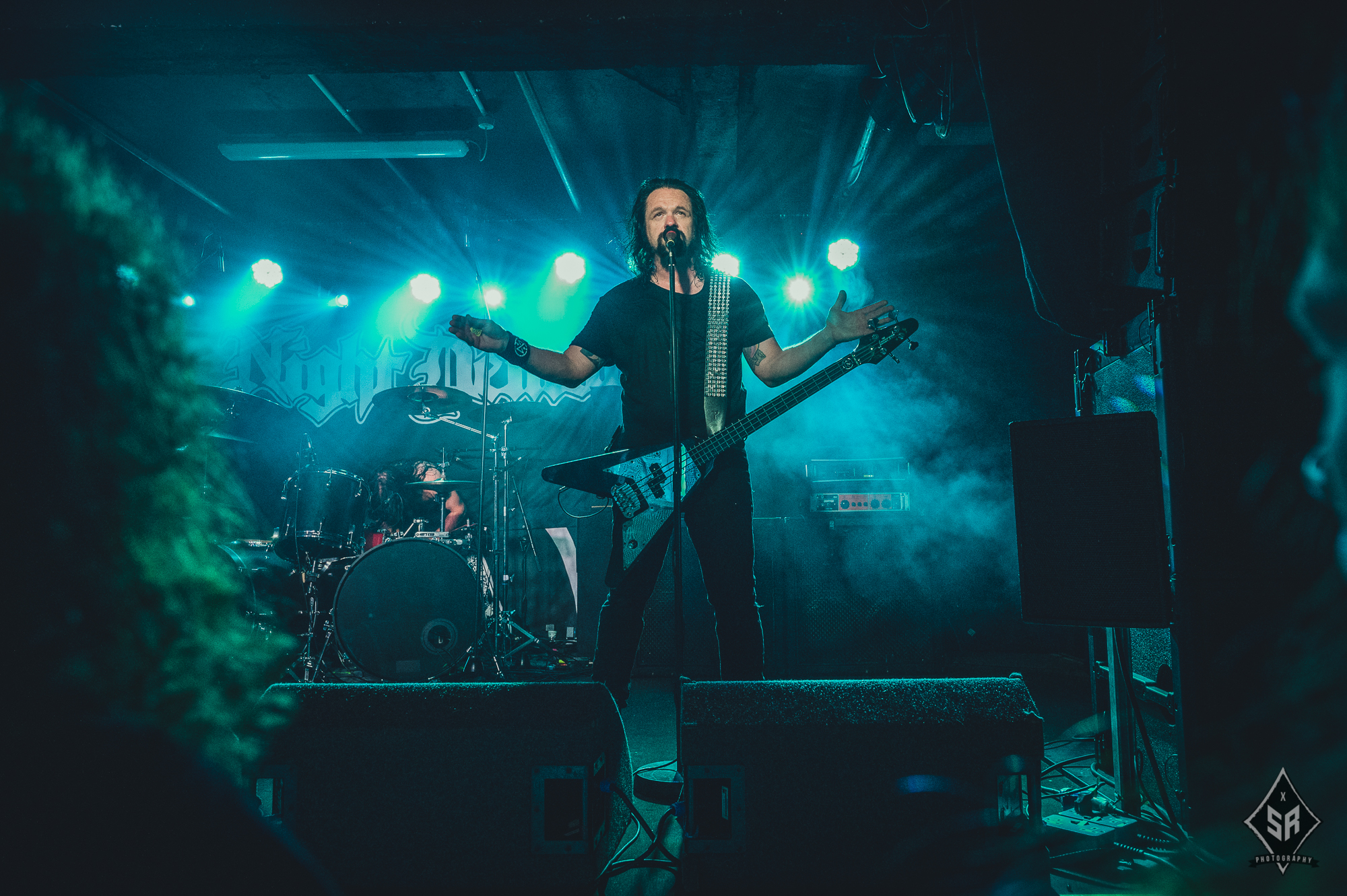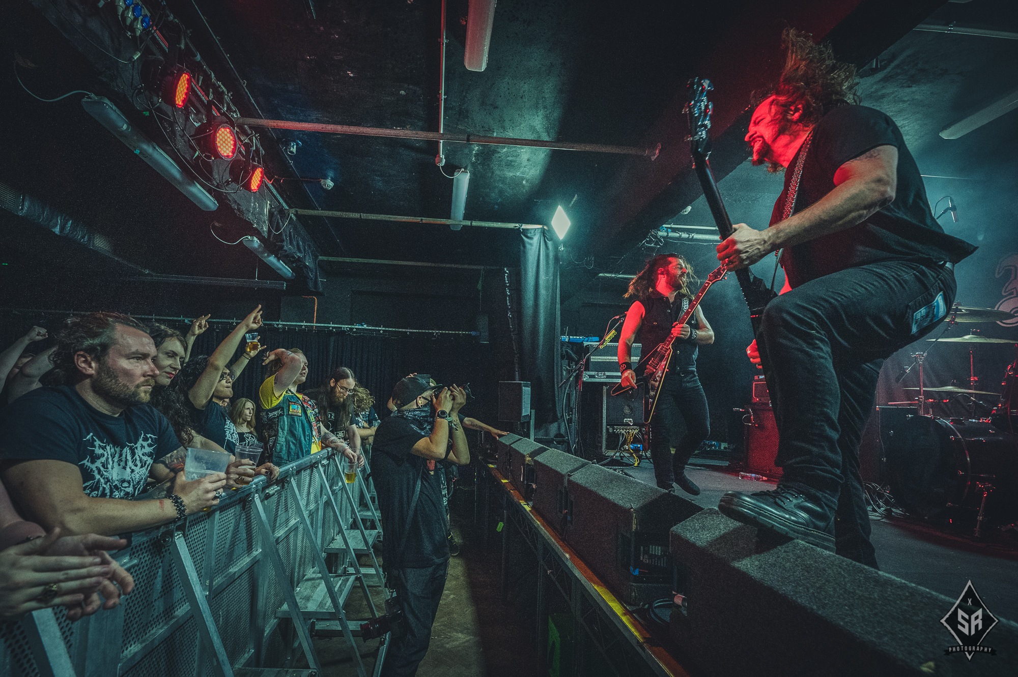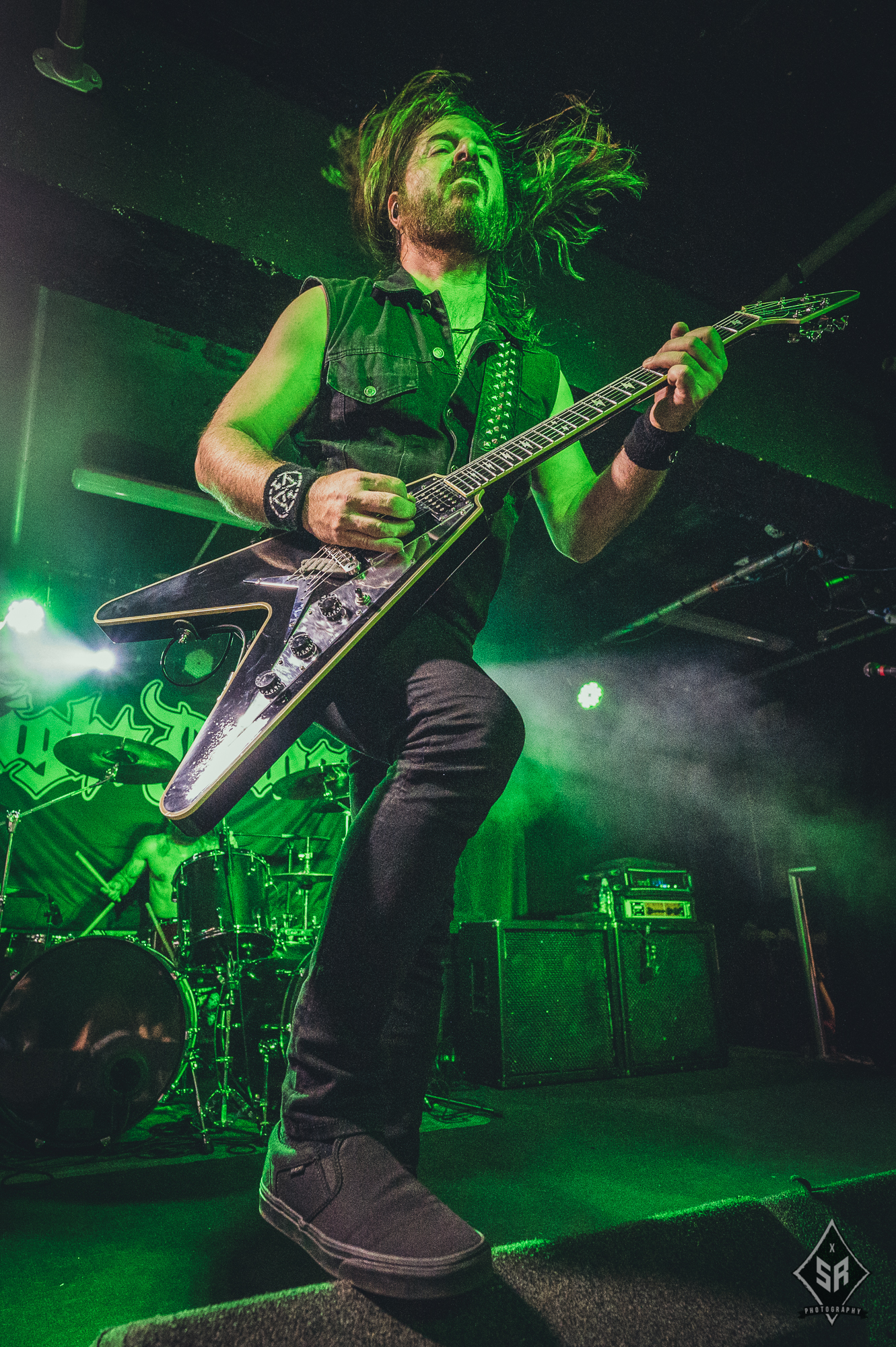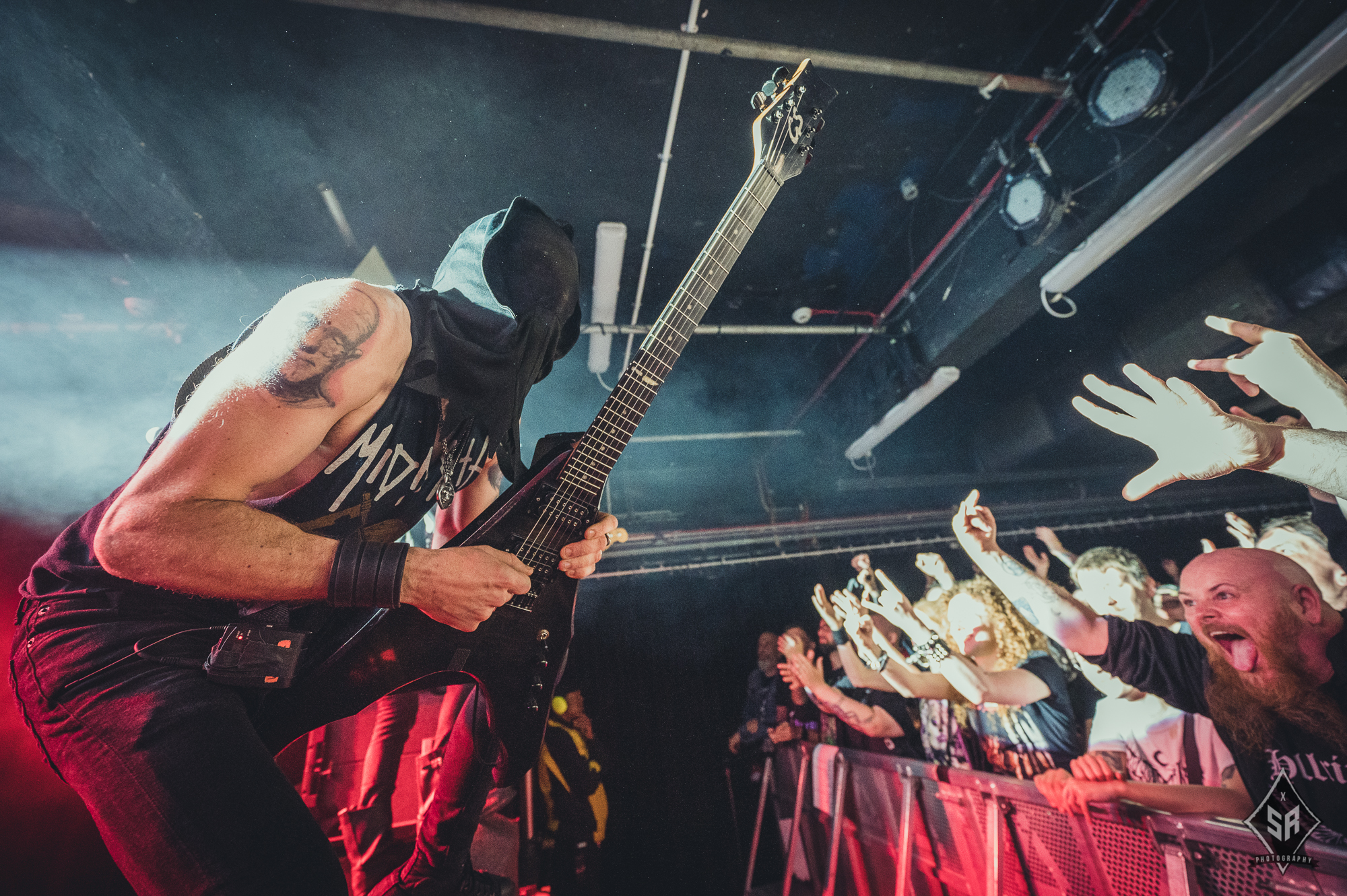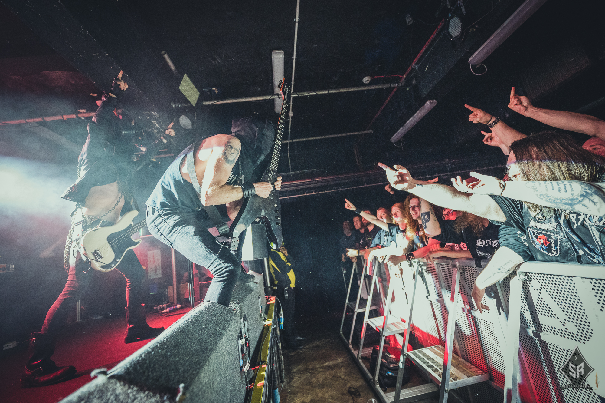 Rebirth By Blasphemy is a clear highlight with the chorus belted back at the men on stage, Fucking Speed and Darkness is relentless in its delivery and Satanic Royalty sees the pit surge as countless bodies slam and collide to the crunching grooves. New cuts from Let There Be Witchery, Szex Witchery and Telepathic Nightmare, fit comfortably alongside the more distinguished back catalogue but it is cuts from Satanic Royalty that go down an utter storm. You Can’t Stop Steel injects a much needed bout of adrenaline in the latter stages of the set with Athenar‘s vocals cutting through the mix like a hot knife through butter whilst Lust Filth and Sleaze does exactly what it says on the tin.