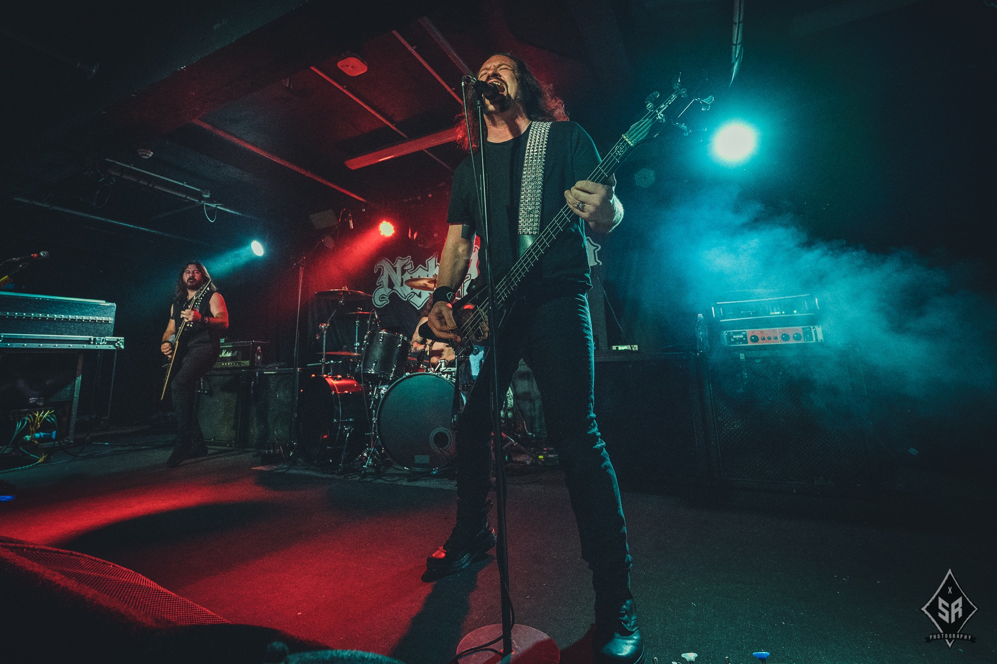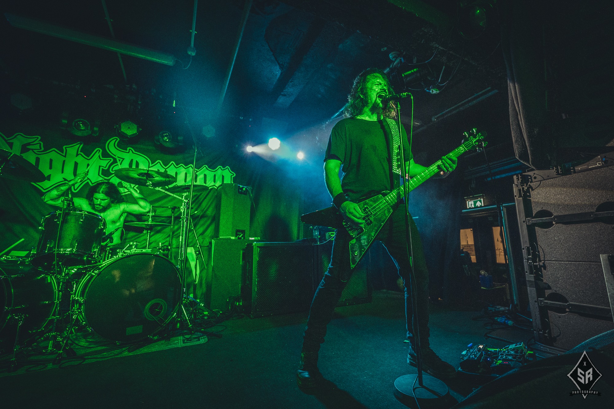 With HEAVY SENTENCE withdrawing from the show as local opener due to positive COVID tests, it’s down to American traditionalists NIGHT DEMON to kick off the action and for the most part, they achieve just that. Fist pumping riffs? Check. Thundering percussion? Check. Soaring vocals? Check. The trio epitomise the essence of heavy metal as they thunder their way through a set that rarely allows the momentum to dip. Screams In The Night is a cracking opener, a one-two punch of Darkness Remains and Night Demon close the set on a high and a slick cover of THIN LIZZY‘s The Sun Goes Down is a nice touch. And despite slight repetition creaking in at times, which dampens their overall impact, overall, a solid outing for these trad metal worshippers.