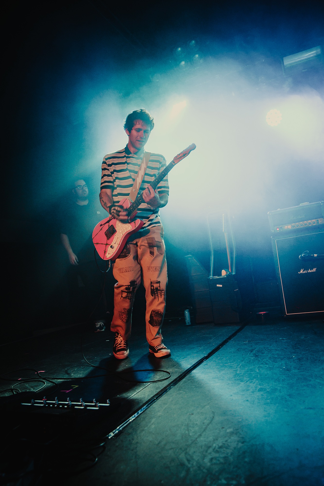 There are precious few lulls in the set – one could nitpick and say that White Trash Millionaire doesn’t hit as hard without the rousing horn section of the album recording – but generally speaking MOM JEANS’ charmingly unpolished sound comes across wonderfully in the live setting. Like the cannabis strain that the song is named after, Girl Scout Cookies casts an uplifting haze over the listener, with its twinkling lead guitar lines on the backend gently inducing a sense of melancholy bliss. Tie Die Acid Trip delights with its psychedelic and pensive riffs, while the bouncy Edward 40hands sees bassist Sam Kless exposing his glorious belly tattoos, to whoops and hollers from the audience.