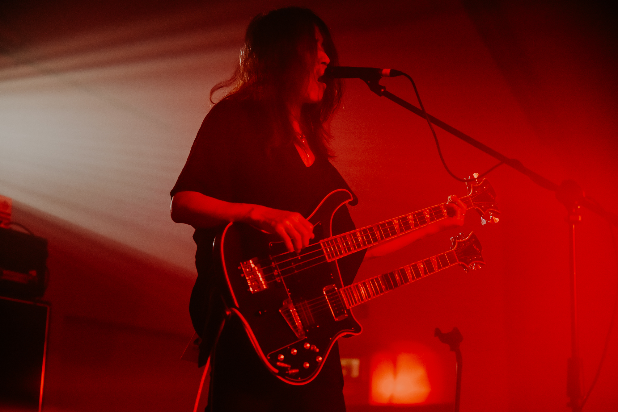 Ethereal choral chants and musky incense prepare the stage for the arrival of the Blackgaze pioneers at the Barbican hall this evening. ALCEST‘s performance tonight, their only London appearance of 2019, follows in the wake of the hugely successful Spiritual Instinct, and they bring a tremendous weight of anticipation with them. There is no fog or curtain to conceal the band, as they are poised at the very front of the stage, holding the room in a pregnant silence. As Neige breaks into the opening chords of Kodama a palpable sense of relief takes over the room and, for the next hour, this vast space is all theirs.