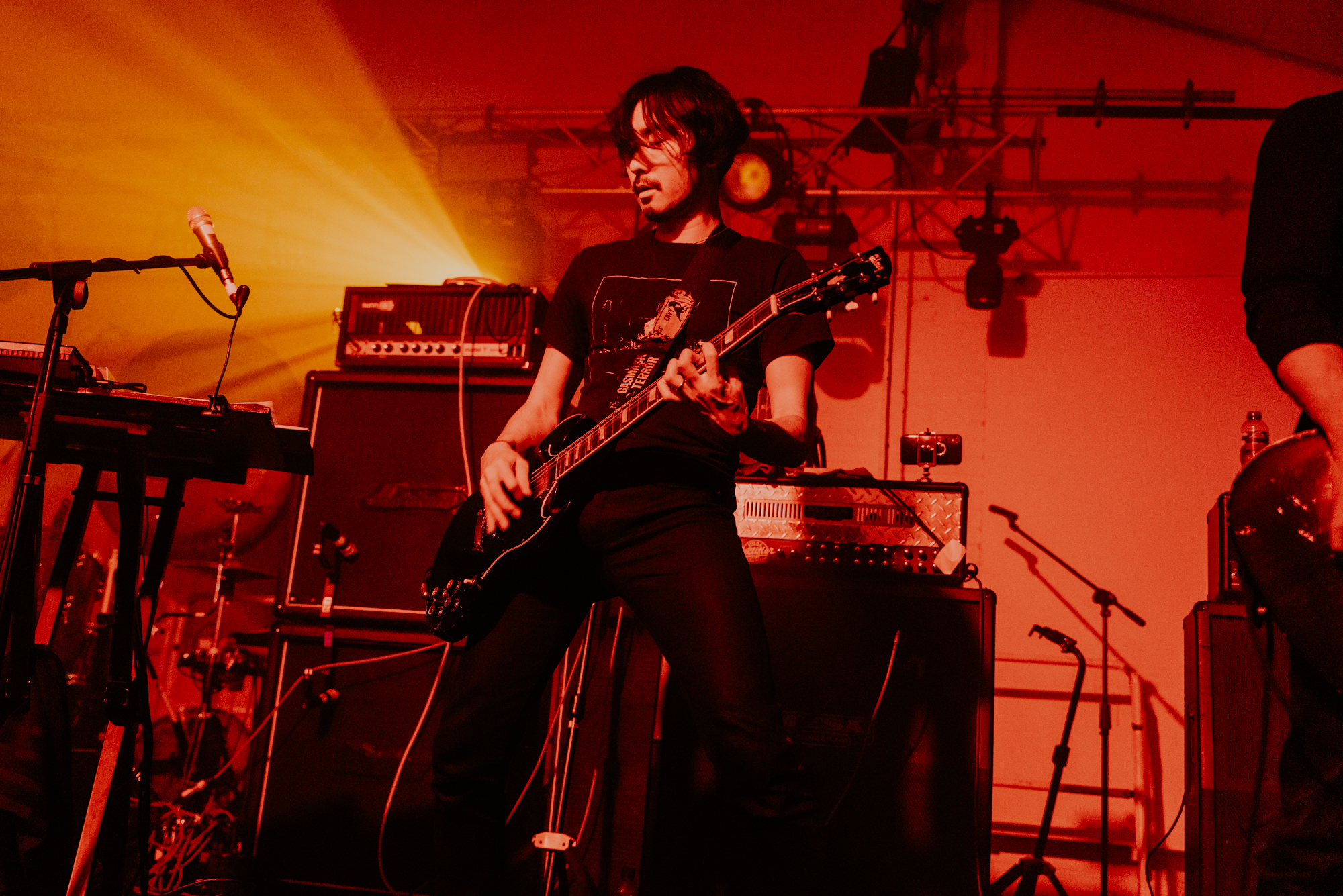 Ten bands, playing across three venues, over two days. There was every indication ahead of time that Beyond The Past would exceed the scale of most anniversary events. Celebrations are in order, as MONO – whose musical development has, in many ways, been drawn along the lines of excess – reach their twentieth anniversary. Across ten studio albums, three splits and four EPs, MONO have elaborated upon their unique oeuvre: heartfelt and dramatic contemporary classical music, played with the amplified intensity of a rock ensemble, expressing joy and sorrow in equal measure. The curated line-up features performances from friends and peers, each of whom figure as exemplary elements in MONO‘s diverse pool of influence. The narrative of the performances across the weekend sets out, individually and in detail, aspects of MONO‘s sound throughout their career, before they are gathered and galvanised in a final and exclusive performance from the band themselves, with accompaniment from The Platinum Anniversary Orchestra.