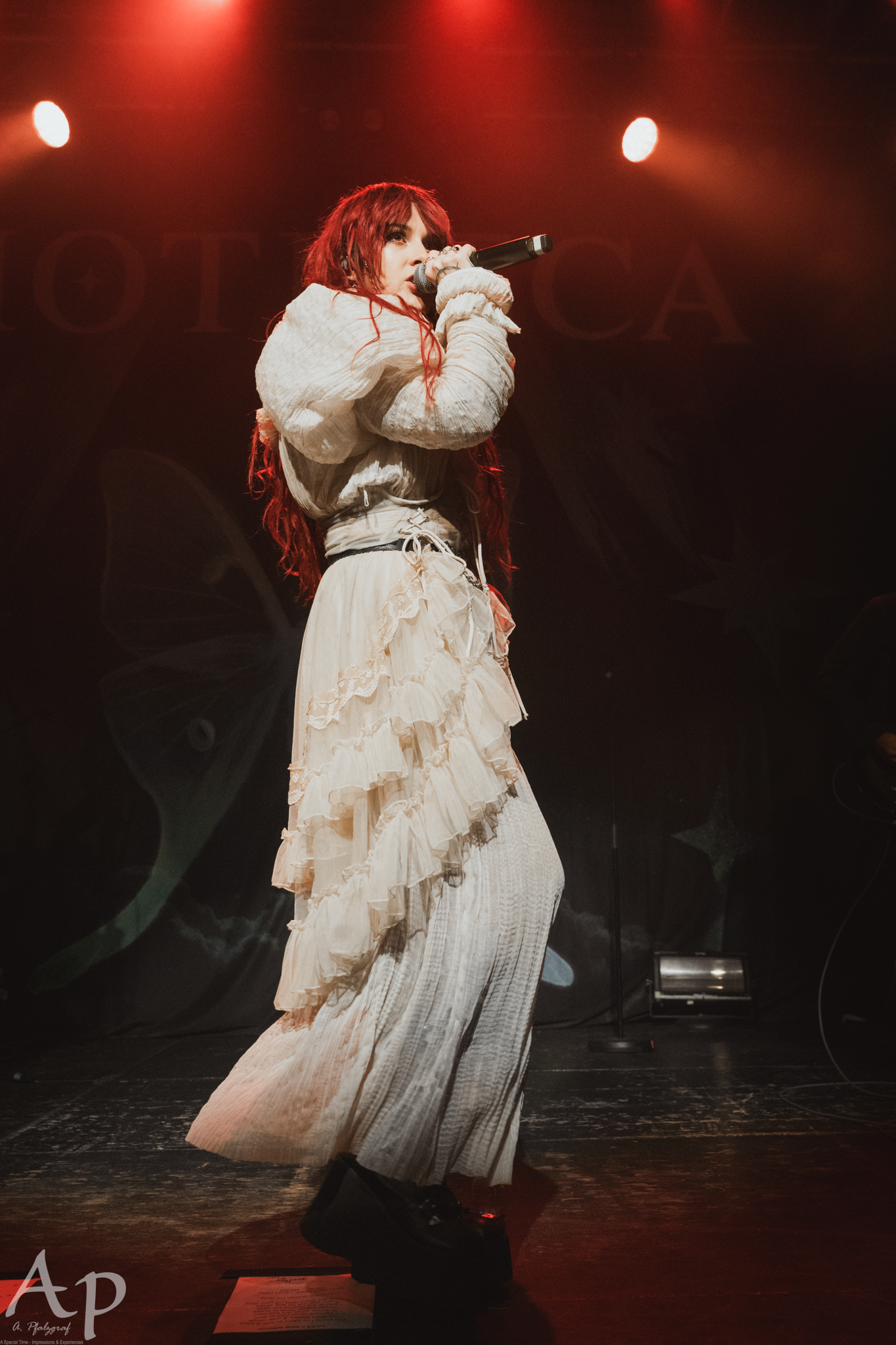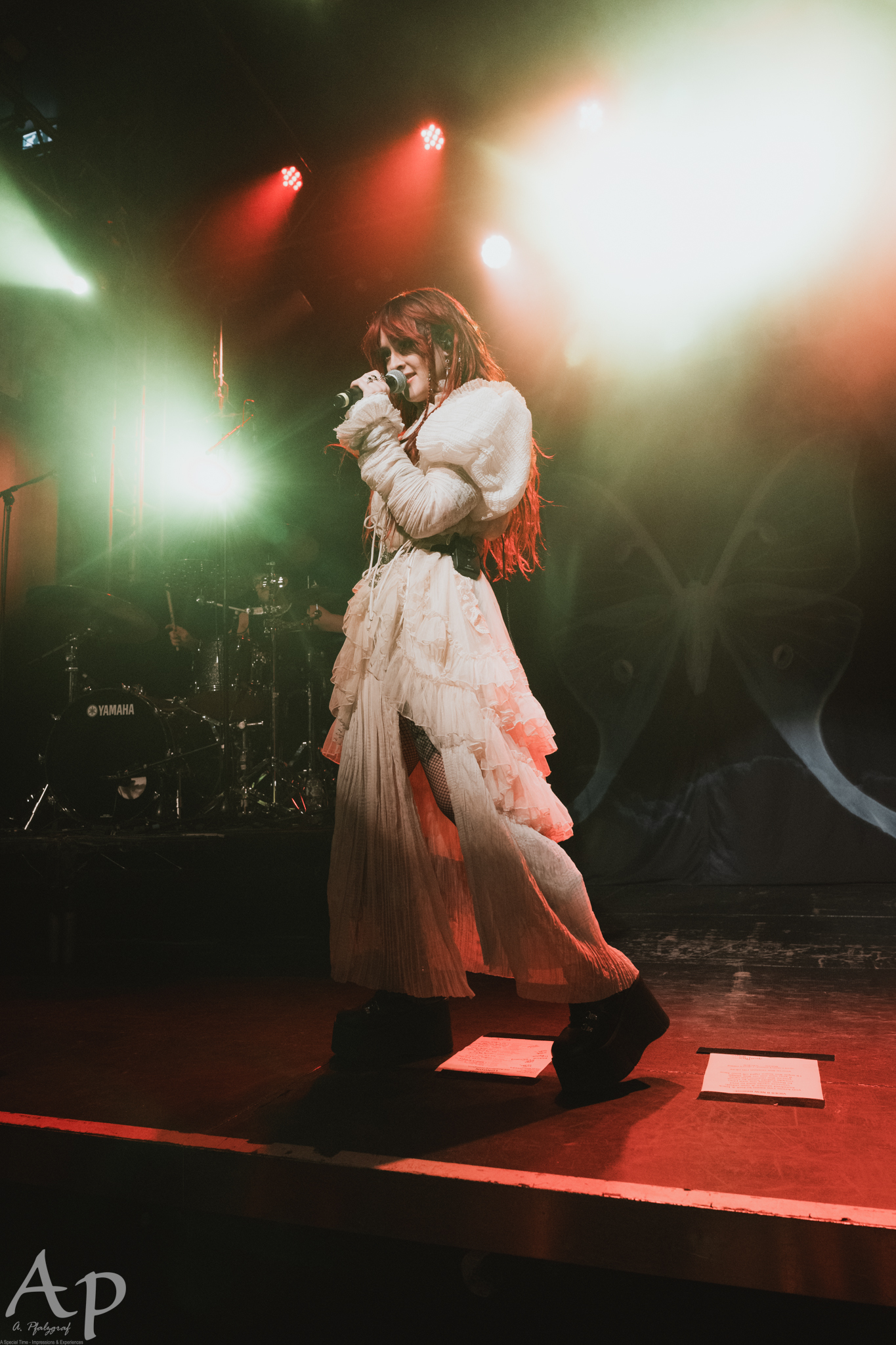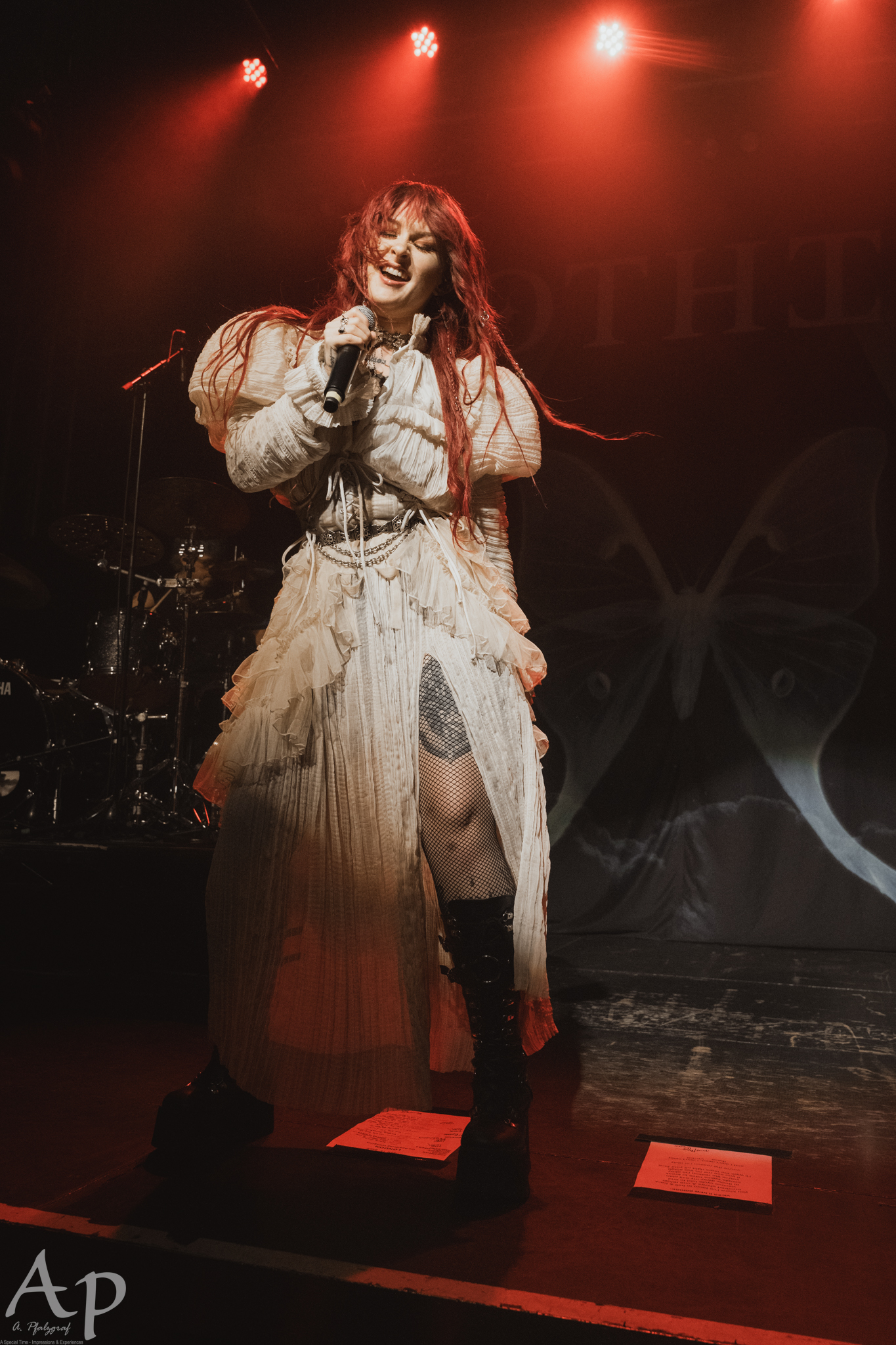 Even then, there’s not the smallest sign of the intervening time or events between the tours other than when MOTHICA talks candidly of them. She’s revelling in being back onstage at a headline show, as are her fans as they hang off every word and note. Afterlife pulsates through the room, while Vices II leans more into heavier guitar work and cascading drums while retaining the original’s towering hook. We’re also treated to a snippet of new material from the album she confirms is written, before surprising with thundering alt metal, significantly heavier than her other recorded output, but again with that MOTHICA twist fans have come to love. She spends a moment before Forever Fifteen baring her soul once more, acknowledging her struggles with mental health throughout her life before turning it around and demanding that life is for flourishing and not suffering.