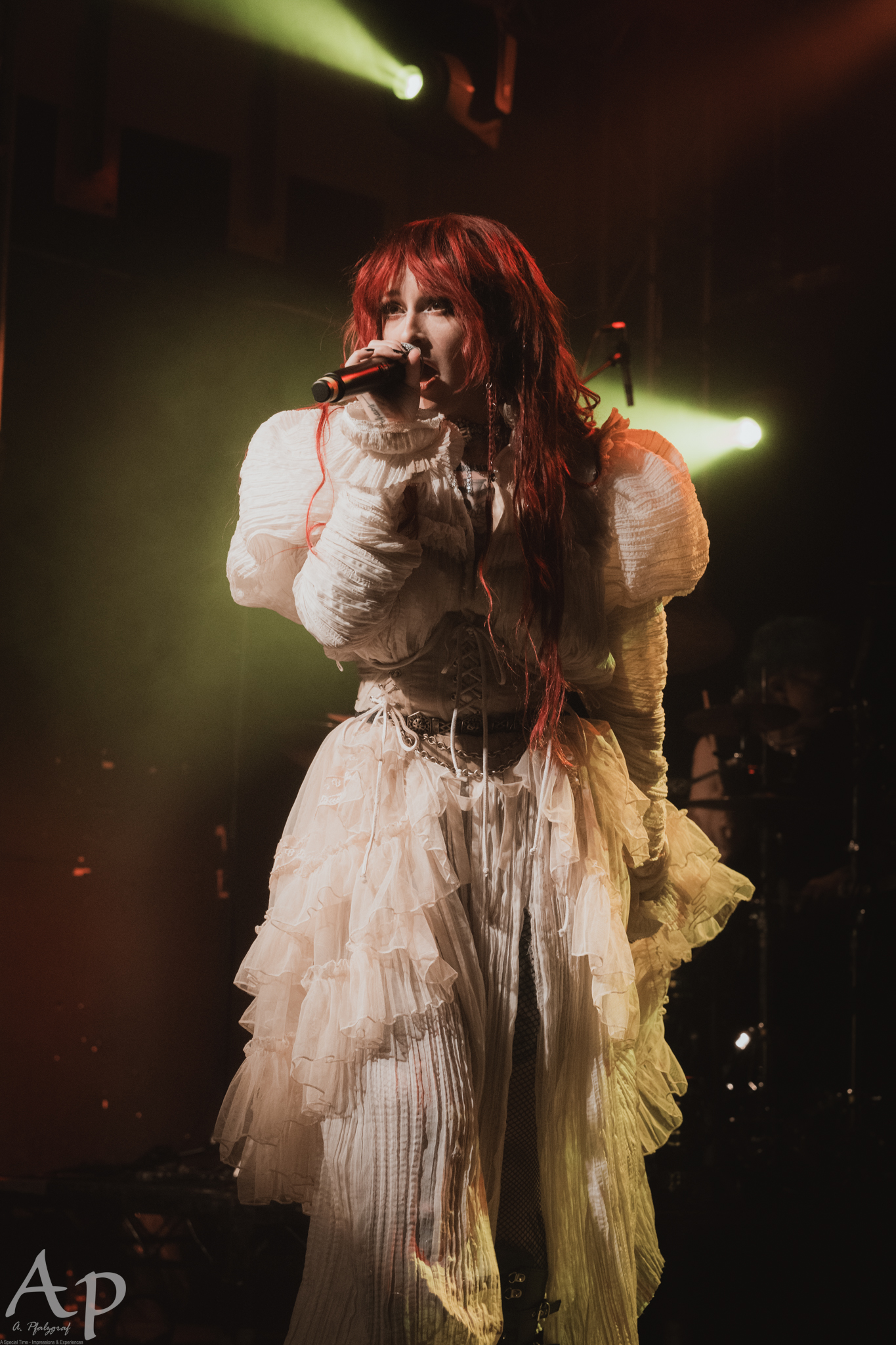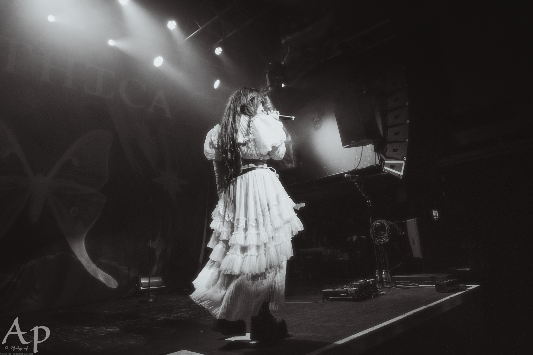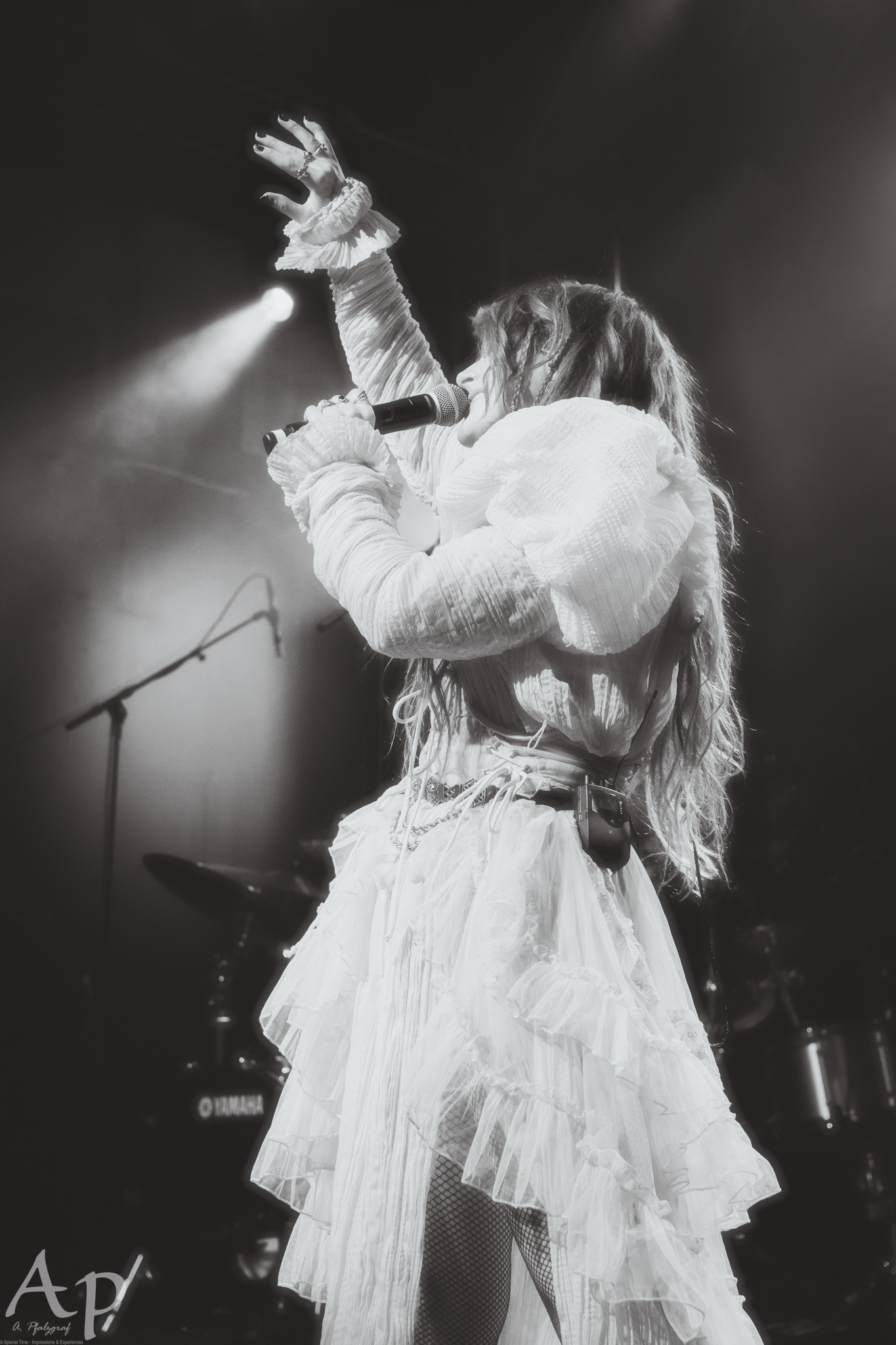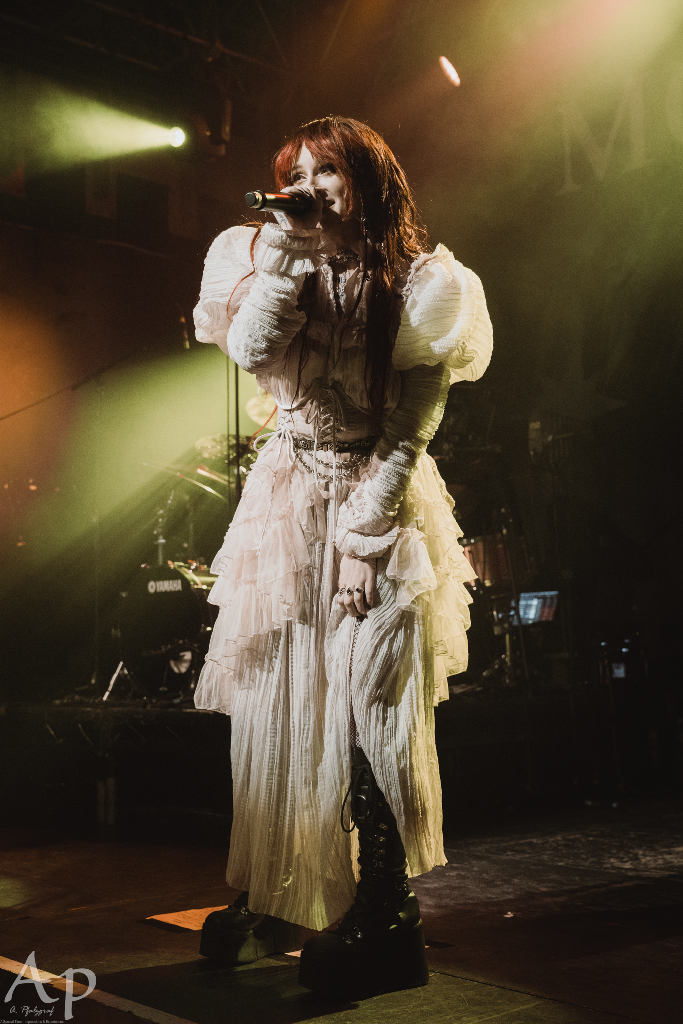 Even then, there’s not the smallest sign of the intervening time or events between the tours other than when MOTHICA talks candidly of them. She’s revelling in being back onstage at a headline show, as are her fans as they hang off every word and note. Afterlife pulsates through the room, while Vices II leans more into heavier guitar work and cascading drums while retaining the original’s towering hook. We’re also treated to a snippet of new material from the album she confirms is written, before surprising with thundering alt metal, significantly heavier than her other recorded output, but again with that MOTHICA twist fans have come to love. She spends a moment before Forever Fifteen baring her soul once more, acknowledging her struggles with mental health throughout her life before turning it around and demanding that life is for flourishing and not suffering.