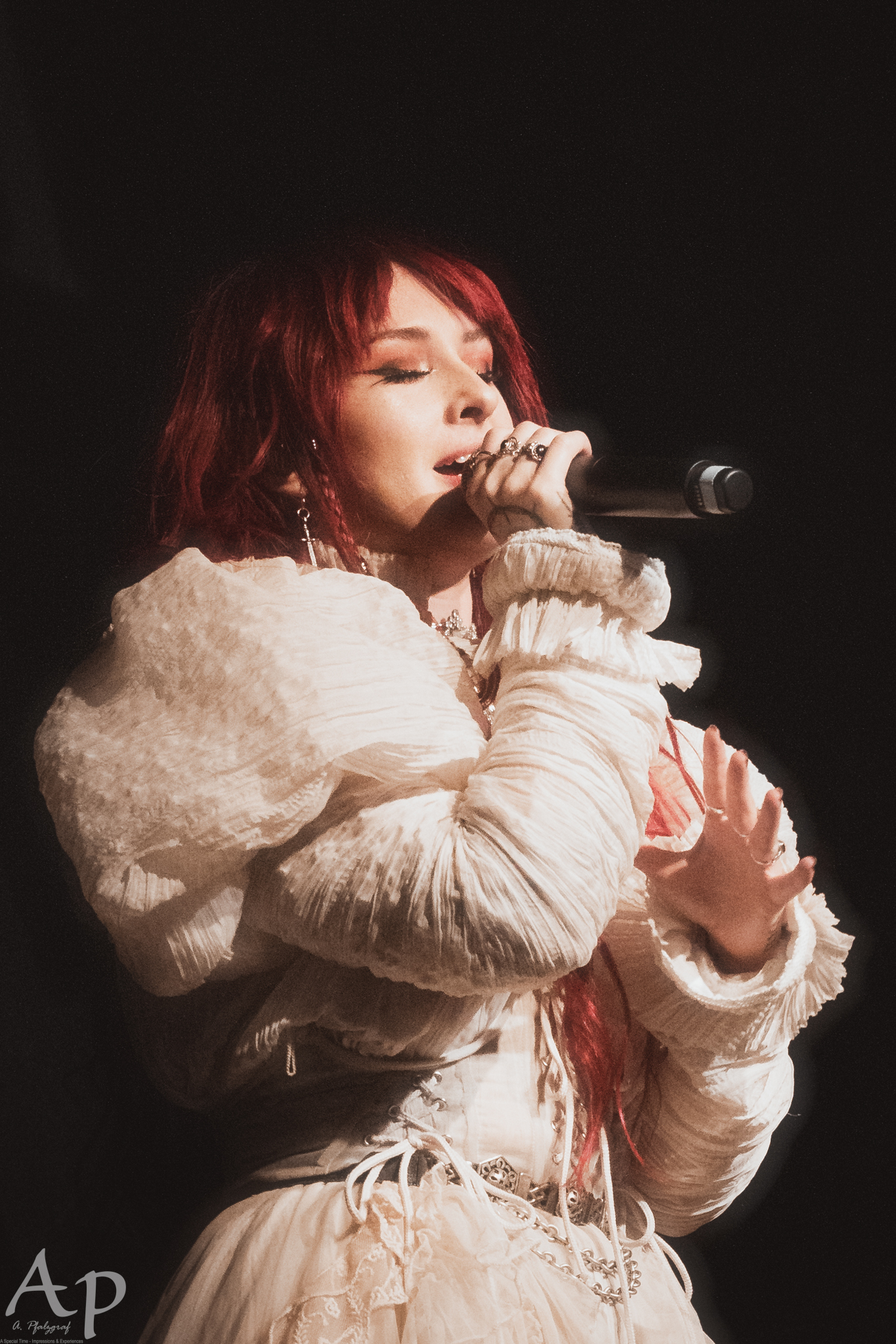 MOTHICA opens her set with Kissing Death’s intro into a huge rendition of Toxins, that she recently gave a heavy makeover, immediately capturing the crowd and eliciting huge cheers. “I’m gonna take you all the way out to the Wild West,” she grins before Mirage, a country twang entering the mix and her long white dress echoing that Wild West period too. The crowd are deafening as they sing back Buzzkill, more than a few people heading down closer to the front to get more involved. “I’ve not played most of these songs since the last tour,” she admits early on, even with Download intervening (though her remix of BMTH’s Can You Feel My Heart naturally crops up).