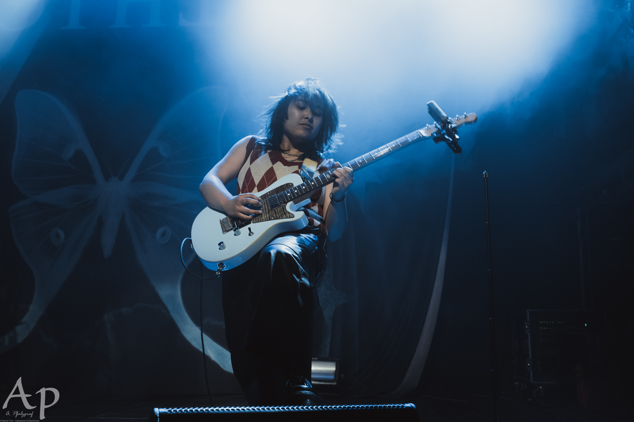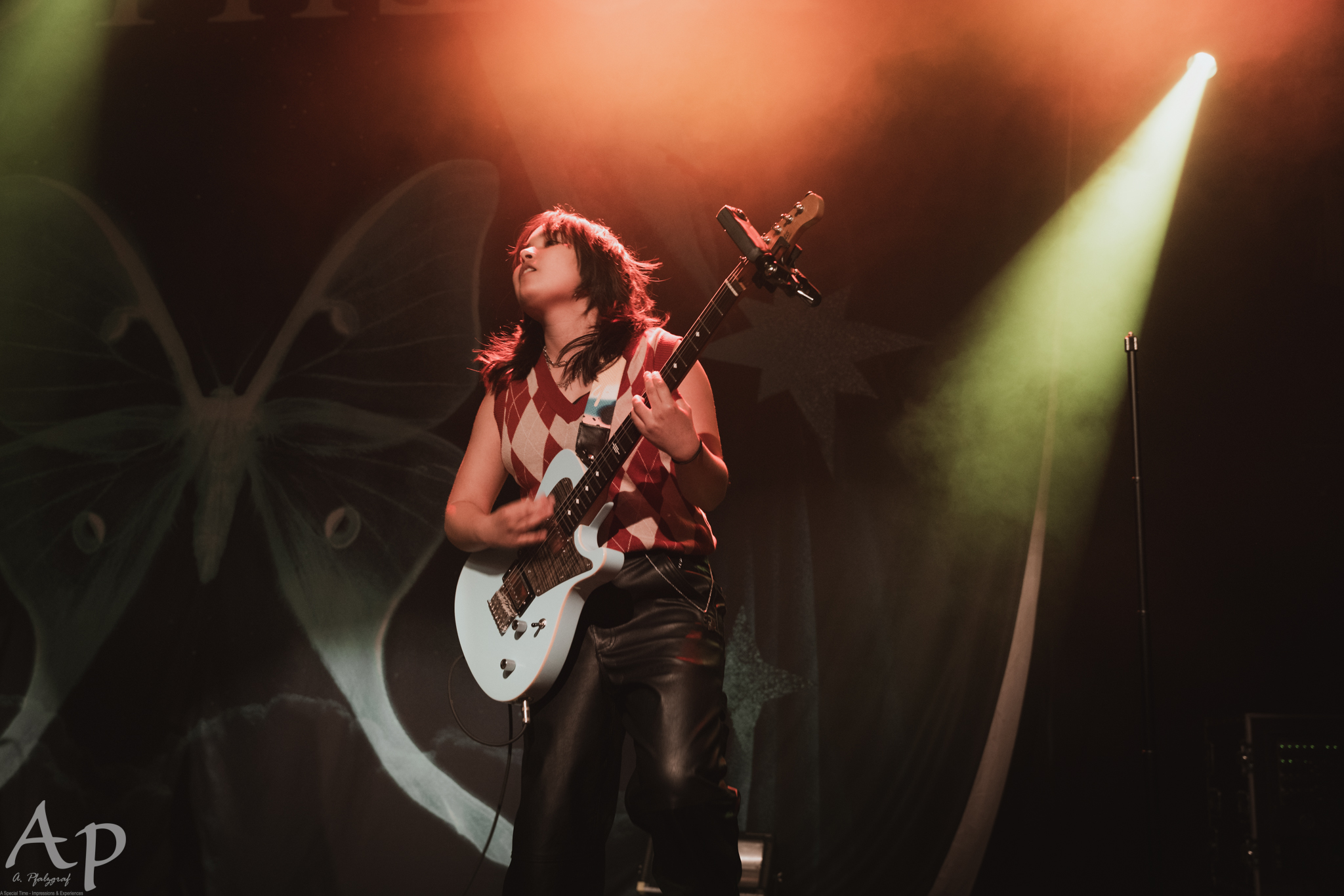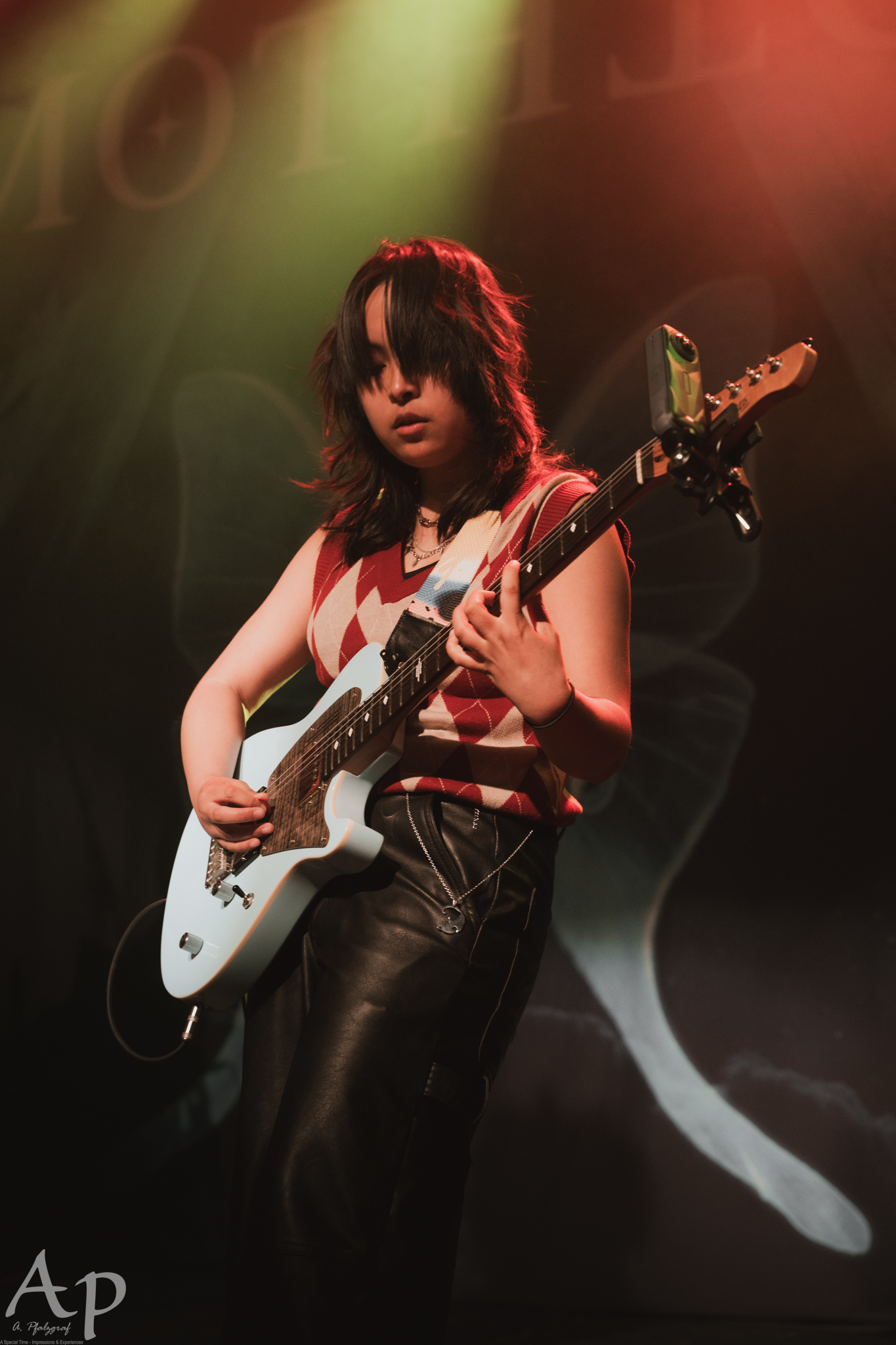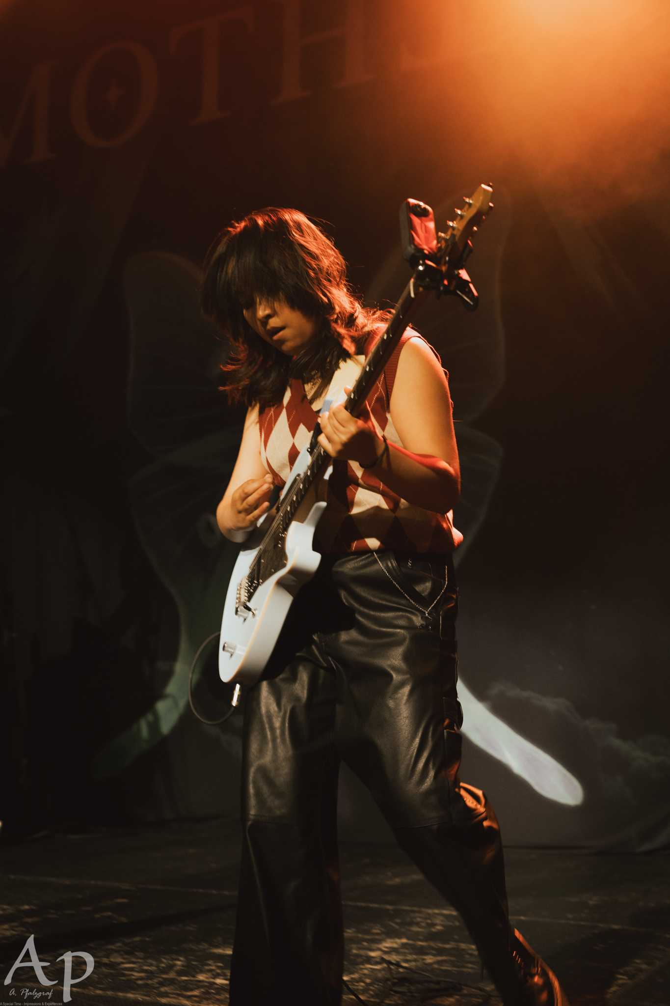 This is a much more intimate setting than the Download Festival set, but a larger room than her last headline show here, showing that for her fans, absence certainly does make the heart grow fonder. Opening the evening first is NXDIA, whose indie-pop and pop rock meeting of minds gets a warm welcome. There seems to be a couple of technical glitches early on with instruments cutting out or suddenly being too loud but it’s smoothed out easily enough, not distracting from what’s a fun and energetic half hour. They’re clearly stoked to be here, performing with a palpable enthusiasm that sweeps up the crowd along with her. While they’re quite a different proposition to MOTHICA, there’s clear crossover between fanbases, with NXDIA offering more rock-oriented songs to get the energy up to start the night.