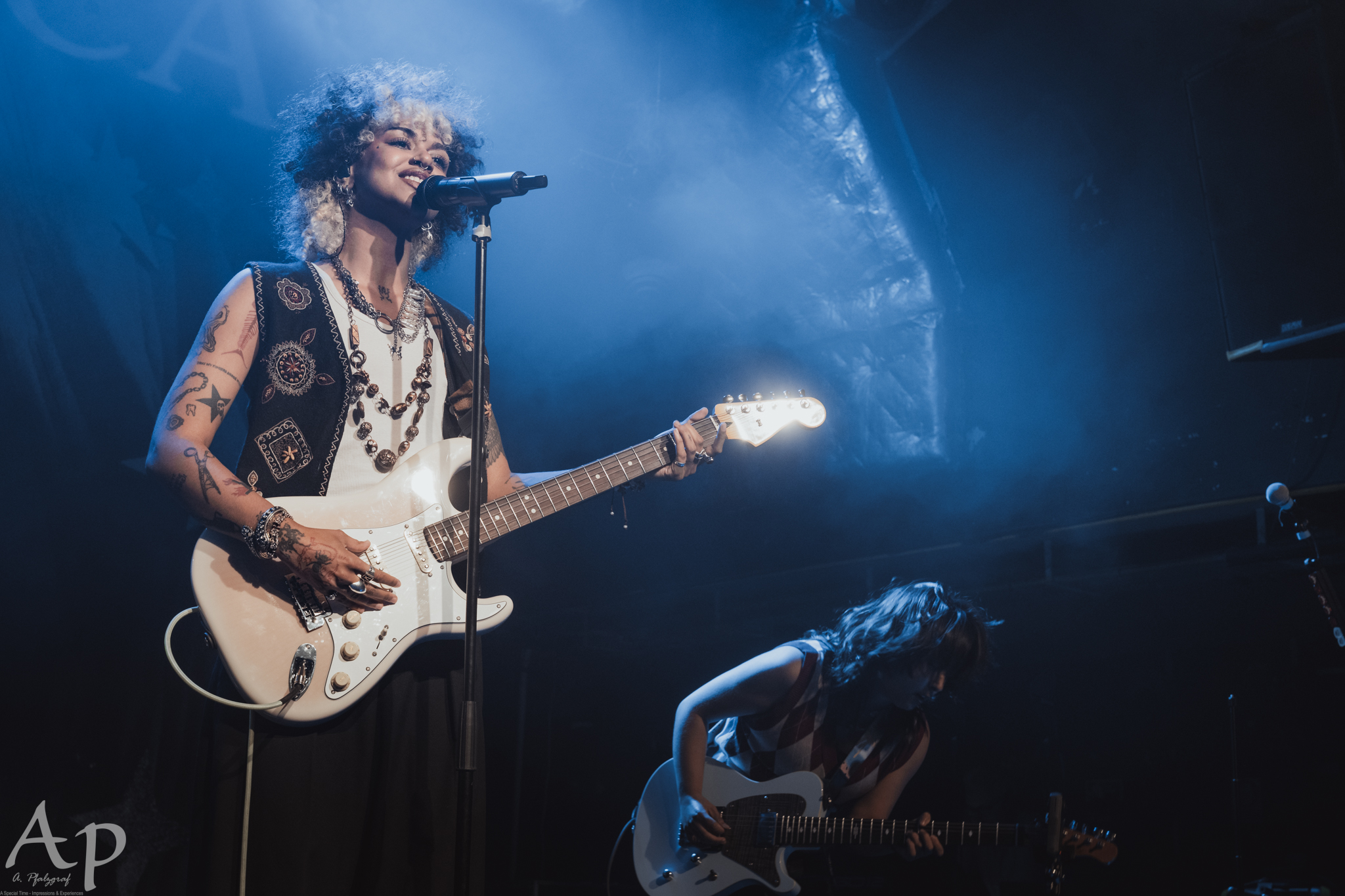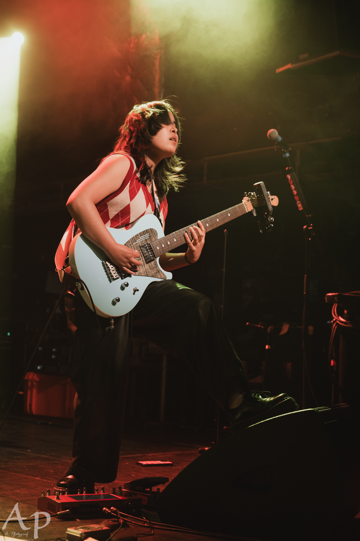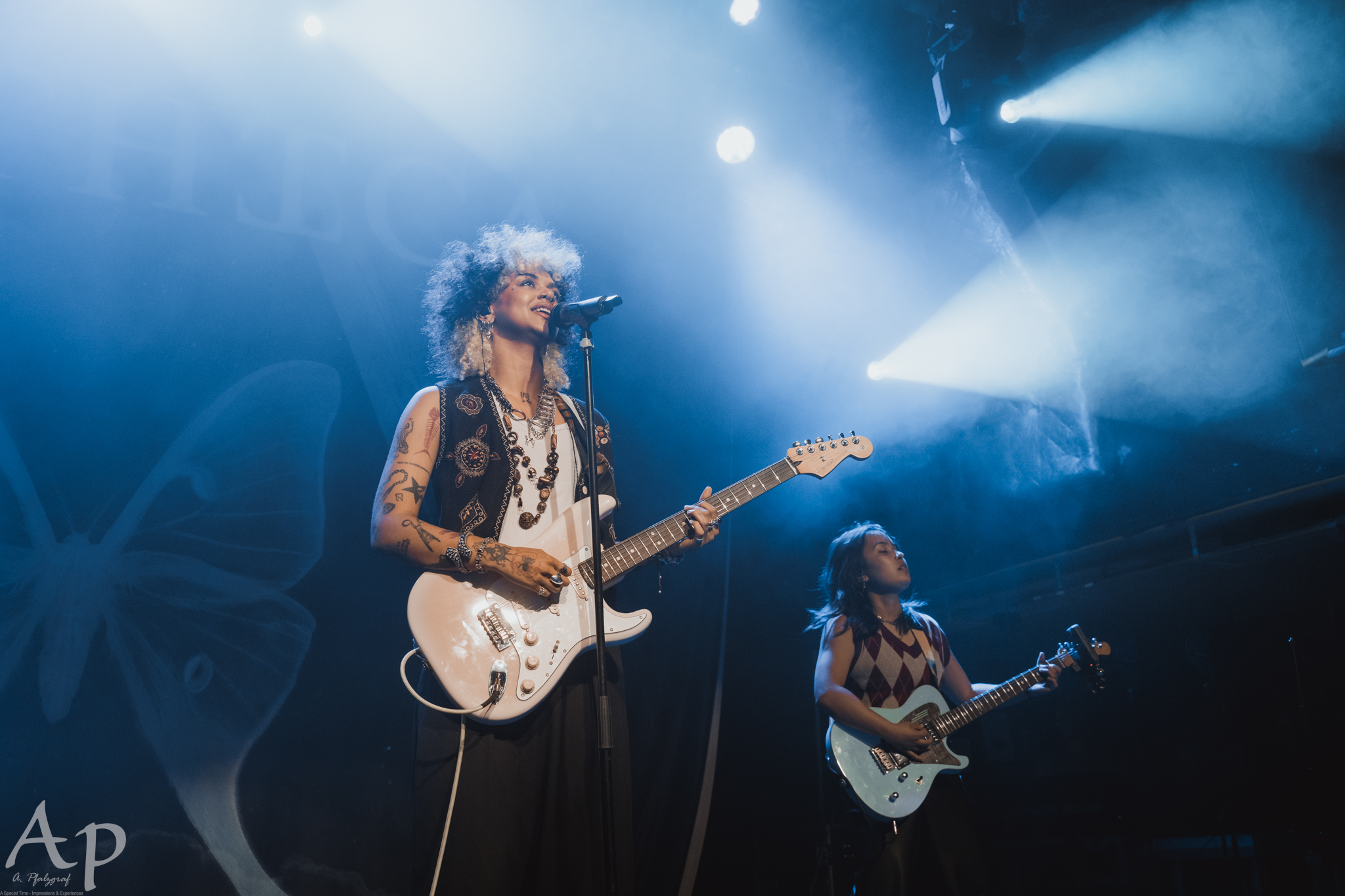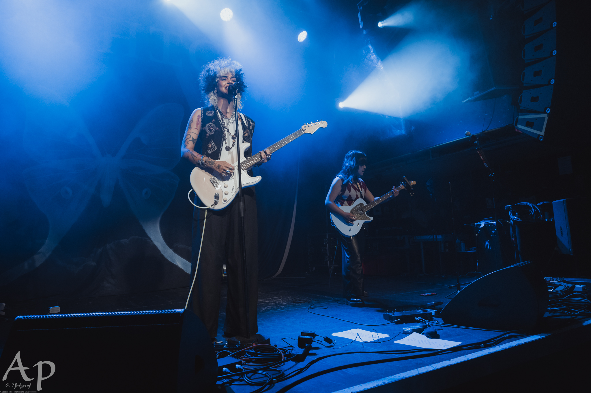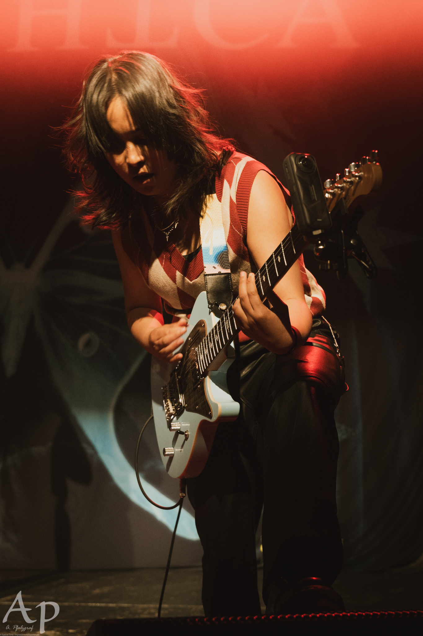 This is a much more intimate setting than the Download Festival set, but a larger room than her last headline show here, showing that for her fans, absence certainly does make the heart grow fonder. Opening the evening first is NXDIA, whose indie-pop and pop rock meeting of minds gets a warm welcome. There seems to be a couple of technical glitches early on with instruments cutting out or suddenly being too loud but it’s smoothed out easily enough, not distracting from what’s a fun and energetic half hour. They’re clearly stoked to be here, performing with a palpable enthusiasm that sweeps up the crowd along with her. While they’re quite a different proposition to MOTHICA, there’s clear crossover between fanbases, with NXDIA offering more rock-oriented songs to get the energy up to start the night.
