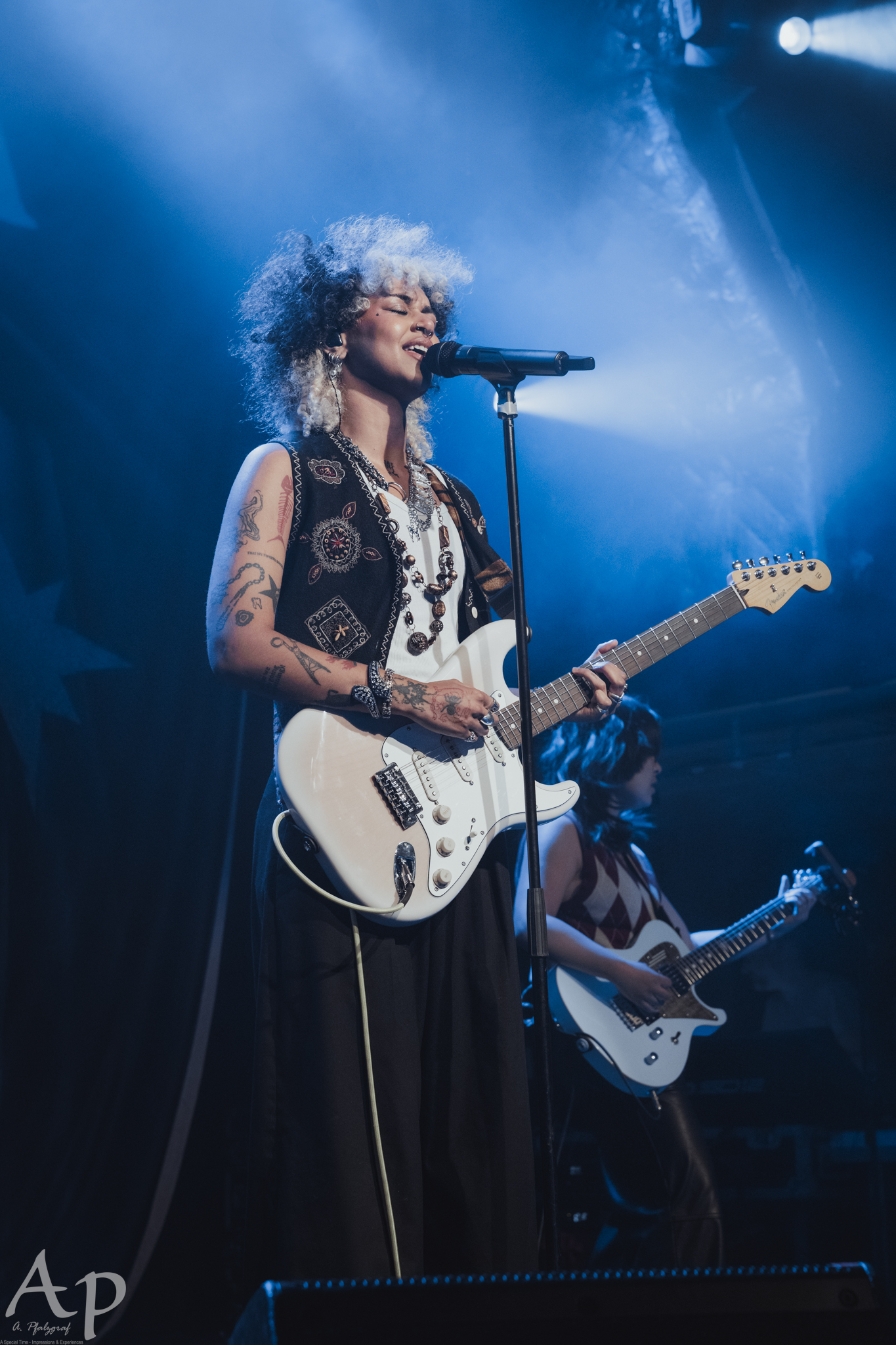 Having just performed a comeback show of sorts at Download Festival two days ago, MOTHICA brings her alt pop to her first headline show back after a stint in rehab, something she’s been open about not just tonight or over the weekend but at the time too. That’s part of her appeal to many; her songs are confessional and illustrate her trials and tribulations, as is MOTHICA herself, creating a bridge between her and fans.