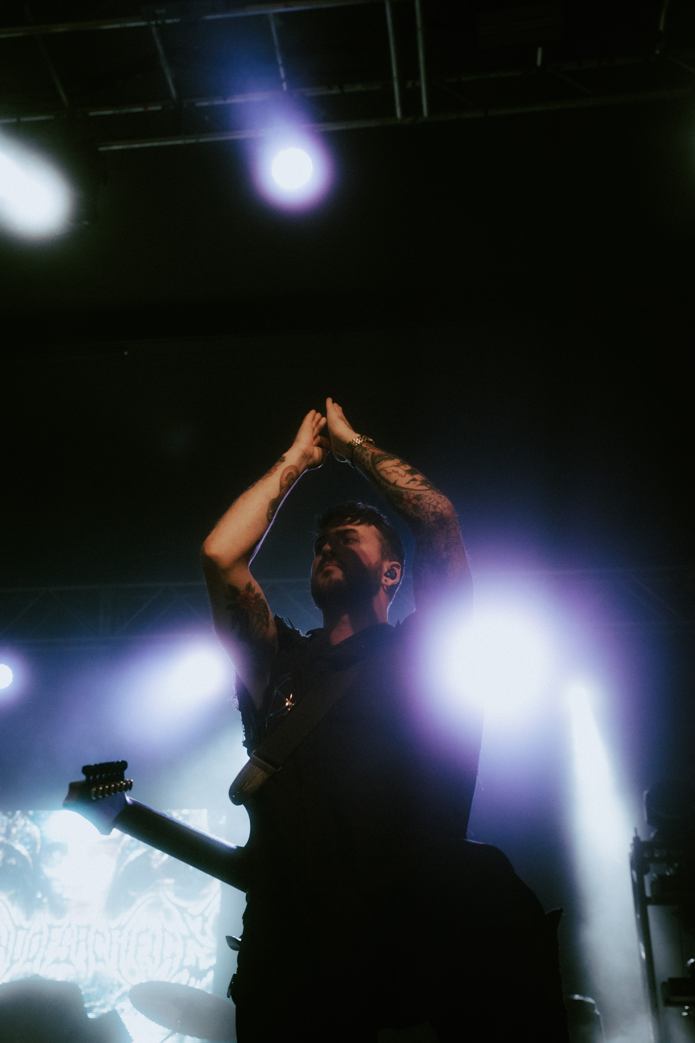 FIT FOR A KING arrive on stage with crushing riffs and deep growls, following in the heavy footsteps of BRAND OF SACRIFICE. But they know they need to take things up a notch and they do. Opening with heavier tracks keeps the energy high before transitioning into their more melodic material later in the set. This balance offers a great mix of their back catalogue, catering to both new and long-time fans. It also provides a perfect bridge between deathcore and metalcore – easing us from relentless pig squeals to soaring choruses that everyone can sing along to.