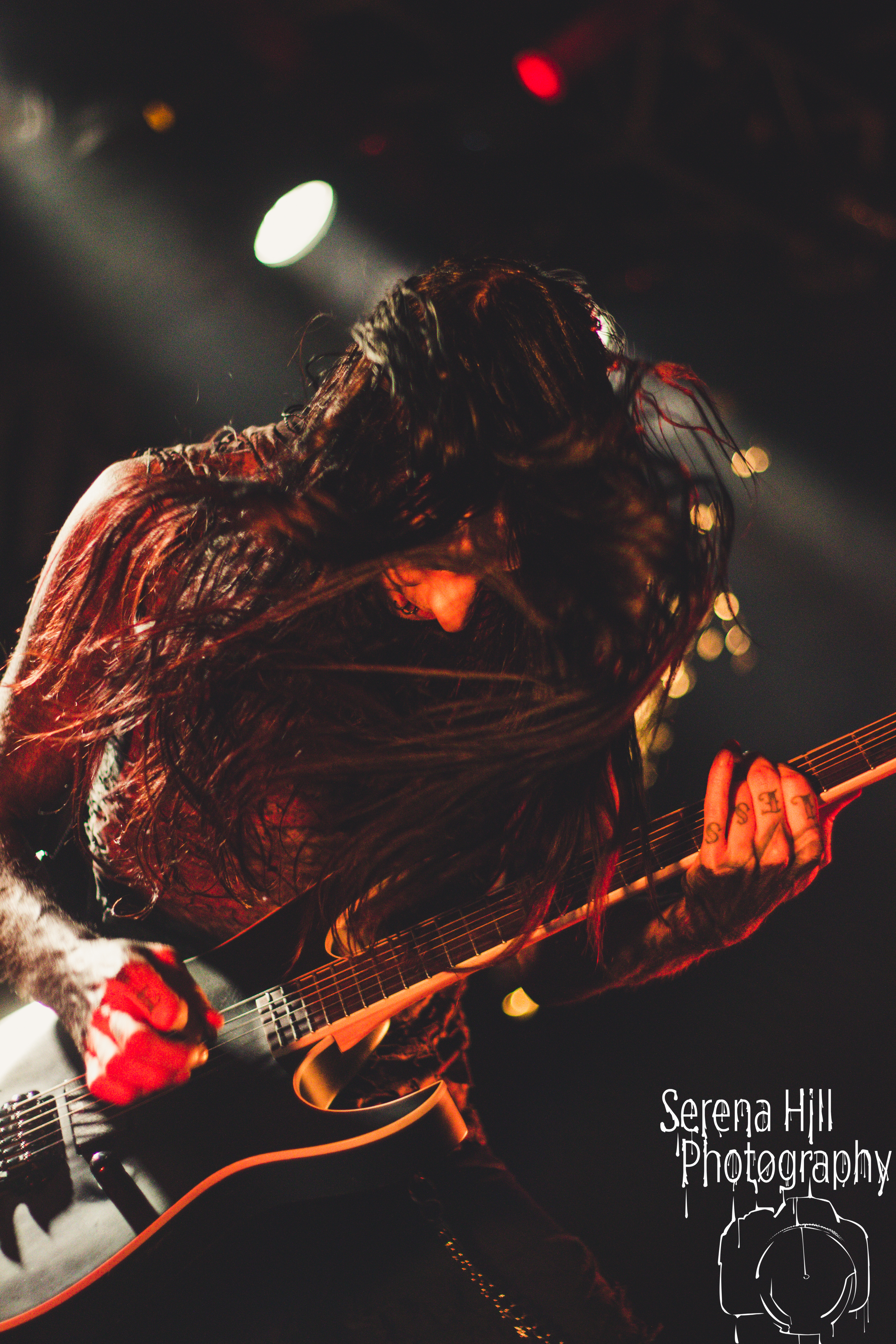 Talking of confidence, MOTIONLESS IN WHITE are full of it as well and understandably so. Their relationship with the UK is growing from strength to strength and they’ve finally been able to bring a production that matches the ilk they’re able to showcase in America. Even better, they’re not using it to compensate either because they have tunes, and serious ones at that. The screams that greet the opening overtures of Rats near biblical levels and incite a huge sing-a-long during the chorus whilst Reincarnate goes off like an atom bomb and all hell breaks looks. ICE NINE KILLS’ Spencer joins the superb Chris Motionless for a bombastic Abigail and there’s even a live debut for Hourglass, one of the deeper cuts from latest record Graveyard Shift that naturally lends most of its material to the set tonight. Oh, and they also crank out a surprisingly faithful and impressive cover of SYSTEM OF A DOWN‘s smash hit Chop Suey! as well, just for good measure. In terms of their production, Bristol Academy is not built for major pyrotechnics but the band’s backing dancers produce angle grinders during Necessary Evil and water pistols for A-M-E-R-I-C-A (or ‘Fuck Trump!’ as it’s christened tonight) which are lovingly discharged over the audience and the light show is equally stunning, particularly during Immaculate Misconception. The energy tapers off slightly towards the end and there’s only one encore song in Eternally Yours, but as far as Friday night entertainment goes, you’d be hard pushed to find something better than this.