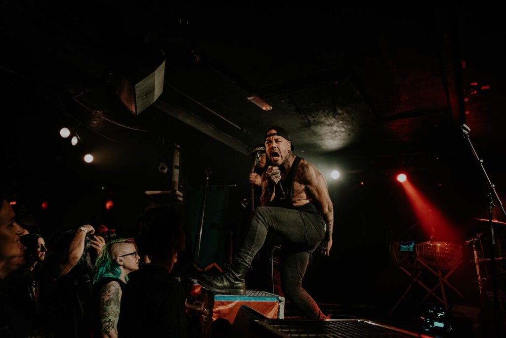 LONE SURVIVORS, a progressive metalcore act from France, don’t quite manage to hit the stage with the same force as the night’s first two bands. They are quieter, both in music and in presence, but do pull some gnarly “bad smell” faces as they rip into the faster chunks of their setlist. Playing two tracks off their latest EP, Run 1, is where LONE SURVIVORS start to slither into their own. The aggression ramps up as they deliver a drum-led battering of distorted riffs and inhuman screams – seriously, how vocalist Arthur Rohou manages to hit some of those notes and still speak with such a melodious voice is borderline terrifying.