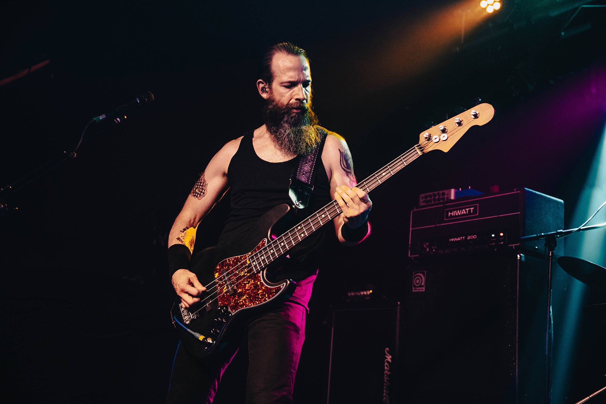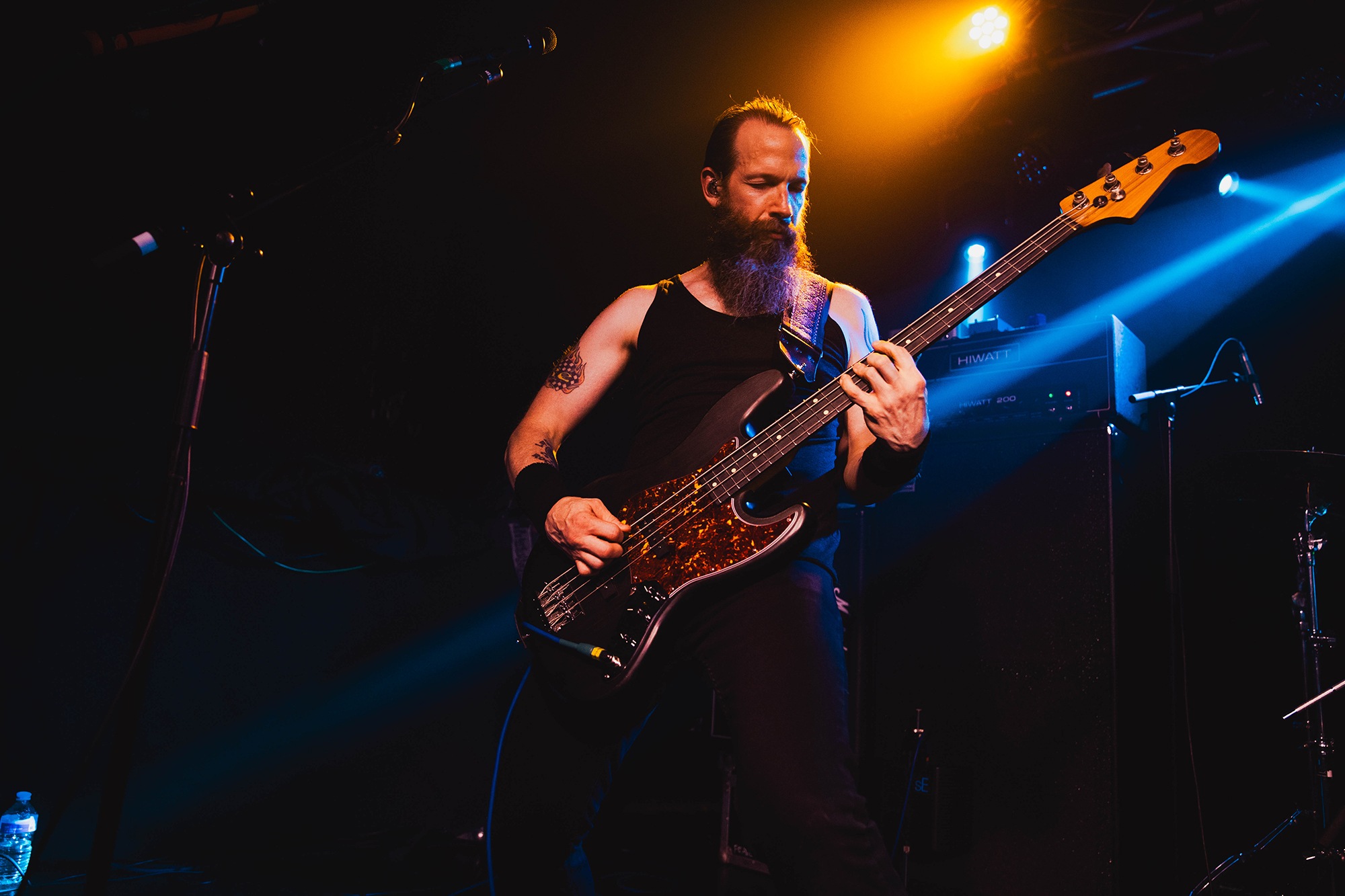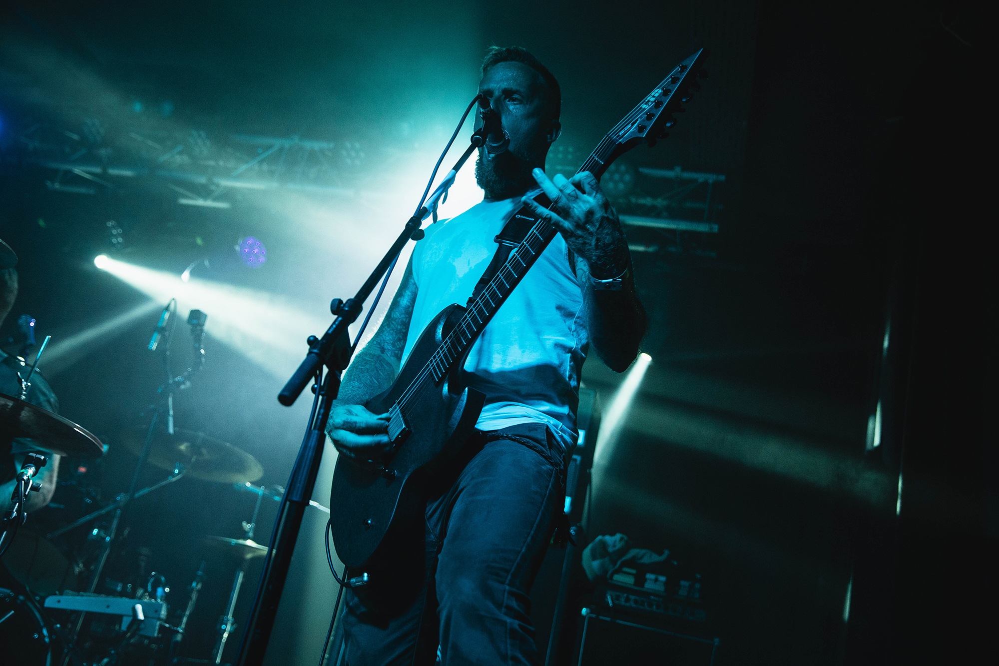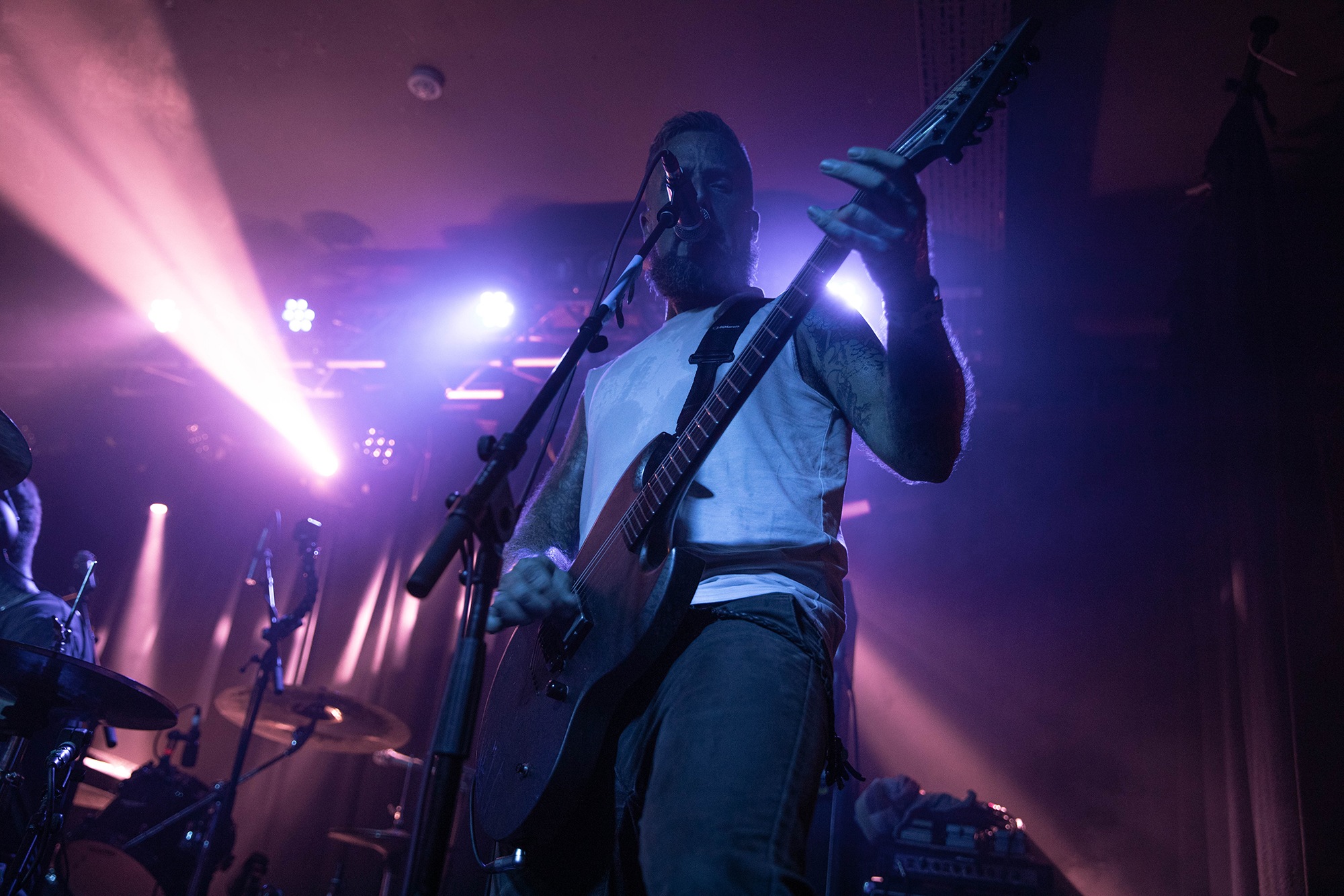 It means opener SILVERBURN find themselves promoted to sole support, and they’re determined to get the crowd moving despite the oppressive summer heatwave. More accurately, they have to try and move what little crowd there is; despite the bar downstairs venue doing a steady trade with many long haired, denim clad people, they’re very slowly filtering upstairs. The trio play a heady blend of hardcore aggression, sludge and post-metal, one part CULT OF LUNA to one part END and some flourishes of thrash alongside it. Mainman James Isaac summons cavernous bellows as they throw in chugging breakdowns amidst the churning carnage with occasional forays into more psychedelic territory. The room fills out nicely during their set, but ultimately they’re a serviceable opener with solid riffs that veer a little too often into basic chugs.Â