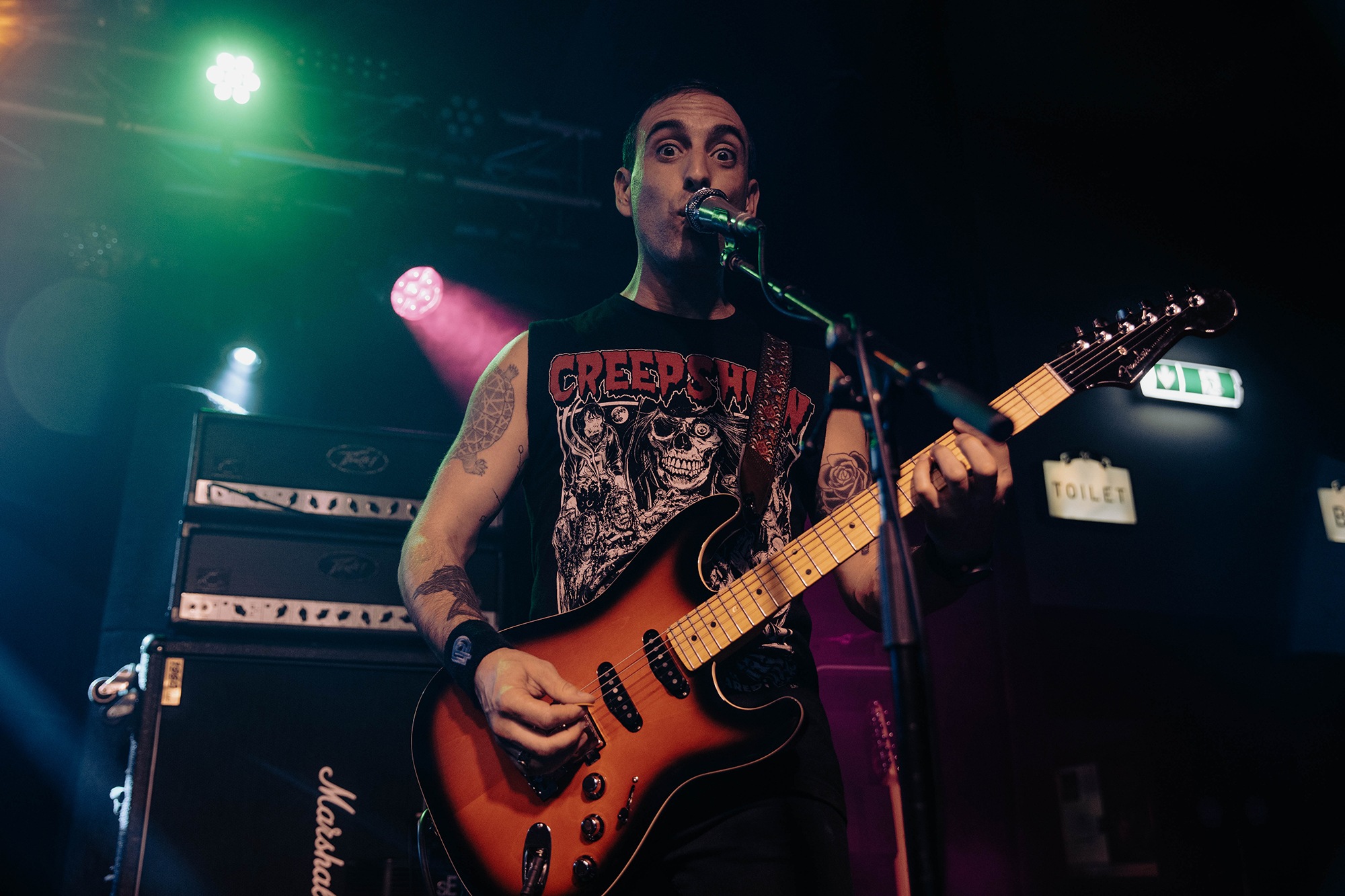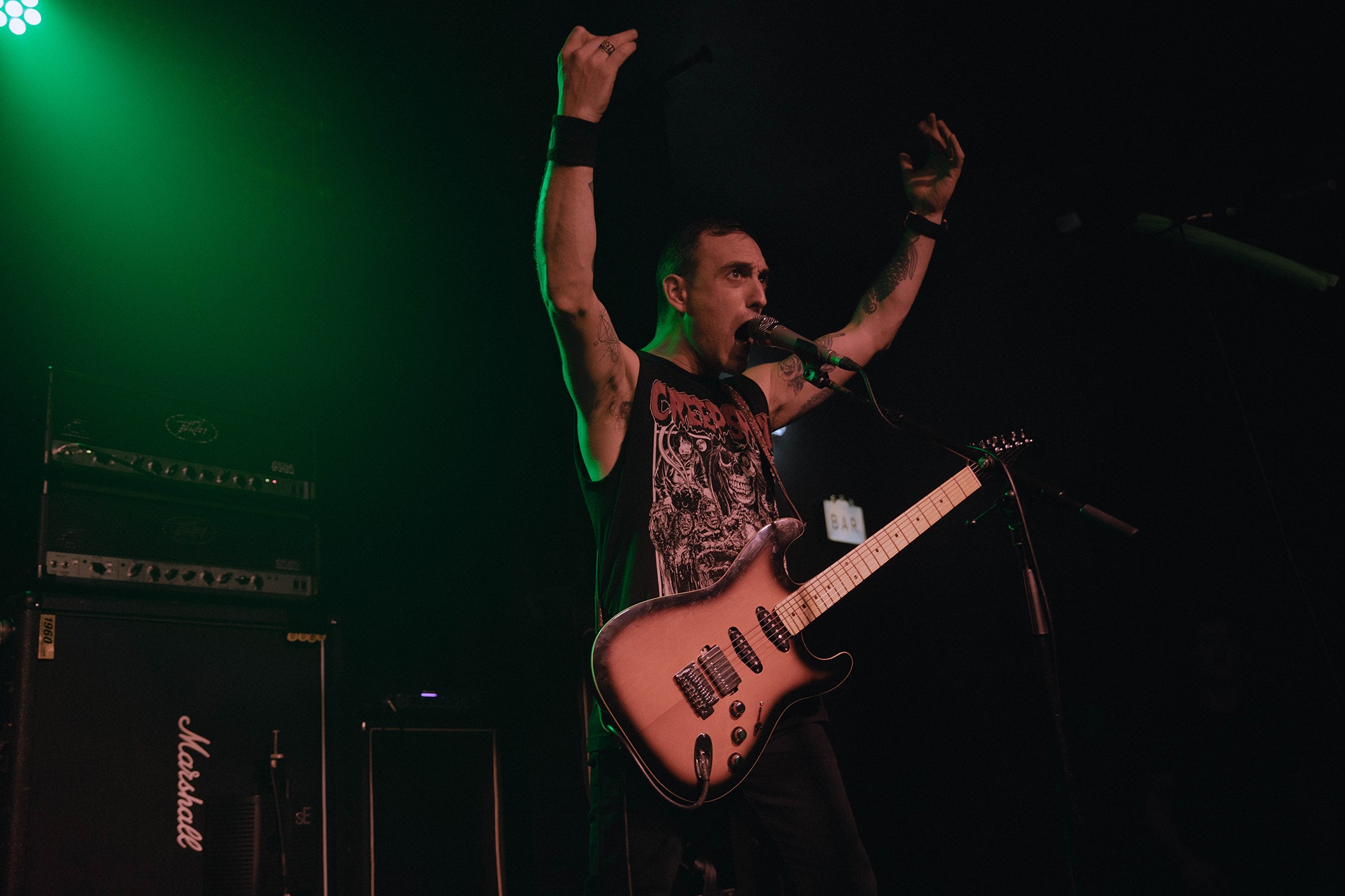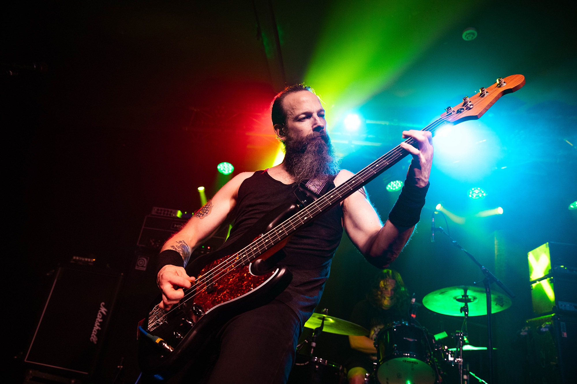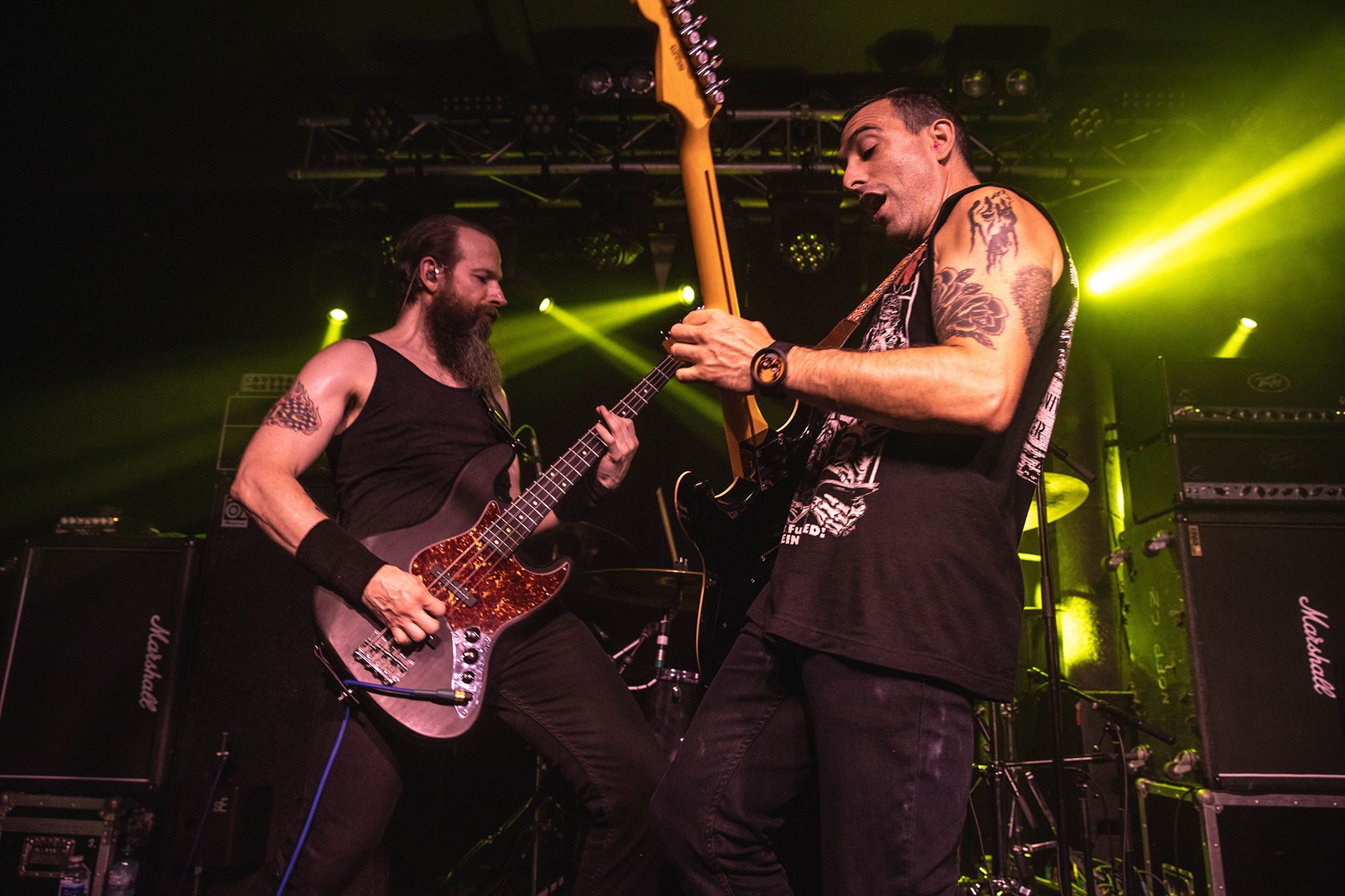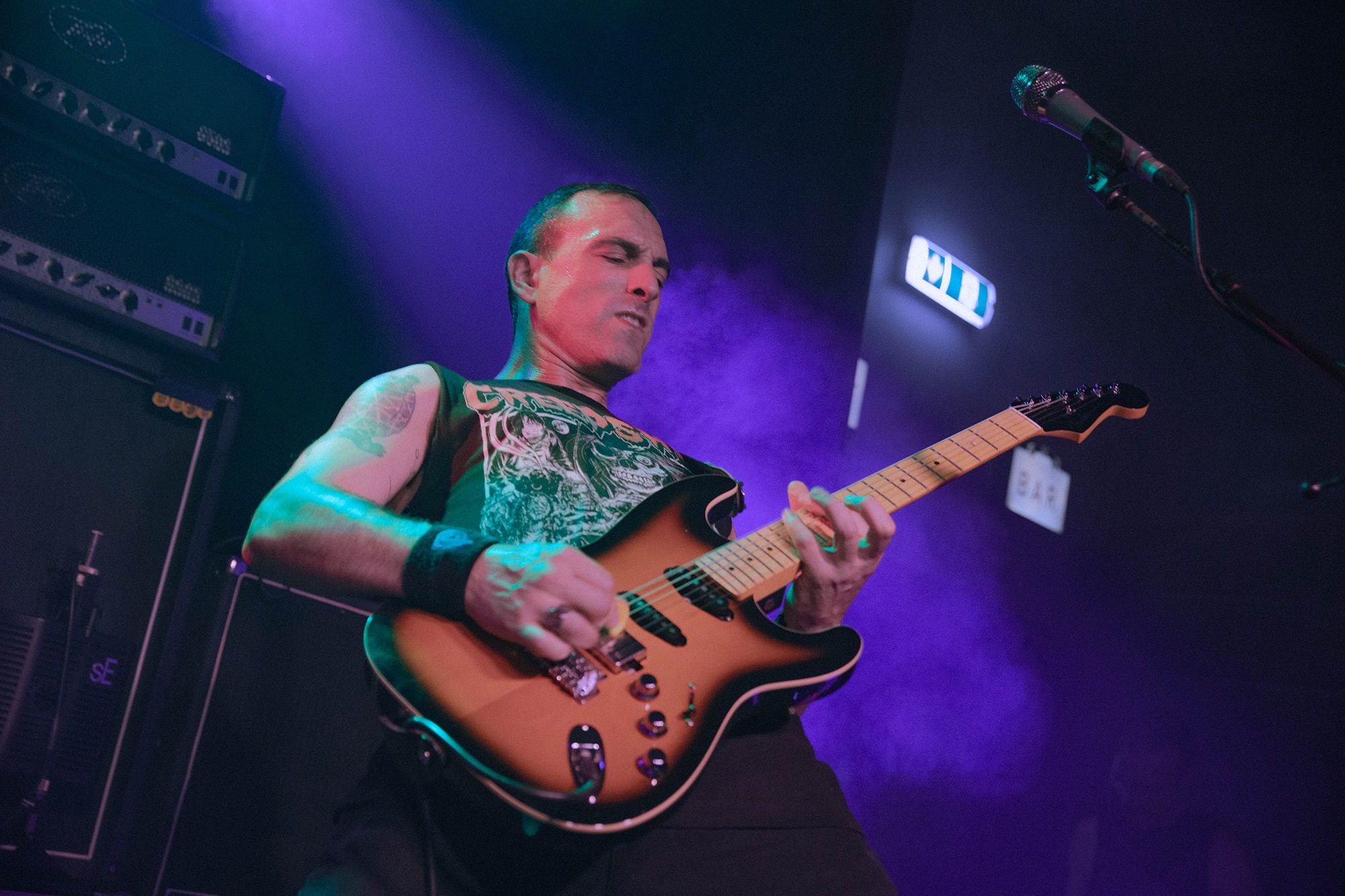 There’s more than a few people struggling in the heat, but that doesn’t stop the pit going apeshit for the stomping groove of Kiss Of Death or the rampaging melodic thrash of Call Of The Void. Unfortunately it’s so hot that more than a few people are seen struggling out, but the room is so heaving it makes no difference to the charged atmosphere, and MUTOID MAN keep their own energy levels up with frequent towel use – though they’re probably so saturated by the end you could have the world’s most disgusting shower. The hour-ish set is a reminder of not only how brilliant Mutants is as an album, but that MUTOID MAN are simply a phenomenal heavy metal band.Â