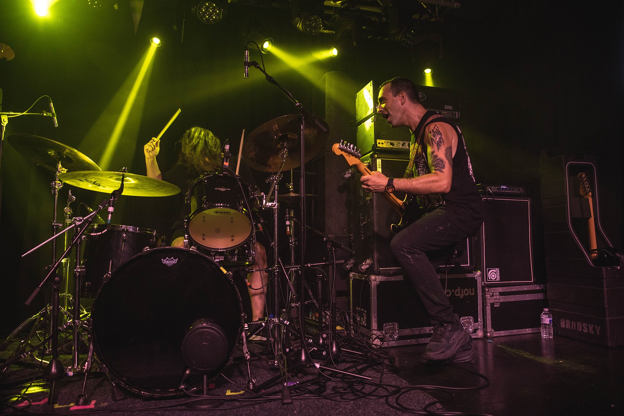 MUTOID MAN are so keen to get the thrash party started that they’re on quarter of an hour early and tear straight into Setting Sun followed by Bridgeburner, Brodsky grinning as he yells “oh shit London it’s so good to be back!” before its beers aloft riff kicks in. Before a raucous Melt Your Mind the band gleefully point out someone’s playing HEALTH through their monitors (“can I get some in mine?” Brodsky quips at this point), the band then going into it full tilt. Even with the oppressive humidity it’s near impossible not to have a good time; MUTOID MAN‘s tunes are custom built to plaster grins on faces and get beer and bodies flying.
