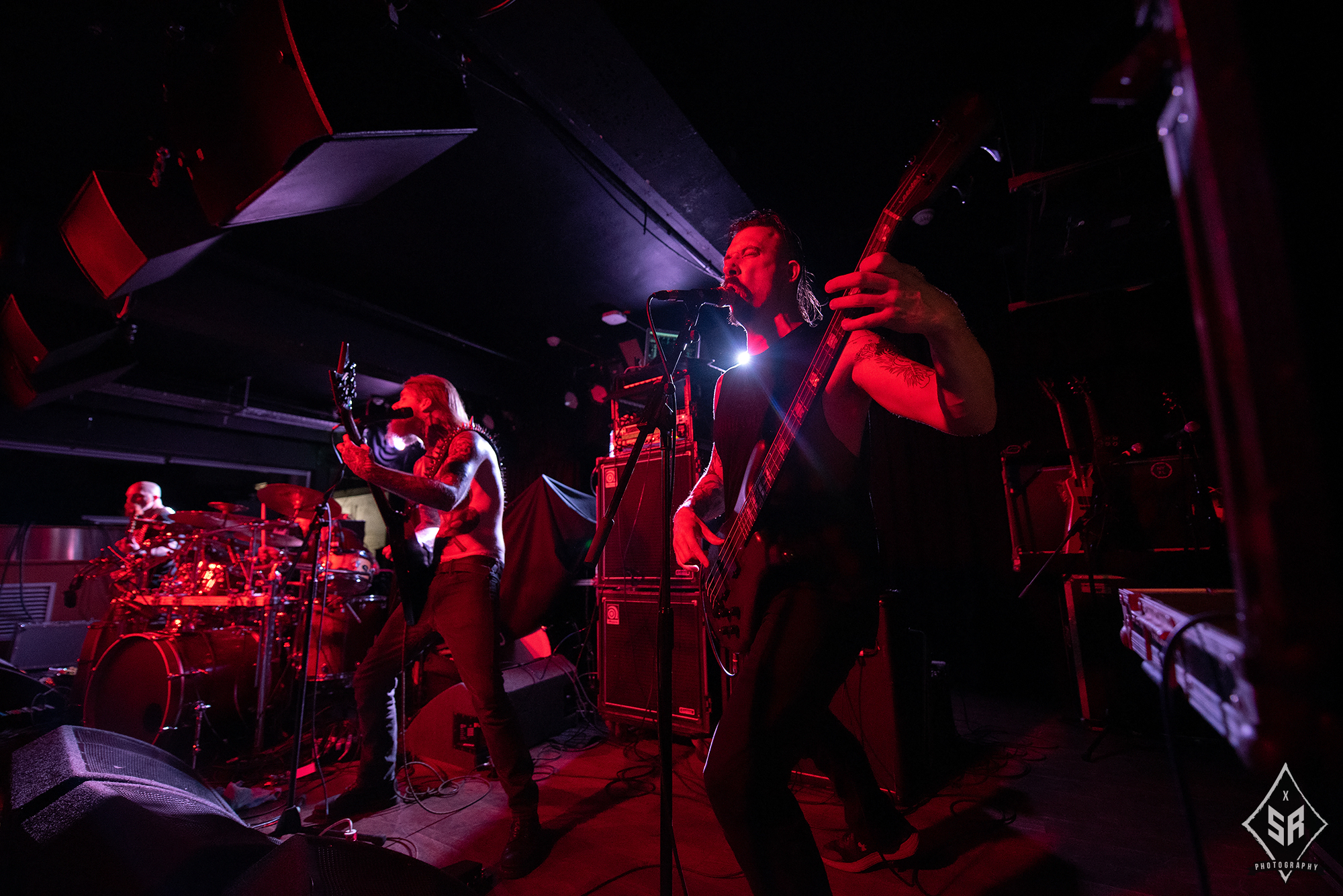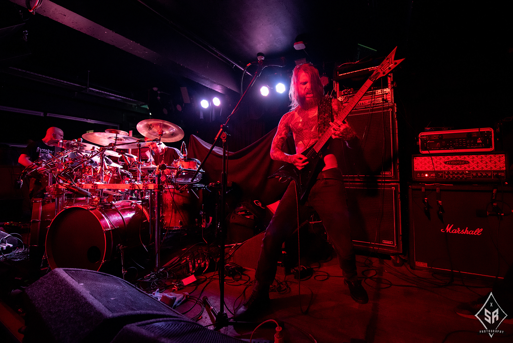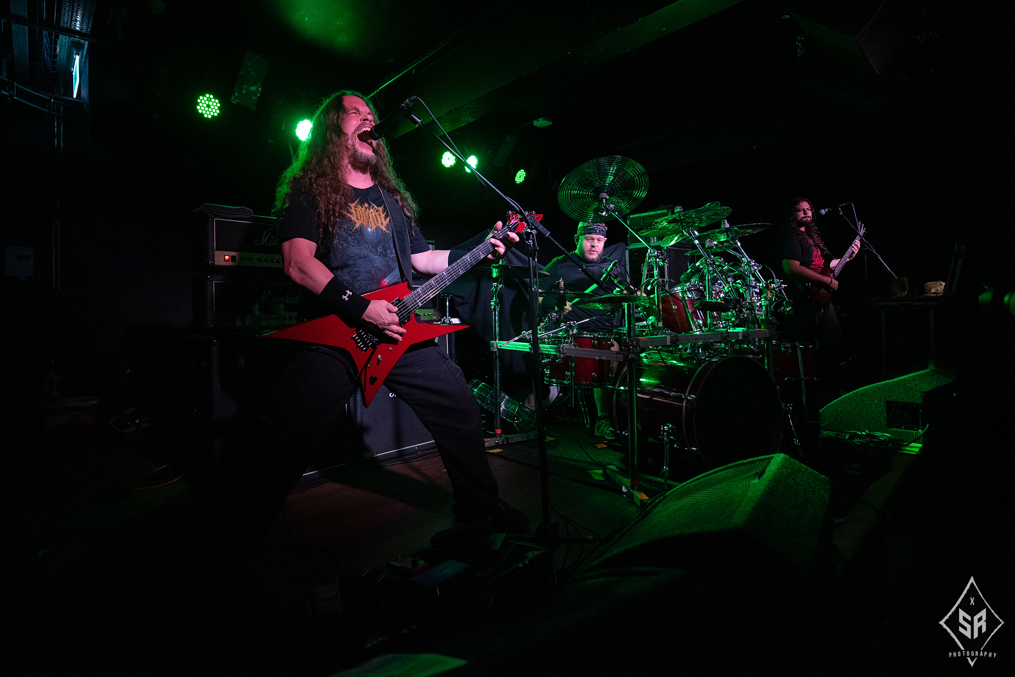 HATE ETERNAL are regarded in the same calibre as tonight’s headliners. Led by the formidable Erik Rutan, the American death metallers have slogged away in the death metal scene for over two decades now and if anything can be taken away from their main support slot to NILE, it is that they are a band who operate with the utmost proficiency in the live environment. Throughout their time on stage, the three piece dispatch a set that is just entirely solid. The riffs from Rutan and live bassist Art Paiz forge a solid wall of sound, with occasional splashes of lead trickery from Rutan displaying a technical edge, and live drummer John Longstreth pounds his kit to one inch of its life. With a set spanning a wide portion of their back catalogue and with new material from last year’s Upon Desolate Sands slotting in nicely to their older material, the band commanded the stage. And yet, given the sheer brutality of VITRIOL prior and the later monolithic effort from NILE, HATE ETERNAL just lacked that spark to truly grab you by the throat and pummel you into submission. It’s difficult to pin-point exactly what was at fault, as the trio gave it their all and certainly received adoration from the crowd, it just felt like for all their tightness and proficiency, HATE ETERNAL just lacked that cutting edge to make a good performance into a truly spectacular one.