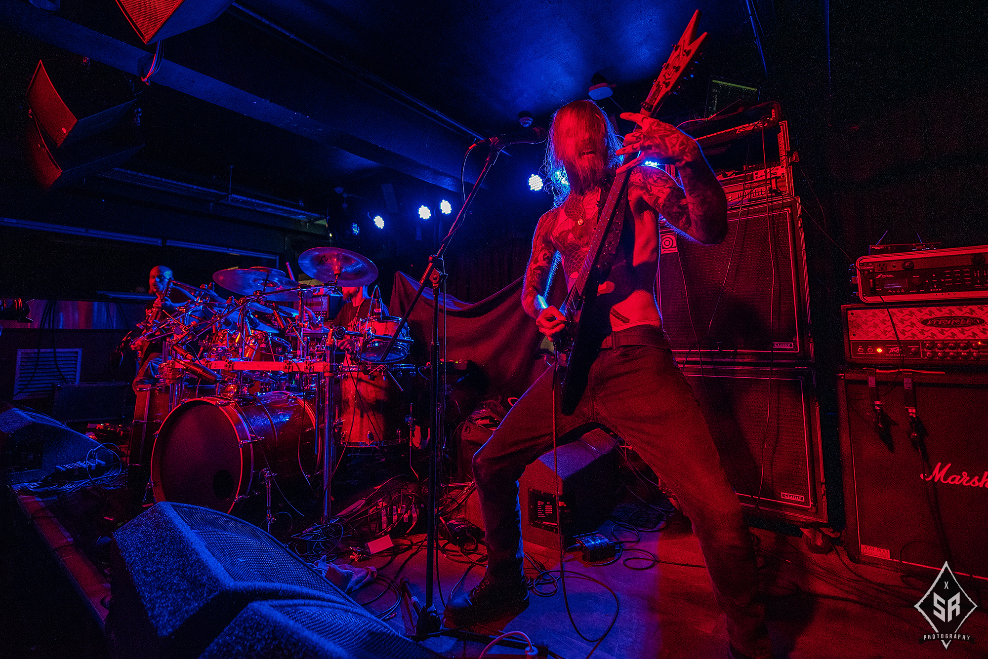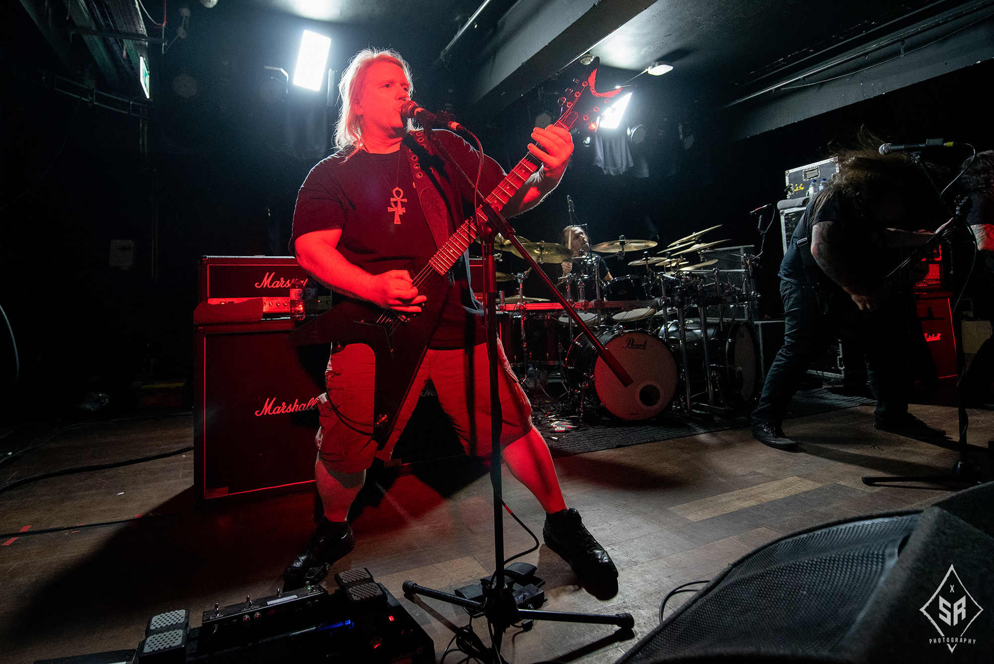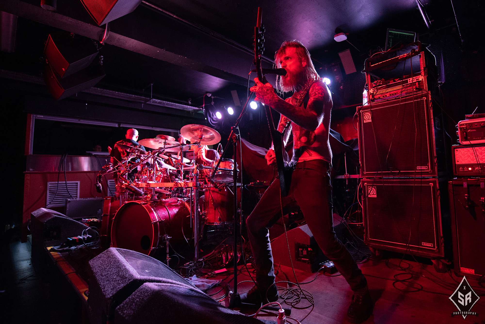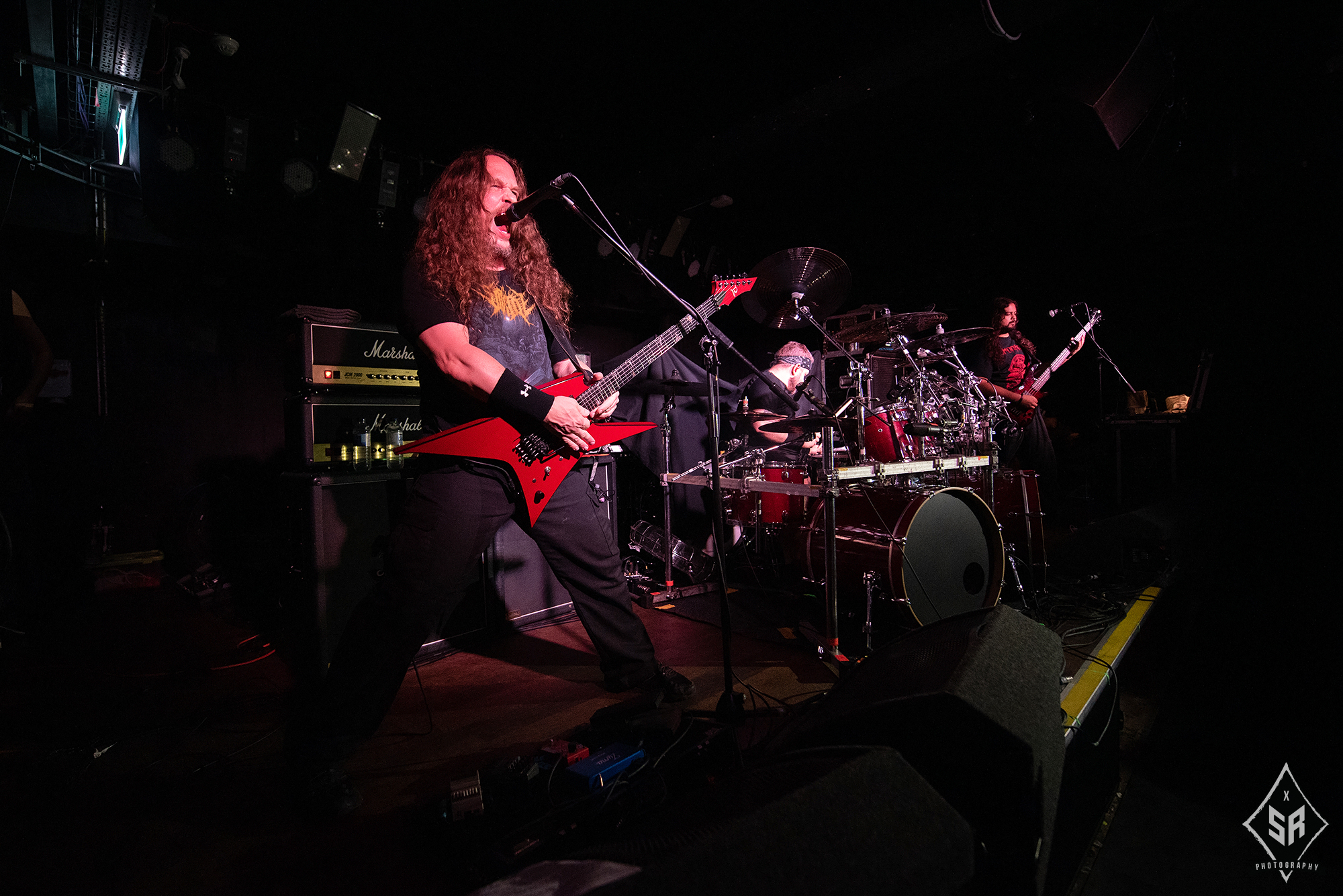 HATE ETERNAL are regarded in the same calibre as tonight’s headliners. Led by the formidable Erik Rutan, the American death metallers have slogged away in the death metal scene for over two decades now and if anything can be taken away from their main support slot to NILE, it is that they are a band who operate with the utmost proficiency in the live environment. Throughout their time on stage, the three piece dispatch a set that is just entirely solid. The riffs from Rutan and live bassist Art Paiz forge a solid wall of sound, with occasional splashes of lead trickery from Rutan displaying a technical edge, and live drummer John Longstreth pounds his kit to one inch of its life. With a set spanning a wide portion of their back catalogue and with new material from last year’s Upon Desolate Sands slotting in nicely to their older material, the band commanded the stage. And yet, given the sheer brutality of VITRIOL prior and the later monolithic effort from NILE, HATE ETERNAL just lacked that spark to truly grab you by the throat and pummel you into submission. It’s difficult to pin-point exactly what was at fault, as the trio gave it their all and certainly received adoration from the crowd, it just felt like for all their tightness and proficiency, HATE ETERNAL just lacked that cutting edge to make a good performance into a truly spectacular one.