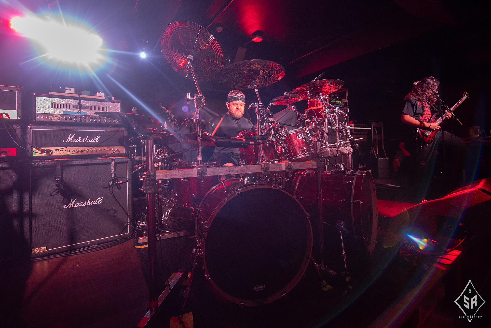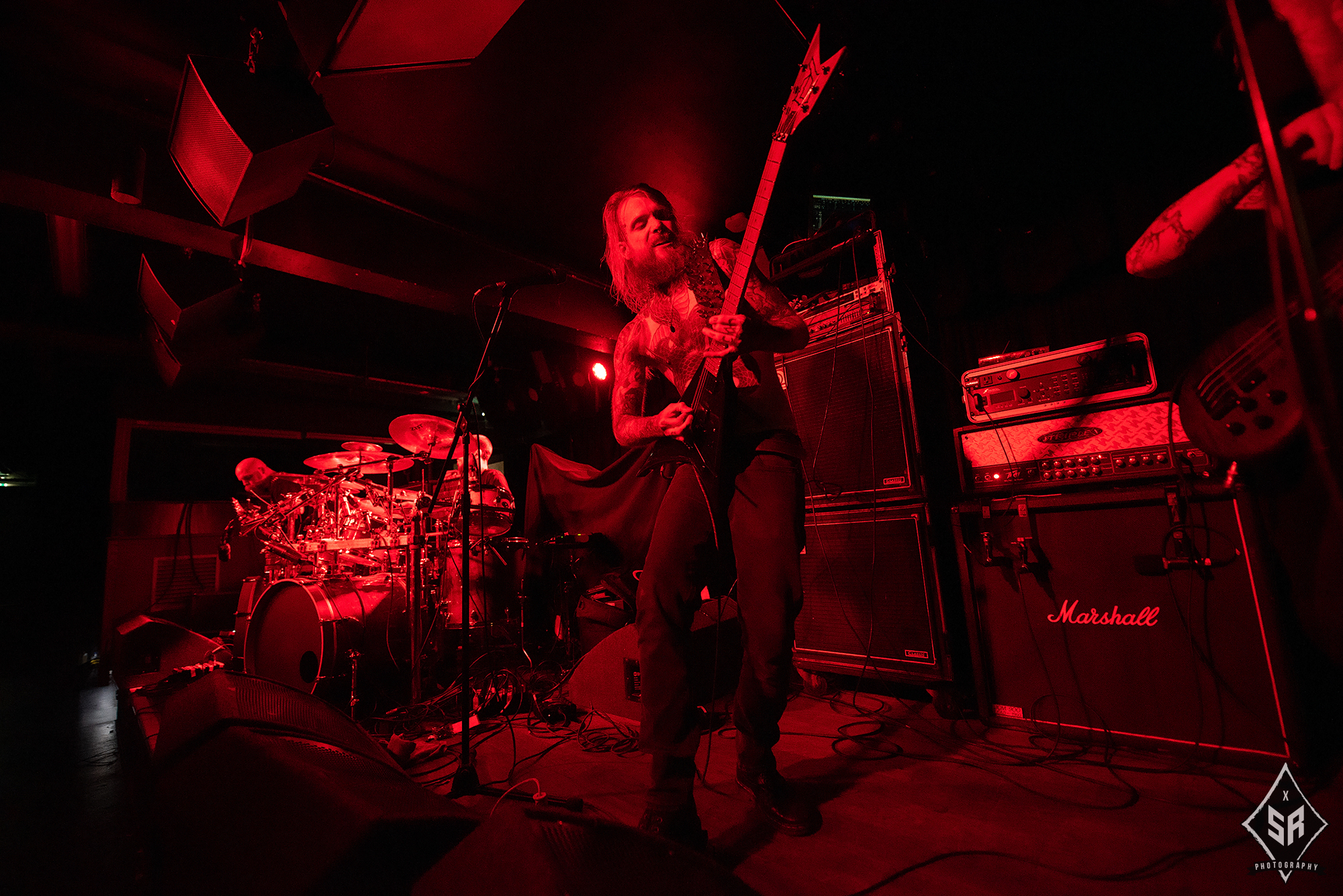 Karl Sanders and Brian Kingsland never break stride in delivering their rampaging riffing, combining effortlessly to dispatch passages of sheer monolithic power as seen with the mid-tempo chug of Kafir!, which keeps heads banging aplenty. George Kollias is often regarded as one of the best drummers in the realm of death metal and he adds a further feather to his cap with a breathtaking performance in Manchester as he continuously keeps the pace flowing in top gear, and bassist/lead vocalist Brad Parris‘ low, rumbling growls rarely get lost in the frantic mix.