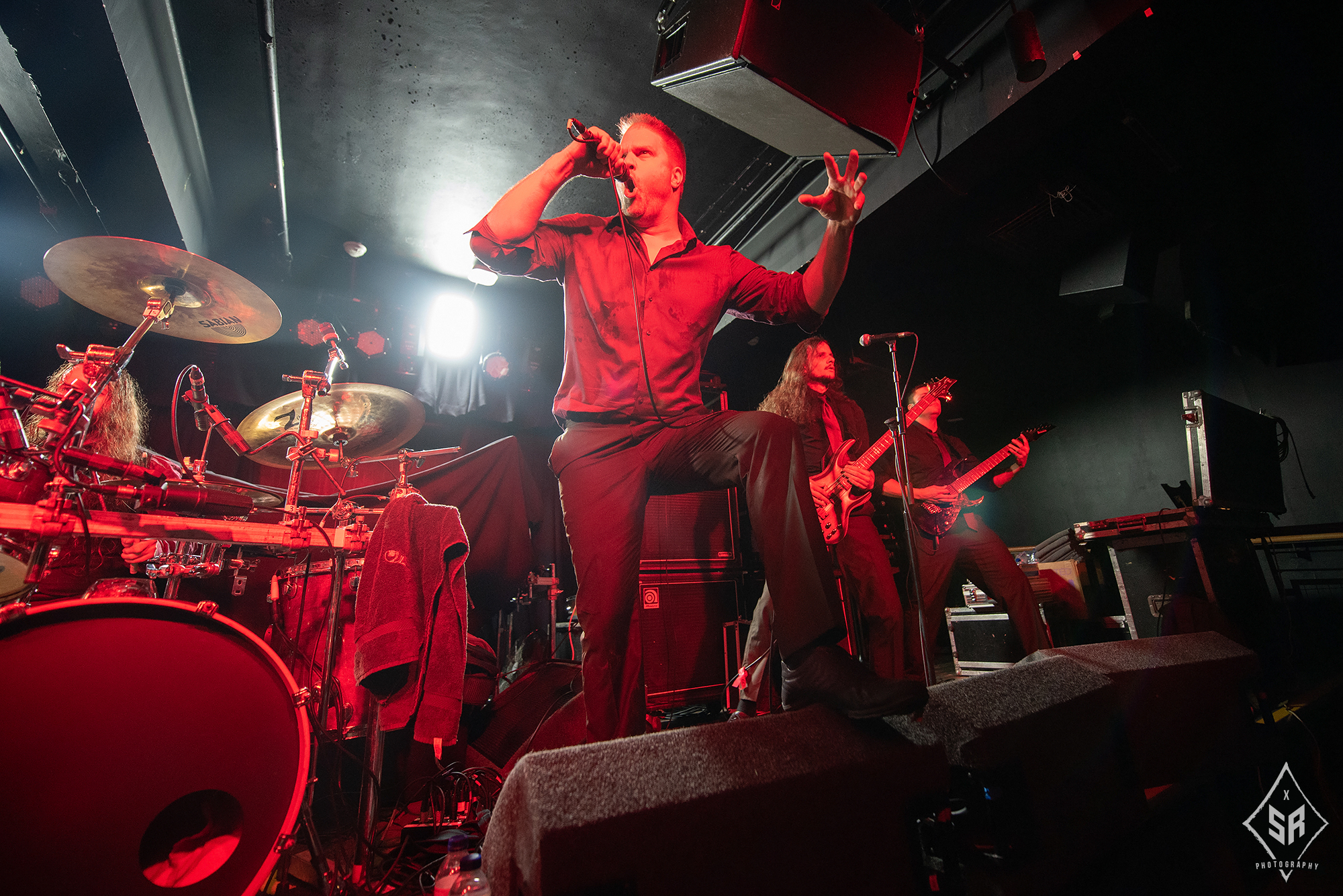 Openers OMOPHAGIA have the daunting task to kick off proceedings, and despite the basement room of Club Academy being far from capacity, the Swiss quintet waste absolutely no time in setting an immediate precedent of brutality. Donning smart shirts and ties, somewhat intriguing given their brand of death metal, the band command the stage through a musical maelstrom of savage riffs and brutal blasts from frontman Beni. Splashes of technicality from lead guitarist Mischa showcases the technical prowess within their ranks and with a substantial portion of the set comprised of material from latest album 646965, it’s clear that the band are looking ahead to the future. A solid opening effort from a band that could really have benefited from a larger audience.