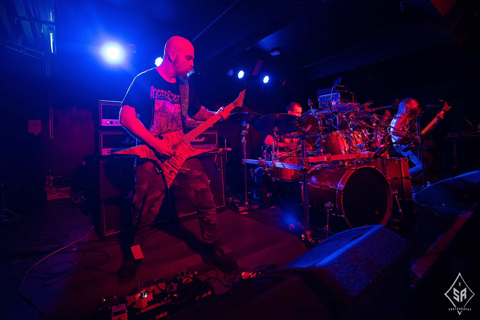 With a decorated back catalogue, NILE have a wealth of material to unleash on the now swelling crowd of Manchester’s Club Academy. A blessing rather than a curse, tonight’s setlist is reflective of their long-serving career and as the now-iconic opening salvo of Sacrifice Unto Sebek begins to unfold, there is anticipation in the air for what is about to commence; sheer musical brutality. And oh boy do the band deliver.