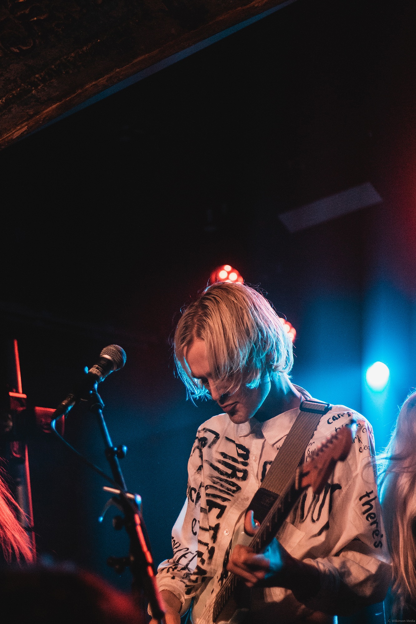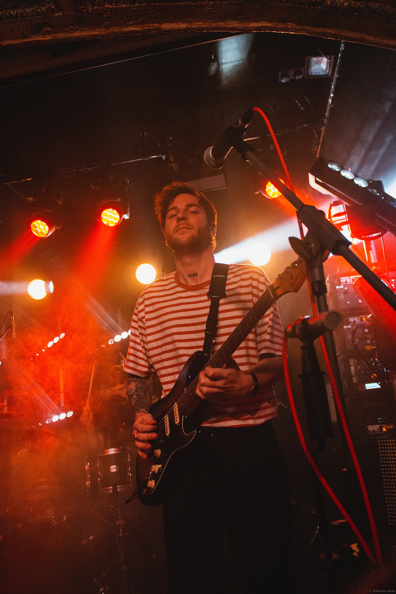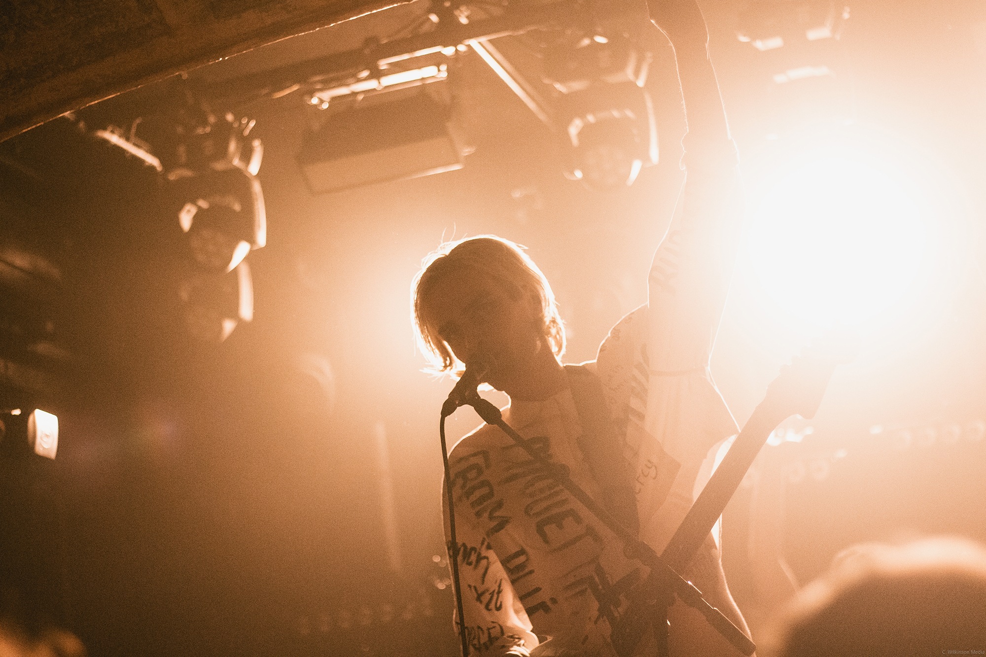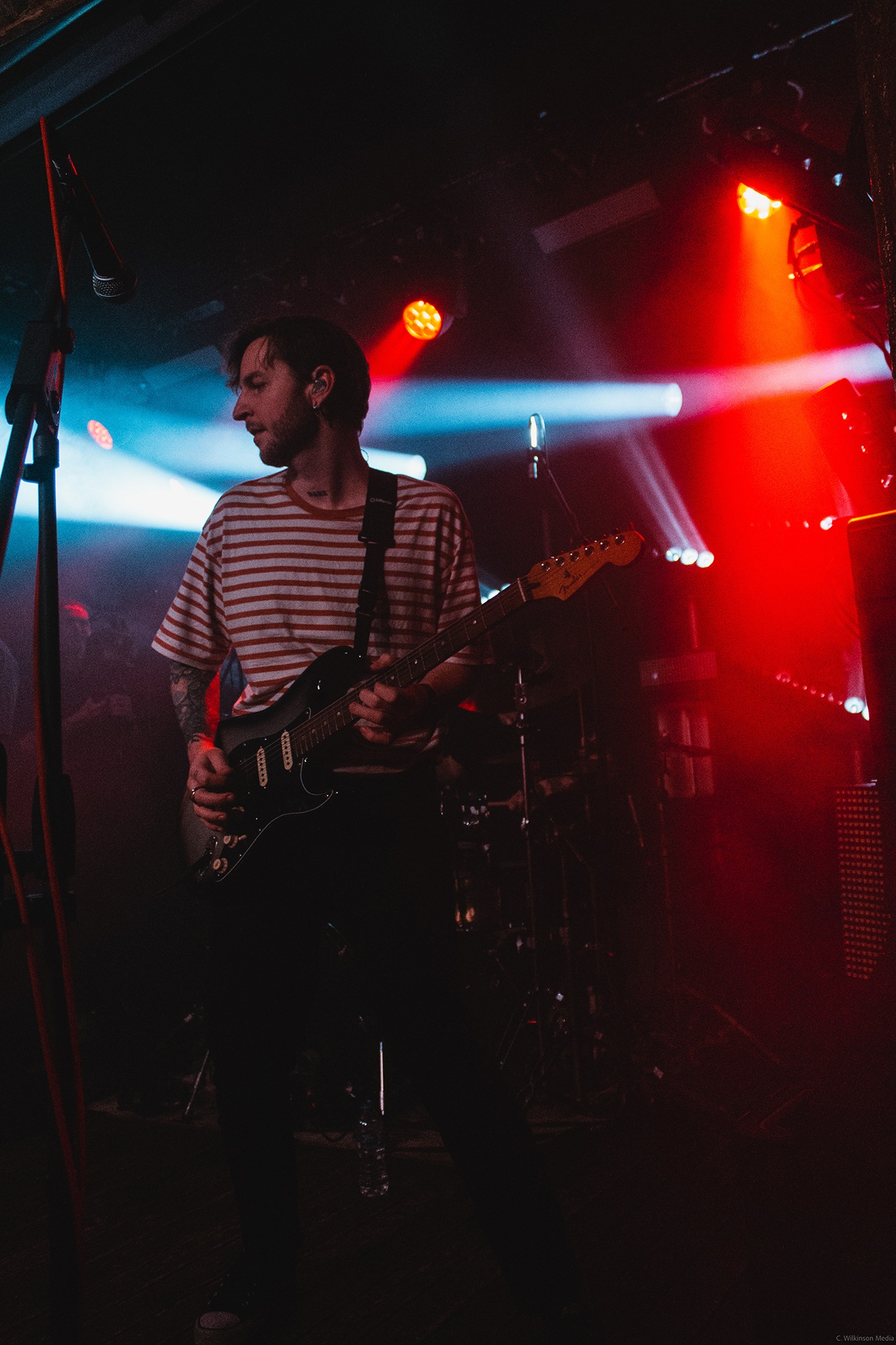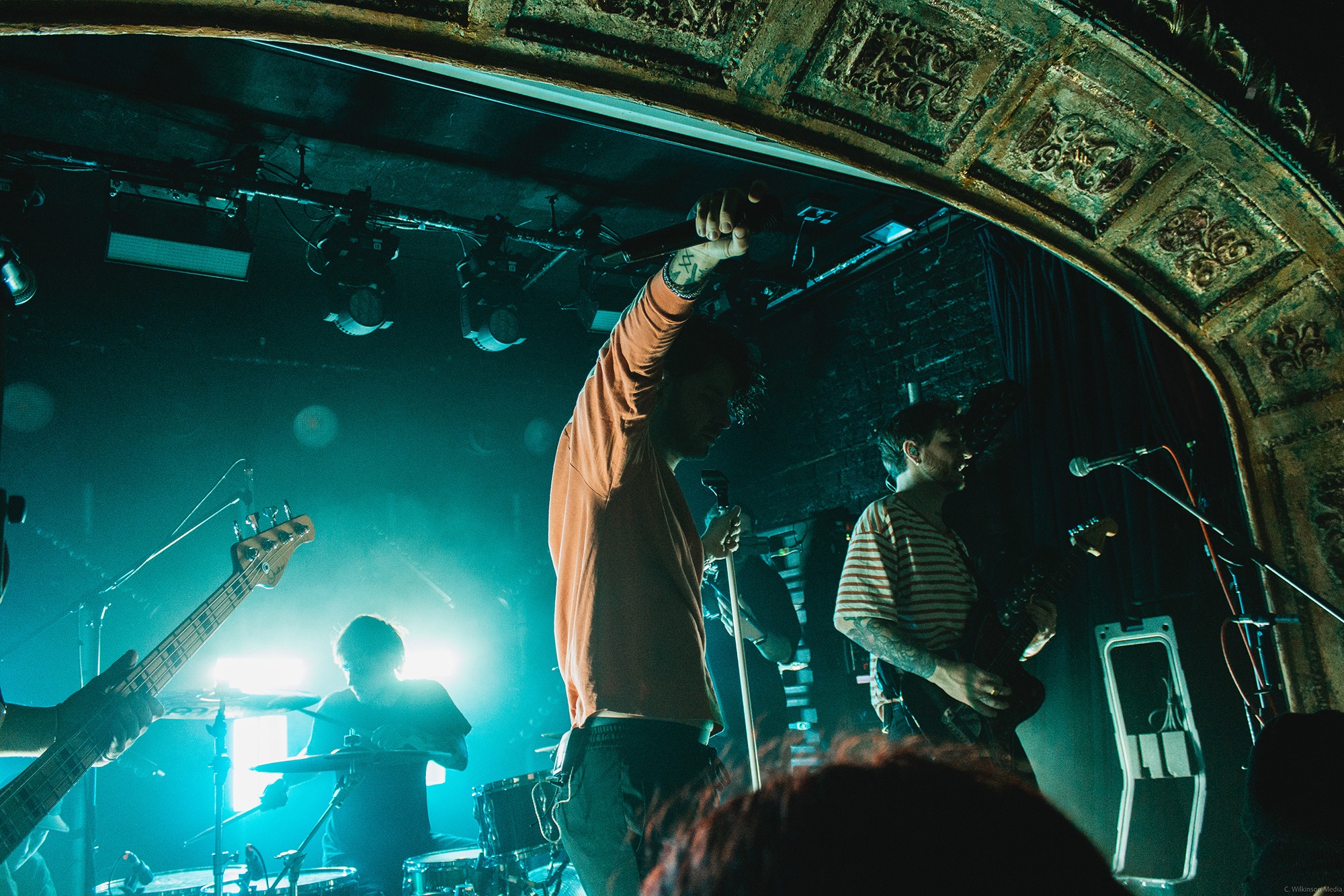 One thing that’s immediately striking is just how small the room is; holding just over 300 people, it’s a wonderfully intimate space for such a remarkable evening. Opening the second night, where NORMANDIE are playing 2018’s White Flag, are London’s own DELAIRE THE LIAR. Already causing a stir in their own right, and deservedly so, the quartet take to the stage with new stage getup including jackets scrawled with spiky writing that befits the angrier parts of their sound. The dual vocal of Ffin Colley and Em Lodge complement each other both during those aggressive as well as softer moments. With just a thirty minute set, they pack in plenty of that duality, especially on material from their excellent 2021 EP Eat Your Own. The crowd seem to enjoy it too, loud applause after every song and more than a few singing along. If they keep on like this, they’ll have outgrown venues like OMEARA before long.