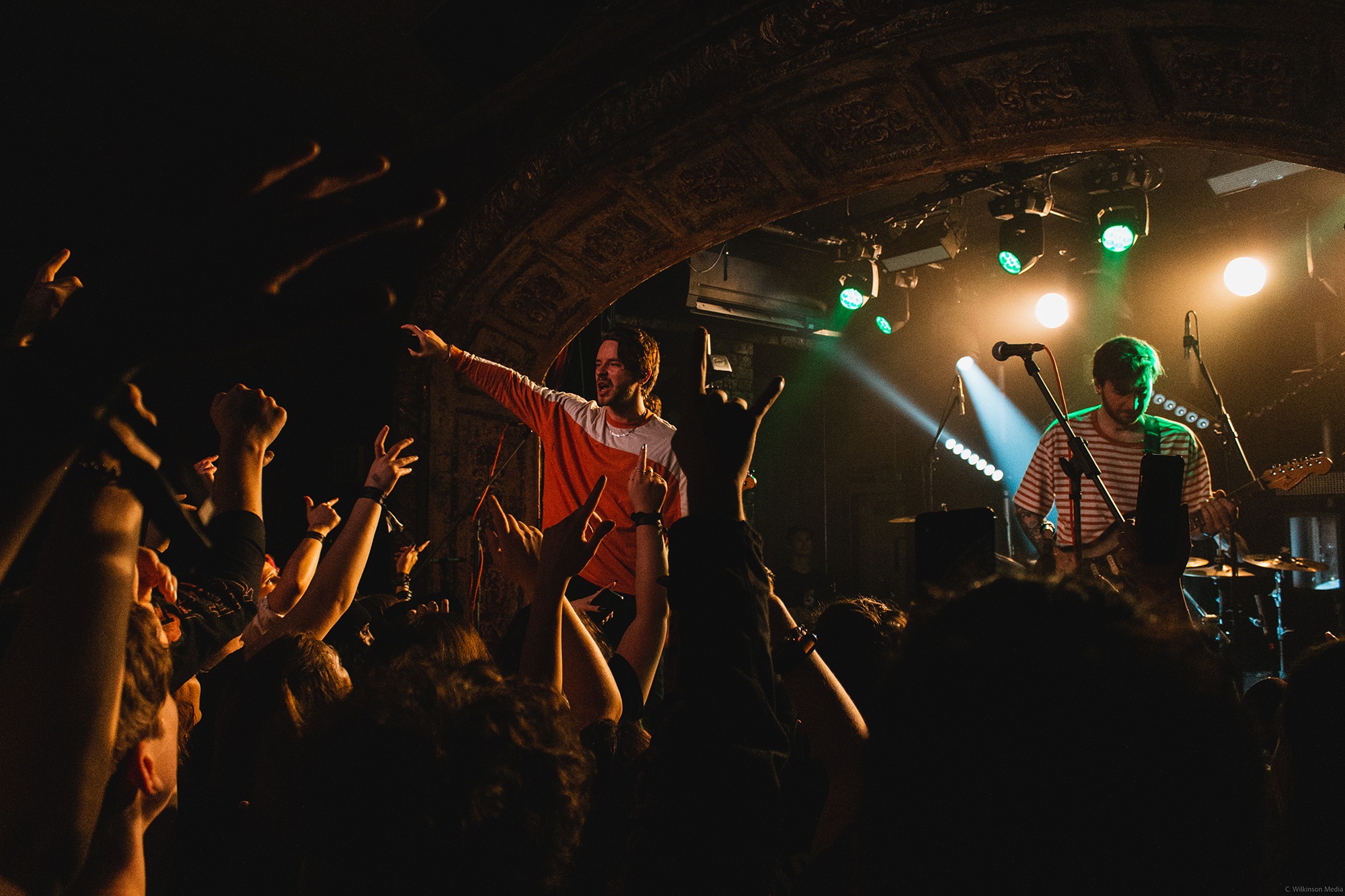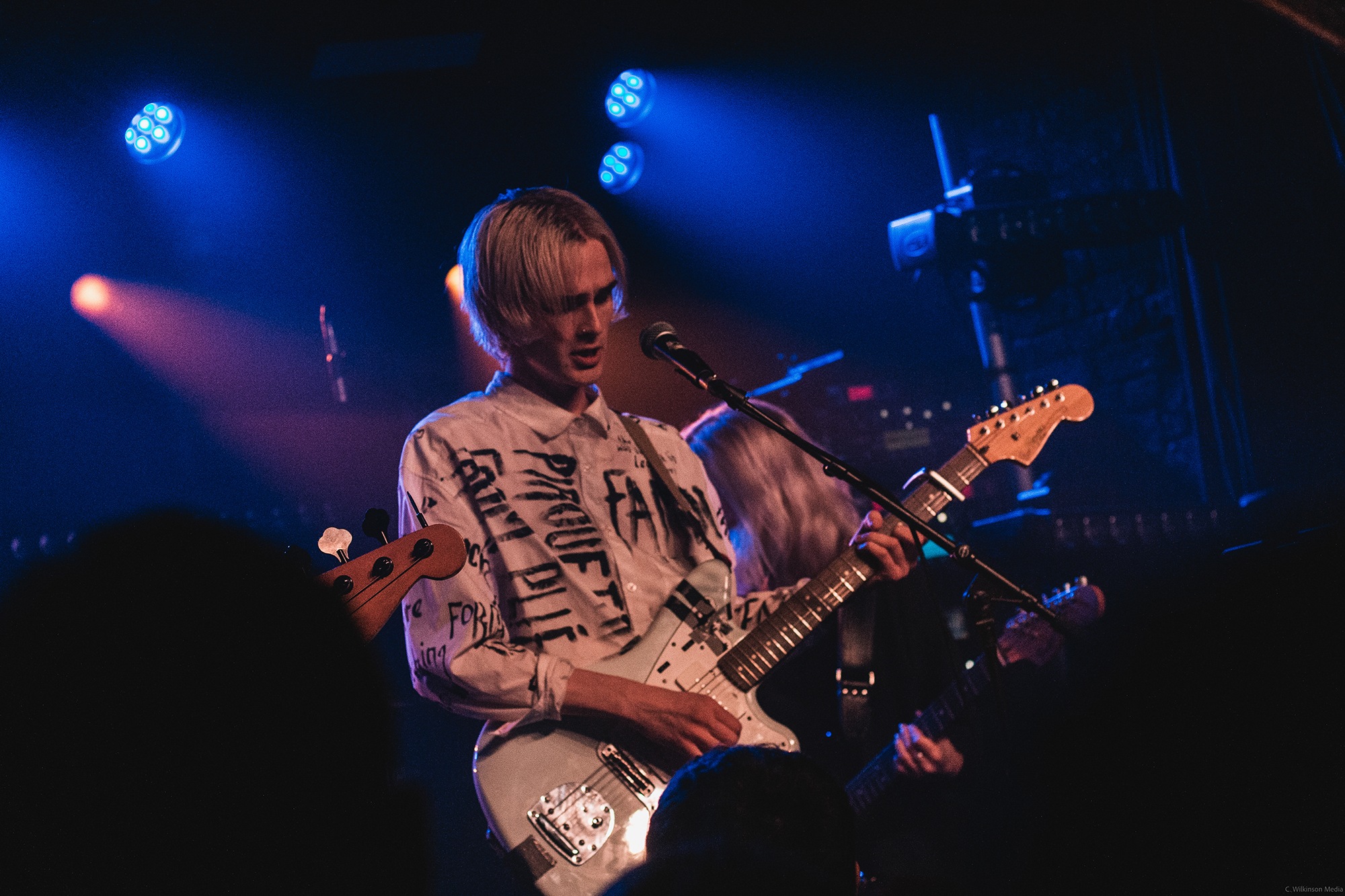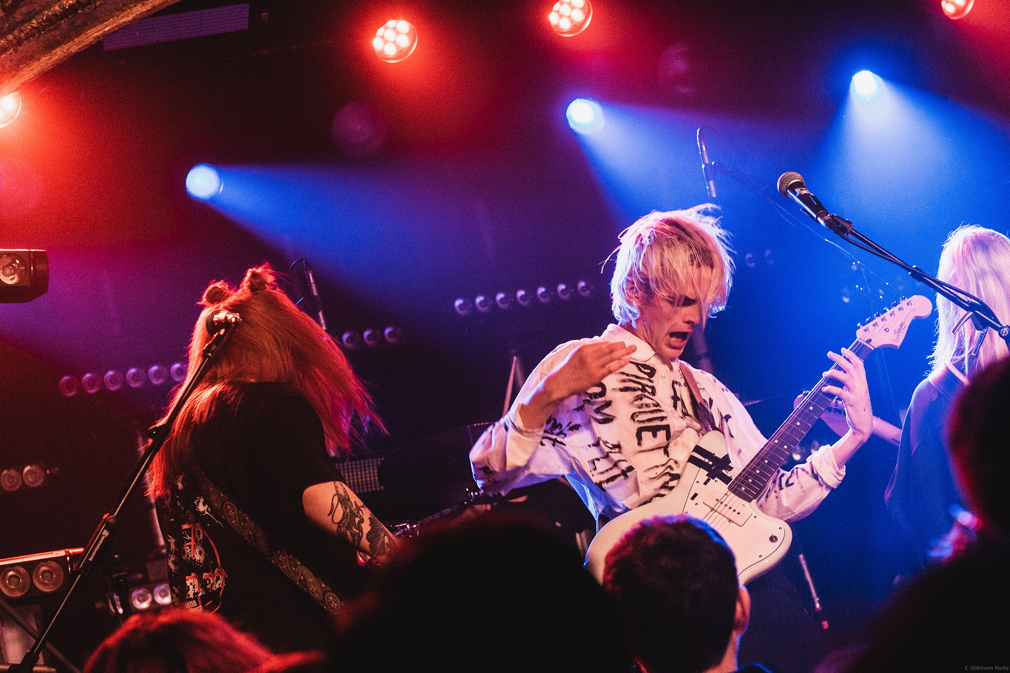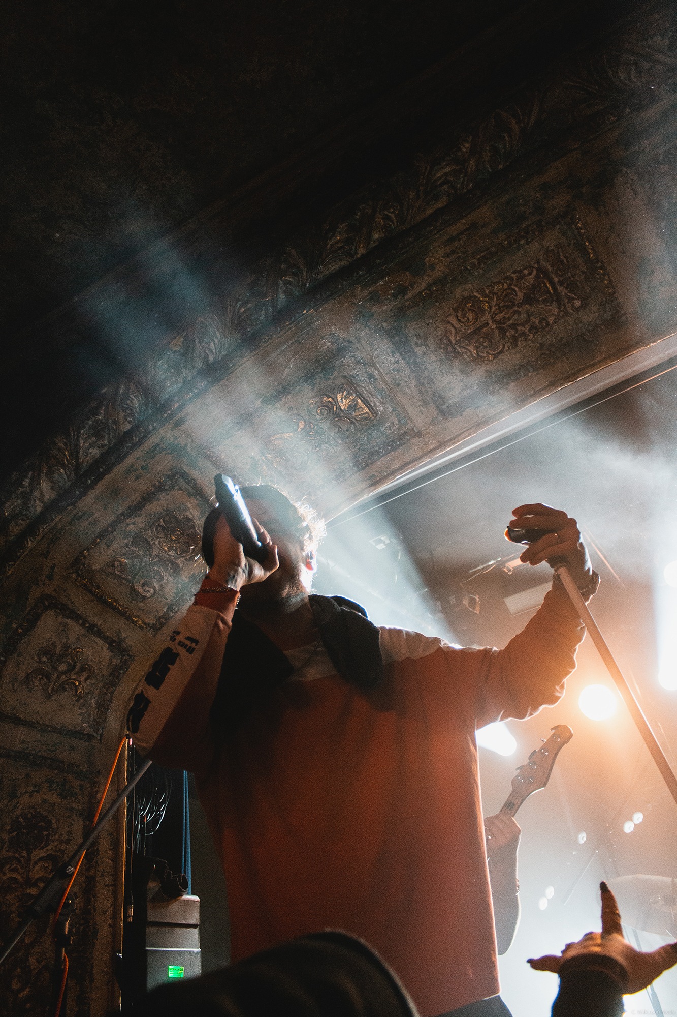 One thing that’s immediately striking is just how small the room is; holding just over 300 people, it’s a wonderfully intimate space for such a remarkable evening. Opening the second night, where NORMANDIE are playing 2018’s White Flag, are London’s own DELAIRE THE LIAR. Already causing a stir in their own right, and deservedly so, the quartet take to the stage with new stage getup including jackets scrawled with spiky writing that befits the angrier parts of their sound. The dual vocal of Ffin Colley and Em Lodge complement each other both during those aggressive as well as softer moments. With just a thirty minute set, they pack in plenty of that duality, especially on material from their excellent 2021 EP Eat Your Own. The crowd seem to enjoy it too, loud applause after every song and more than a few singing along. If they keep on like this, they’ll have outgrown venues like OMEARA before long.