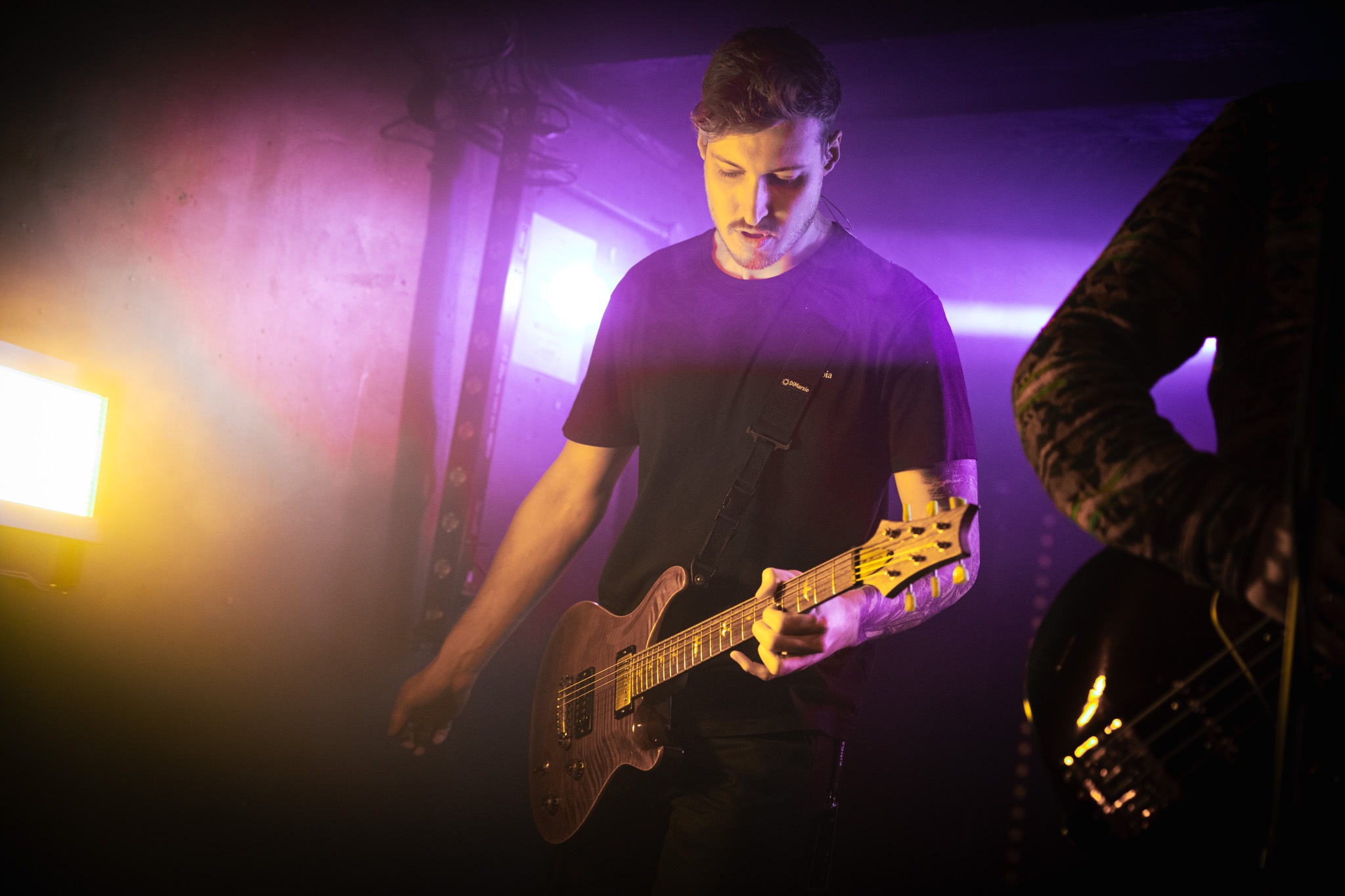 One somewhat haphazard change-over later, ELWOOD STRAY joined the stage and turned the wick up even higher. The German quartet from Essen brought hardcore beats and head-bopping verses that saw the crowd return polite applause, and even a pushpit or two. Frontman, Maik called for more, but the Leeds crowd wasn’t so forthcoming. With screams that could bring down a house, cleans you’d tell your mother about and riffs worth a mosh, we were expecting more from those in attendance. The set powered on through their roster of tracks otherwise without issue – we’d definitely see ELWOOD STRAY again given the chance, and they’ll be forming part of our personal playlists for months to come.
