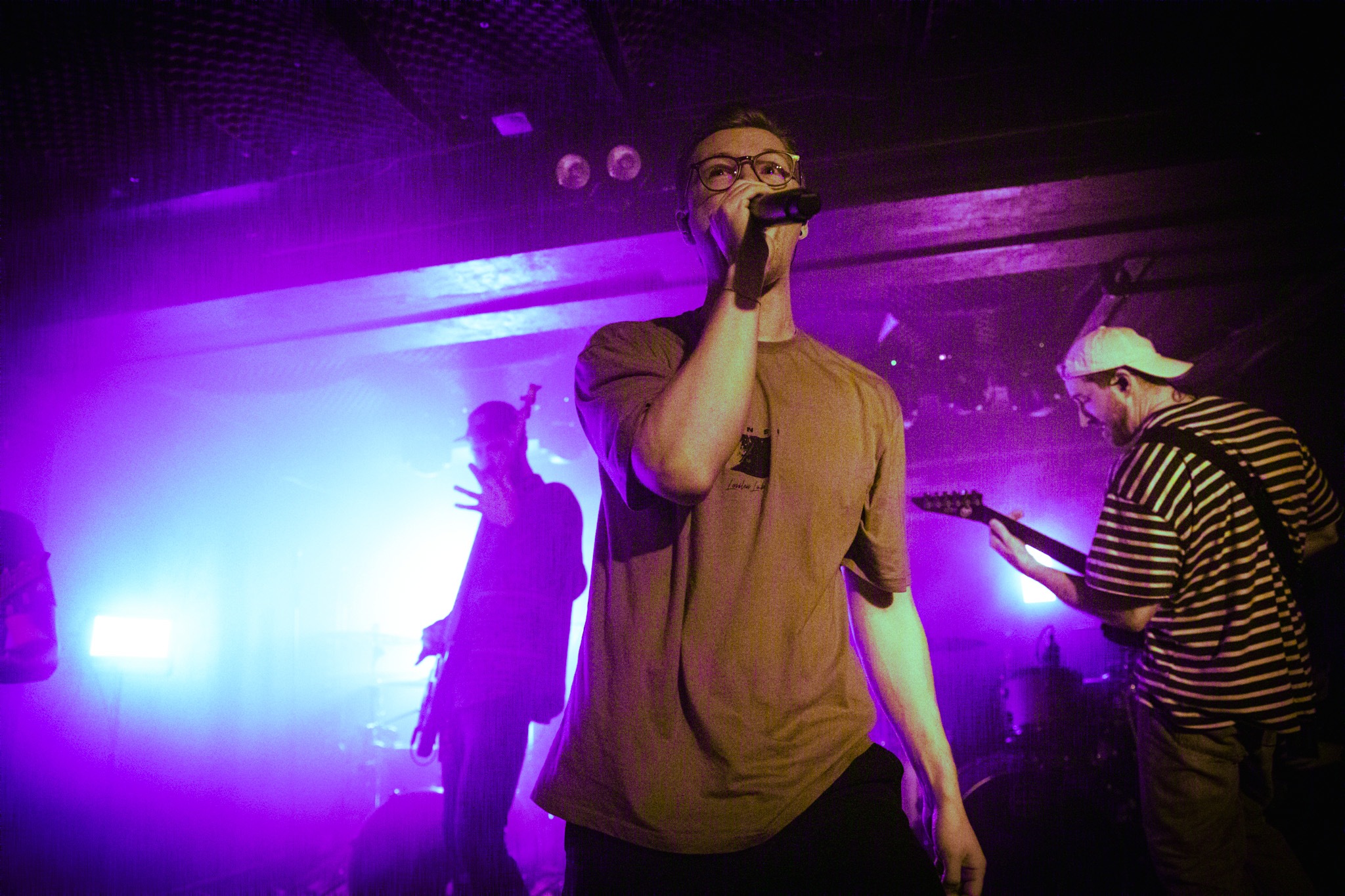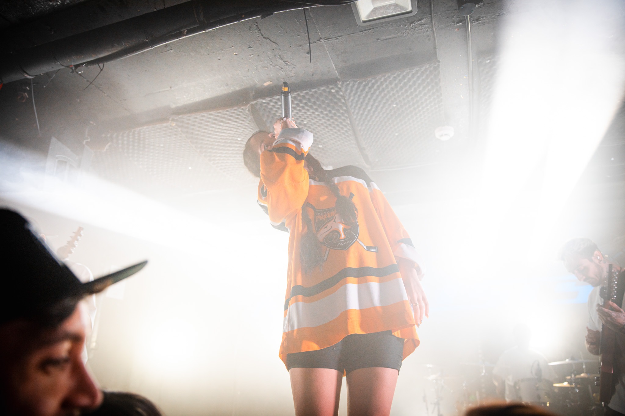 It was disconcerting to arrive to The Key Club ahead of time and being able to get to the front – we half wondered whether we’d got the wrong date. It was at that point we saw Camille Contreras of NOVELISTS exit the venue and pick up her UberEats. Definitely the right place.