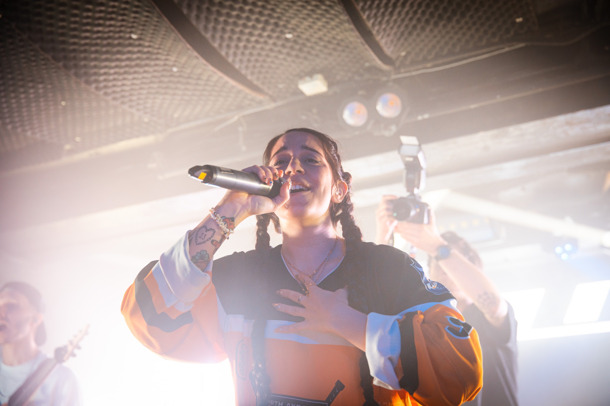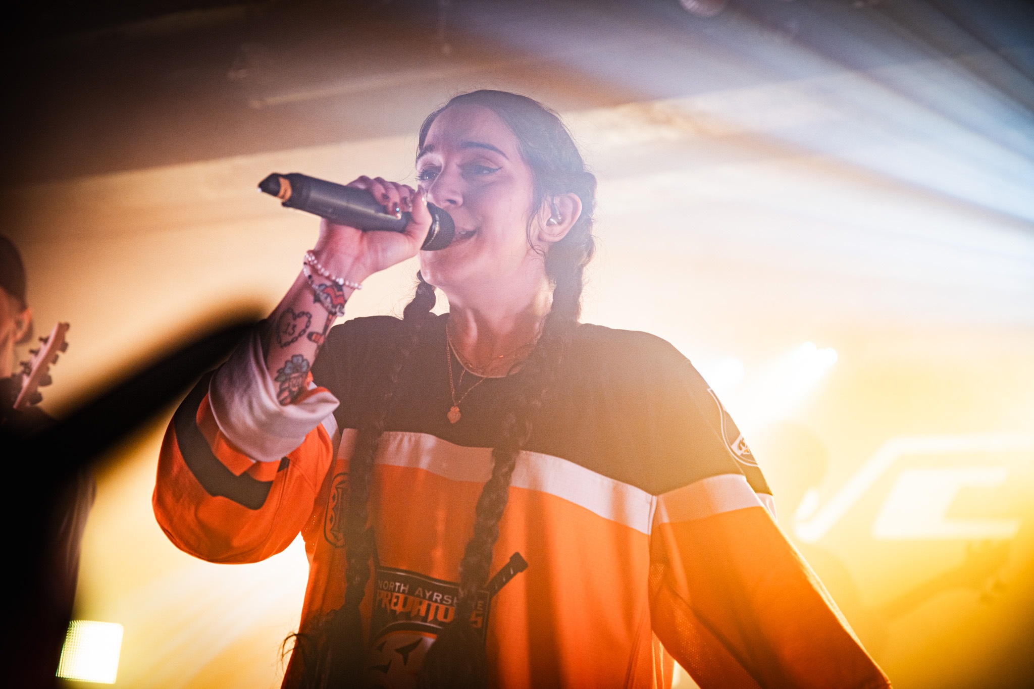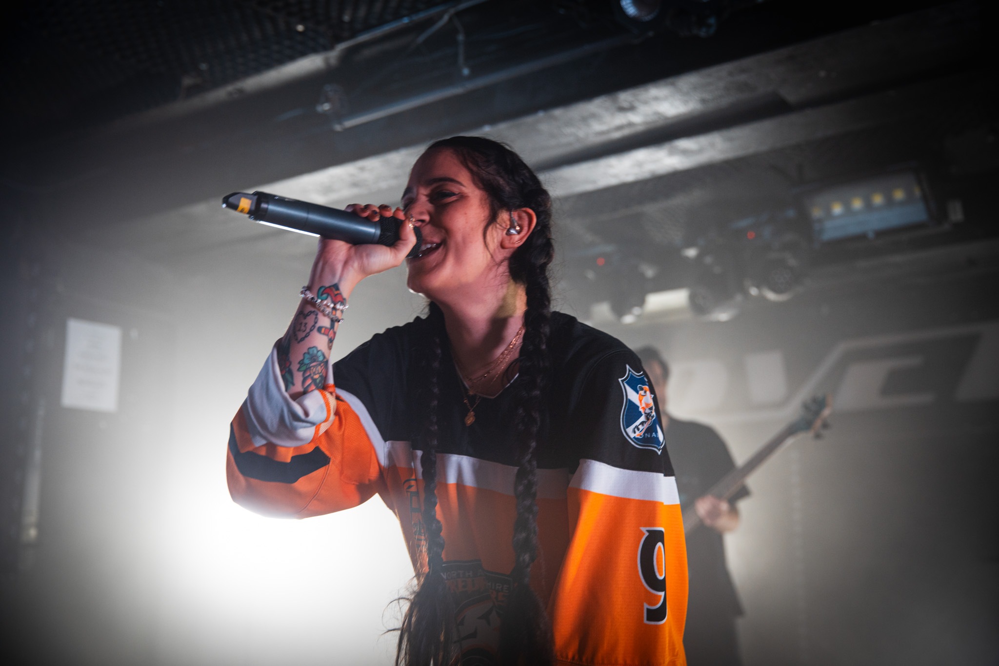 The band’s huge lighting rig atop the stage brought the band out to their sophomore single of this line-up, Prisoner; a statement of true intent. The track is a melting pot with riffs, breakdown call-outs, dancy-cleans and shreddy guitar solos – it honestly set the scene for the entire performance. It’s true, there’s a conversation to be had about how the older songs transfer into Camille’s range, but it’s only complimentary. Her grasp over the old material was masterful; when the band brought out A Bitter End after however long, it felt… normal. This, plus her own credits on C’est La Vie and Turn It Up speak to the versatility of this girl’s voice.