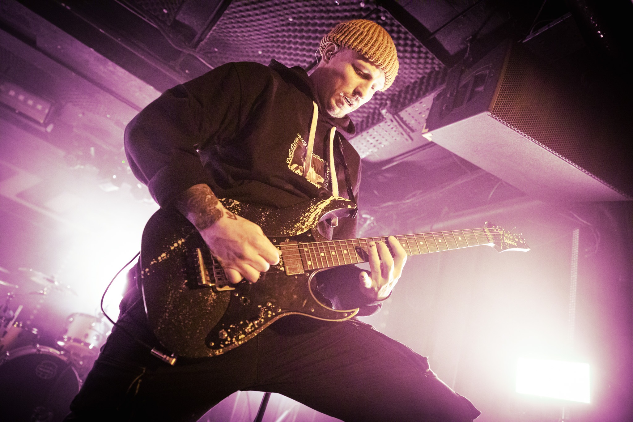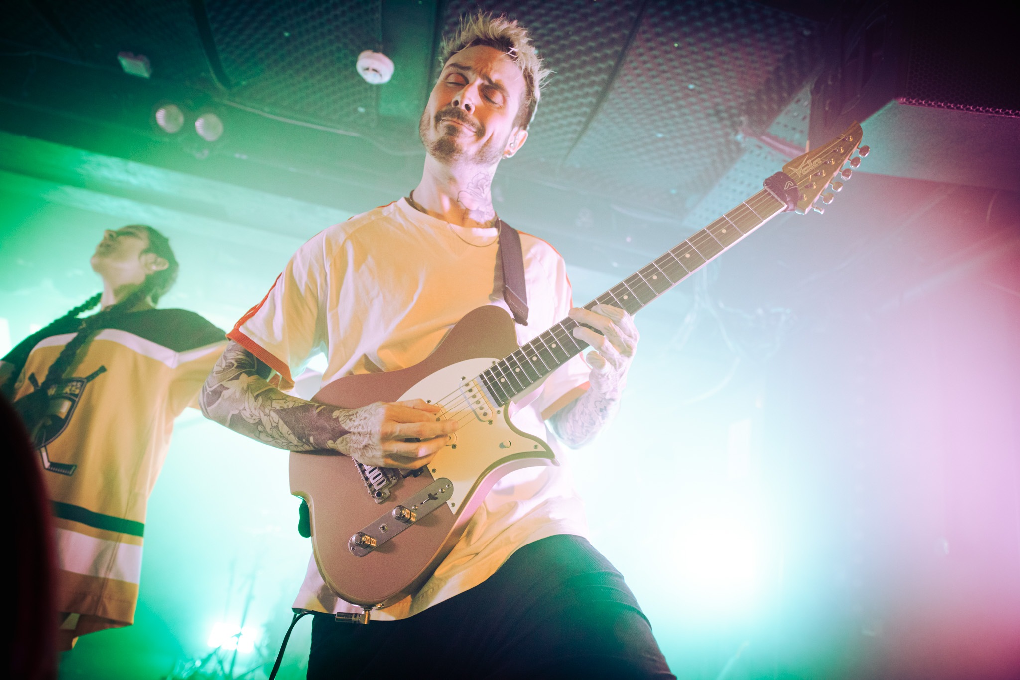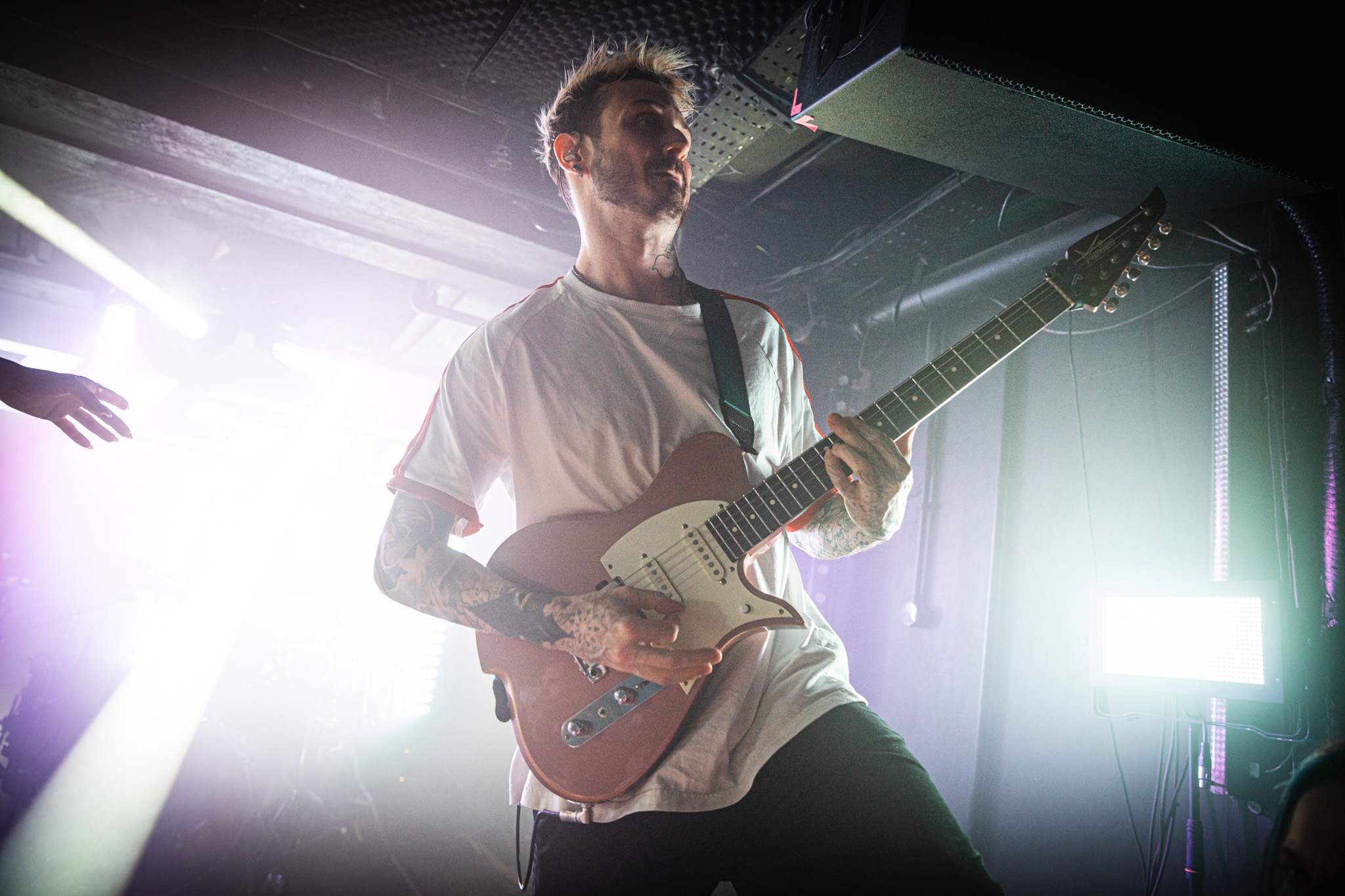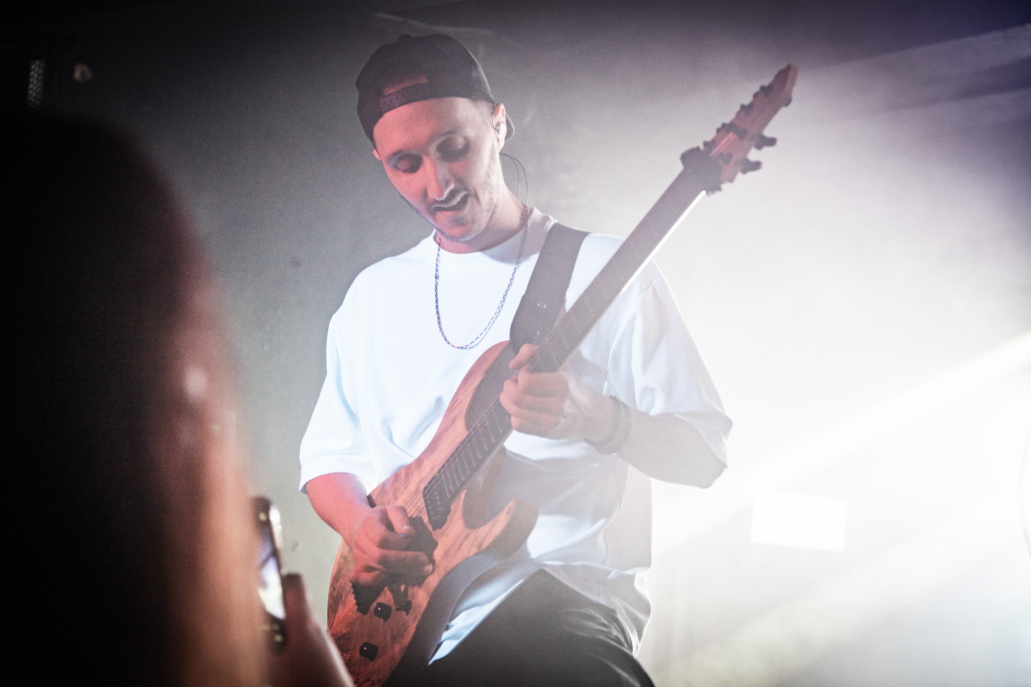 Hailing from Paris, France – the five piece appeared amidst a moody voice-over. A newcomer to UK shores, the pop djent vibes were, quite frankly, outstanding. We were treated to down-tuned chugs and virtuosic clean vocals that had no business in transforming into visceral screams at the tip of a hat. A popular cover of Smells Like Teen Spirit has the whole room bouncing around, and going back over their back catalogue after the fact – every song feels familiar enough from the night prior; they’re undoubtedly VERY catchy. ASHEN are back in the UK this summer at Radar Festival – definitely check them out.