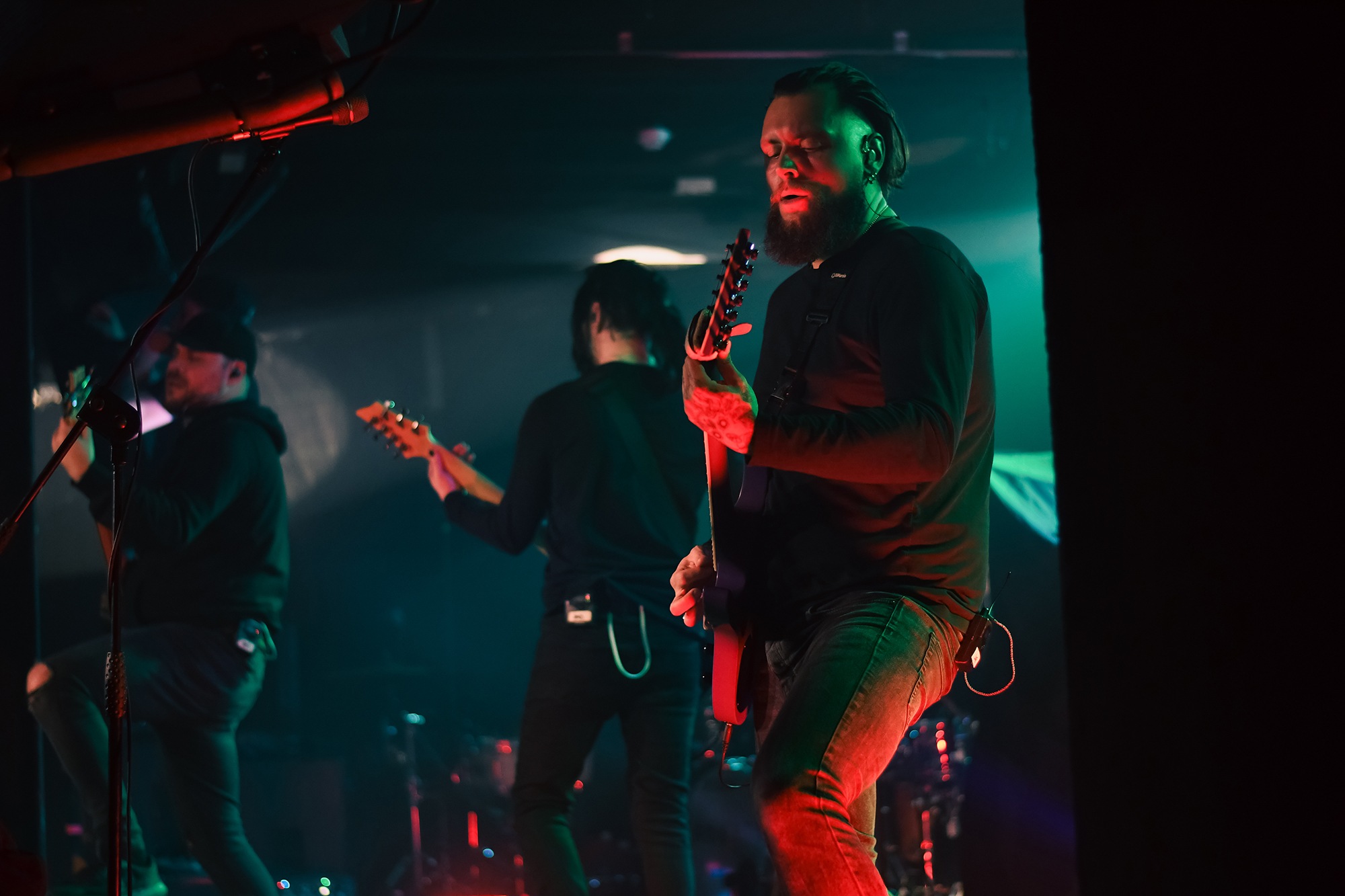 First to the plate are London’s DEFECTS, bringing their modern metal with bucketloads of energy, bursting onto the stage and getting into the crowds’ faces to get everyone amped up from the off. Their beefy chugging riffs hit you right in the face with technicality and girth, accompanied aptly by vocalist Tony Maue with his powerful screams and arena ready hooks. They look to incite the room at frequent intervals, with phone lights up, clap alongs and headbanging. Although the room may be a bit cold in reception to start, they soon warm up to the act. Guitarist Luke Genders drops mind bending solos throughout the set, including one in the middle of a mosh pit for set closer Recurring, with Maue also coming down to the barrier to sing the closing lines up close and personal. The pace has well and truly been set by DEFECTS.