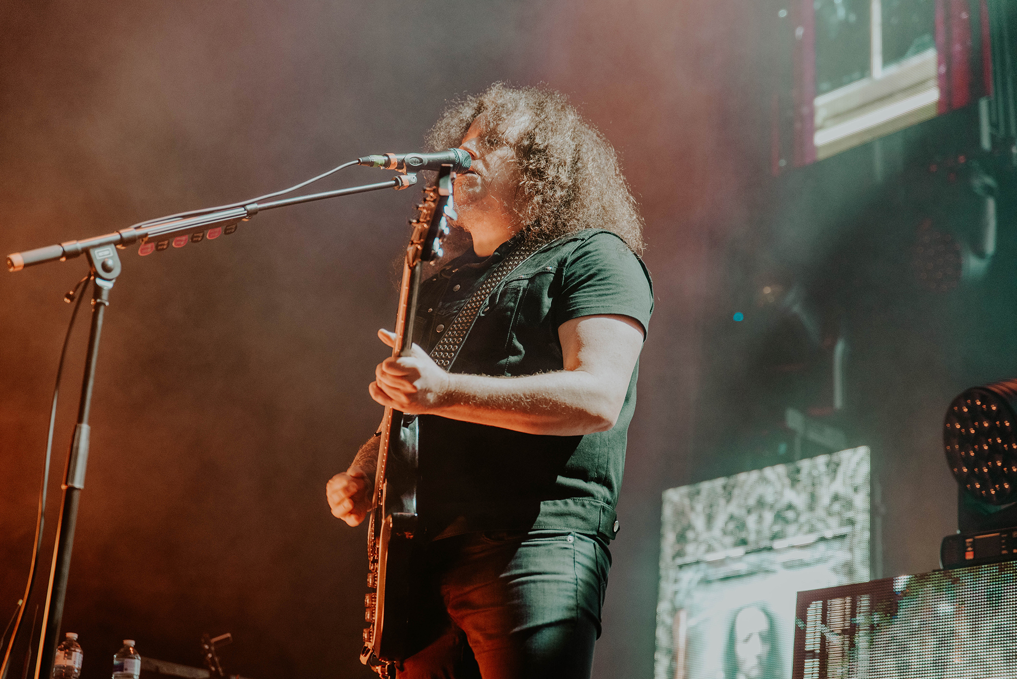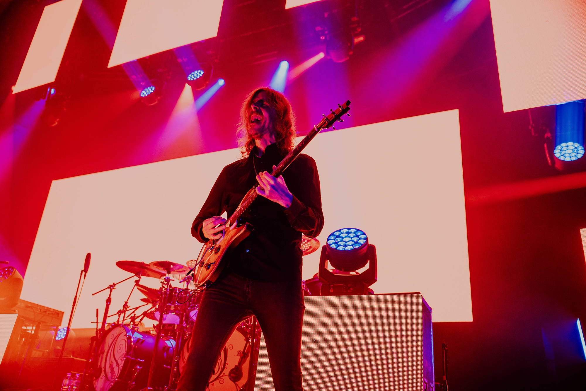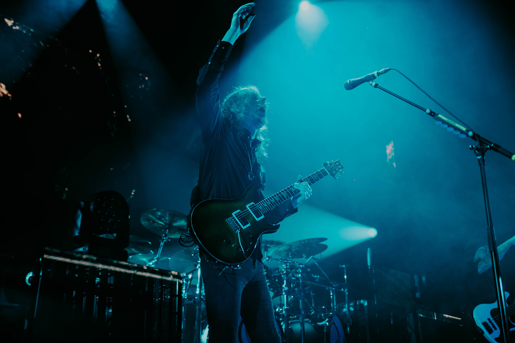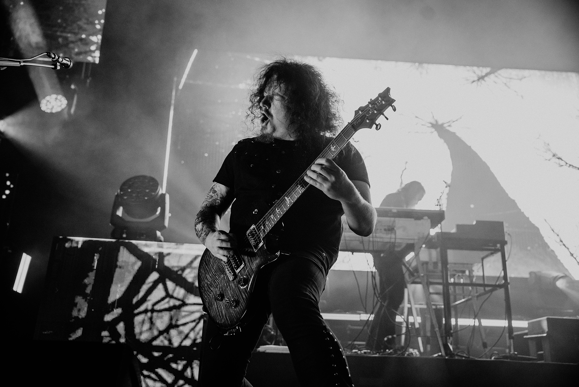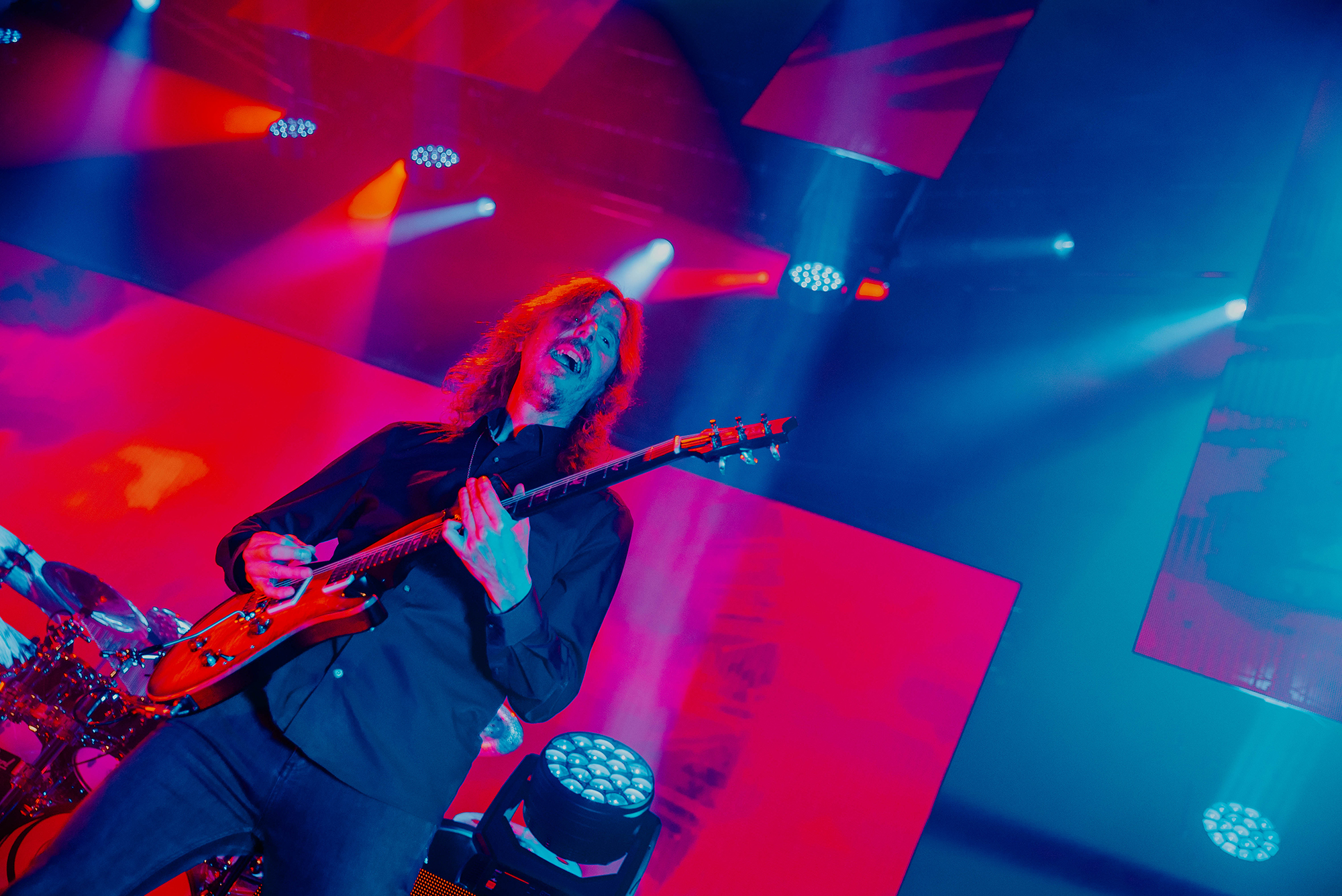 The dimmed stage and the five silhouettes on it are suddenly illuminated by the ‘frame’ of disjointed screens that surrounds them, projecting artwork from The Last Will and Testament, as its opener §1 echoes through the North London venue. The shiver-inducing melodies and a growling Mikael Åkerfeldt are here to announce OPETH in all their glory. A double of fan-favourite epics Master’s Apprentices and The Leper Affinity follows to cement this impression, serving more head-ripping riffs in two songs than most bands write in an entire career.