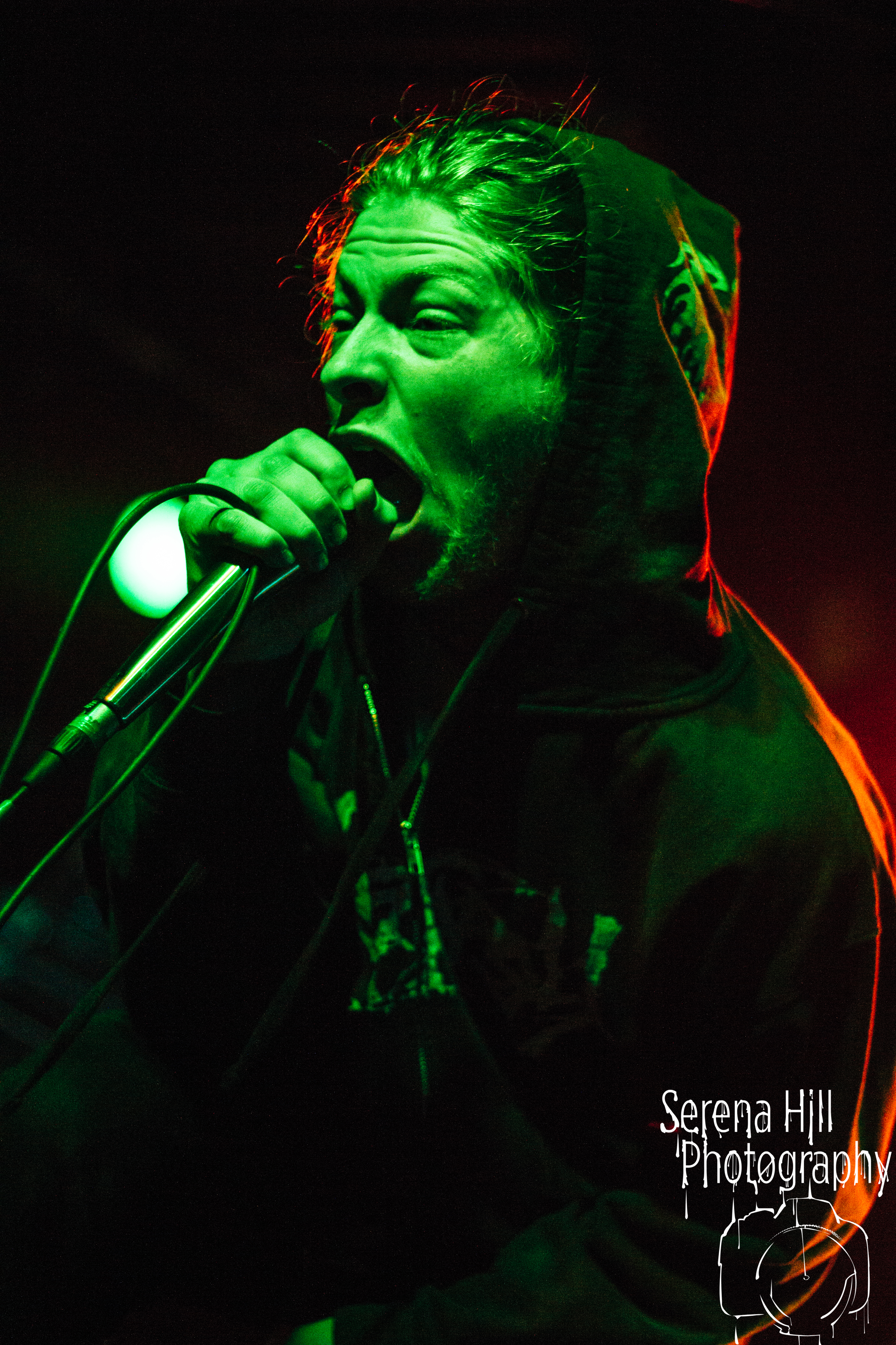Tonight’s venue lives up to its morose moniker. With its bar staff decked out in doctor and nurse garbs and the half-empty, dank and uber-draughty hall sprawled out before them, it’s up to Minneapolis’ GRAVESLAVE to dish up the right aural prescription to this smattering of nonchalant onlookers. Thankfully, what these guys lack in overall numbers, they certainly make up for in sheer resonance. Drawing from influences across the extreme metal spectrum, the ‘Slave sound is dispensed at breakneck speed underpinned by relentless aggression. Delivering the bulk of guttural growls with his head lurched firmly towards the concrete, the nauseating filth of Slit Throats and Garrote encourages vocalist Don (aka Doombringer) to commence raging about the stage – at one point his tenacious fervour almost causing him to foam at the mouth like some form of rabid beast. It’s one hell of a Birmingham live debut.
