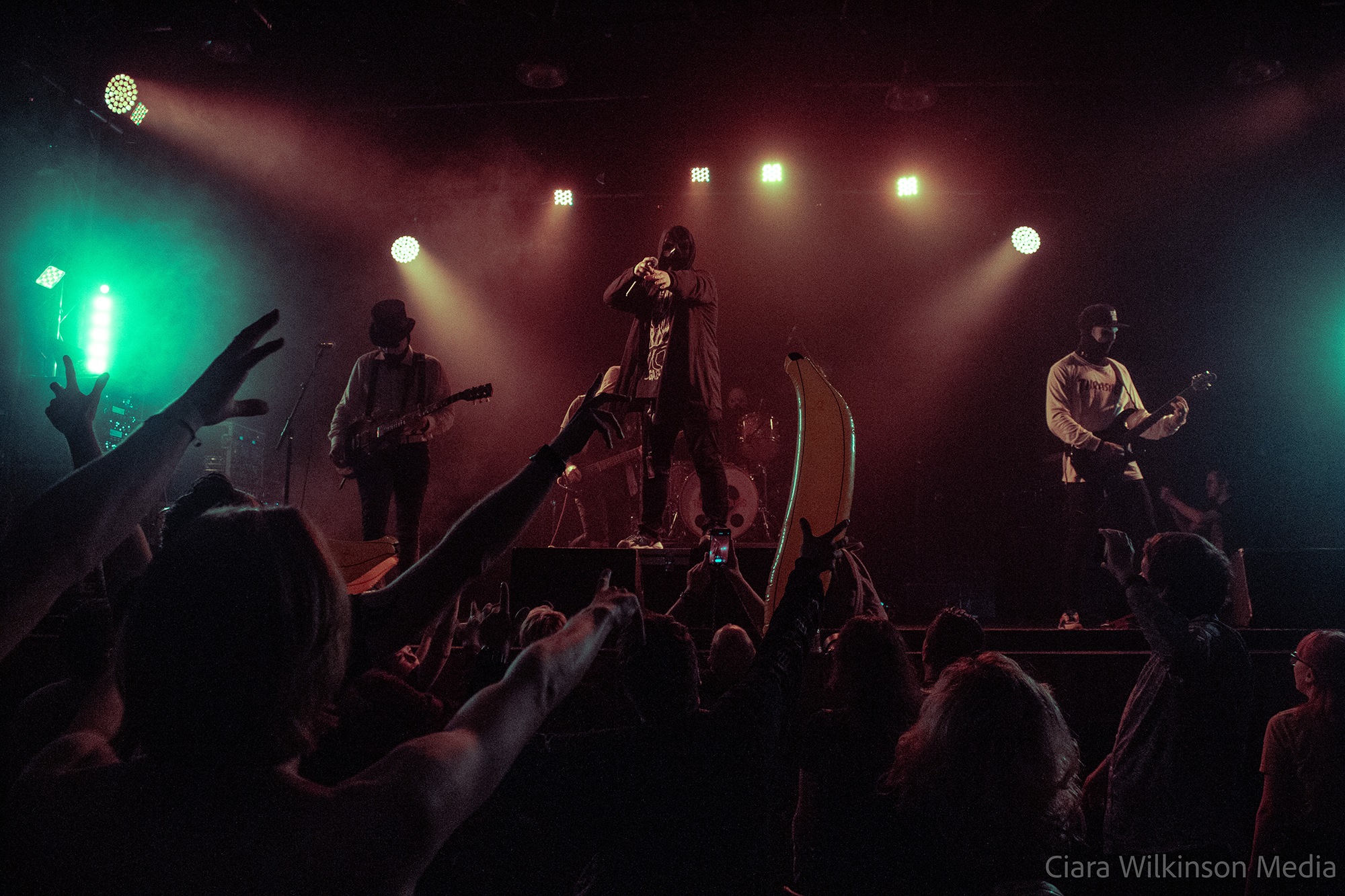 They’re followed by CHUGGABOOM, the self-proclaimed purveyors of ‘awesomecore’. The anonymous five-piece play a particularly juvenile brand of tongue-in-cheek metal and start things off by throwing inflatable bananas into the crowd. The fan reaction is instant but while some folks absolutely adore them, they’re easily the most divisive act on the bill. Their misguided cover of Bohemian Rhapsody would make Wayne and Garth vomit in the Mirthmobile and all their original material is forgettable. The clean vocals are annoyingly nasal and more suited to pop-punk and while they’ve clearly got a sense of humour, it doesn’t transfer well when most of the lyrics are unintelligible. Judging by the response they get though they clearly work for some people.