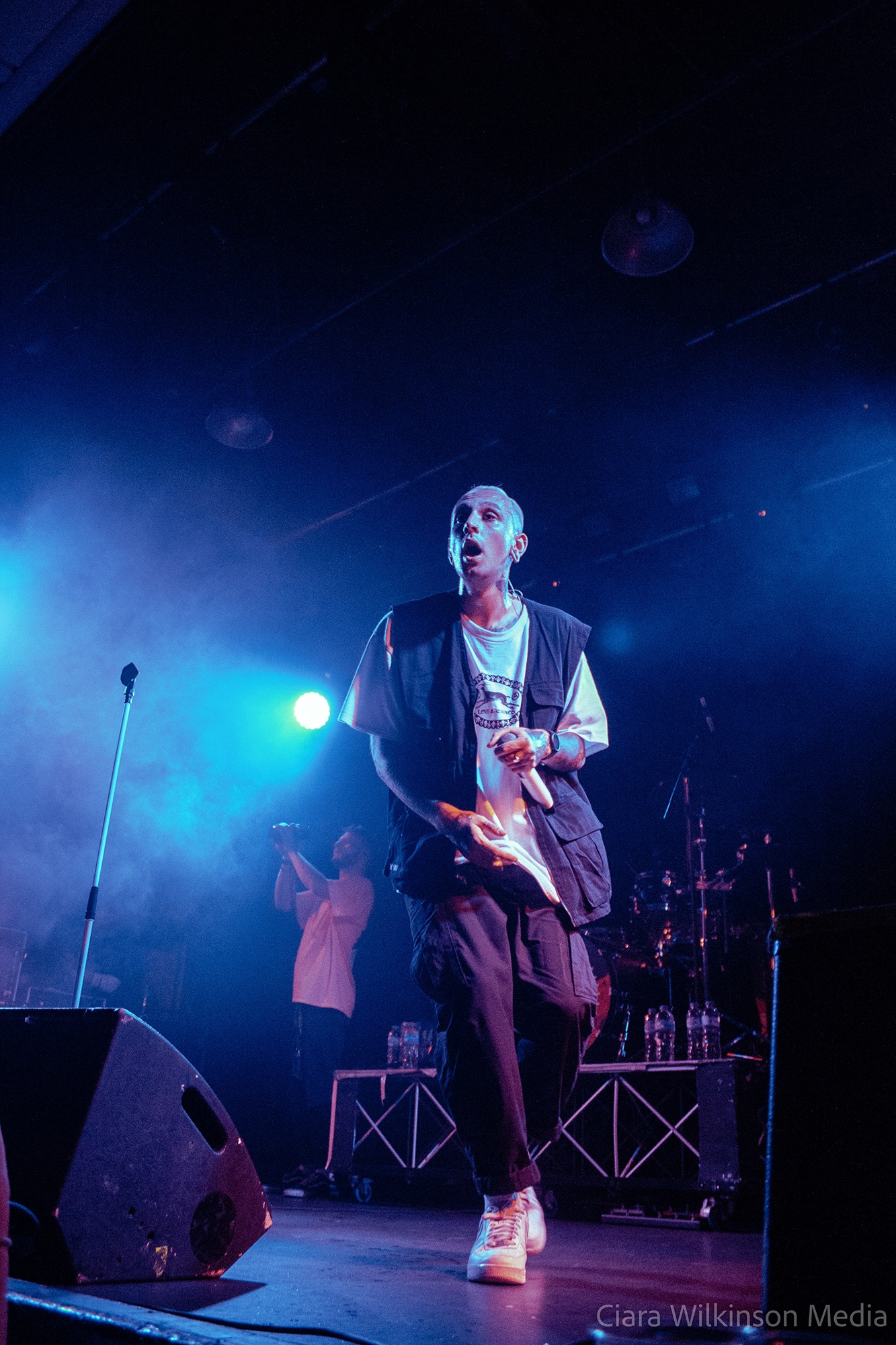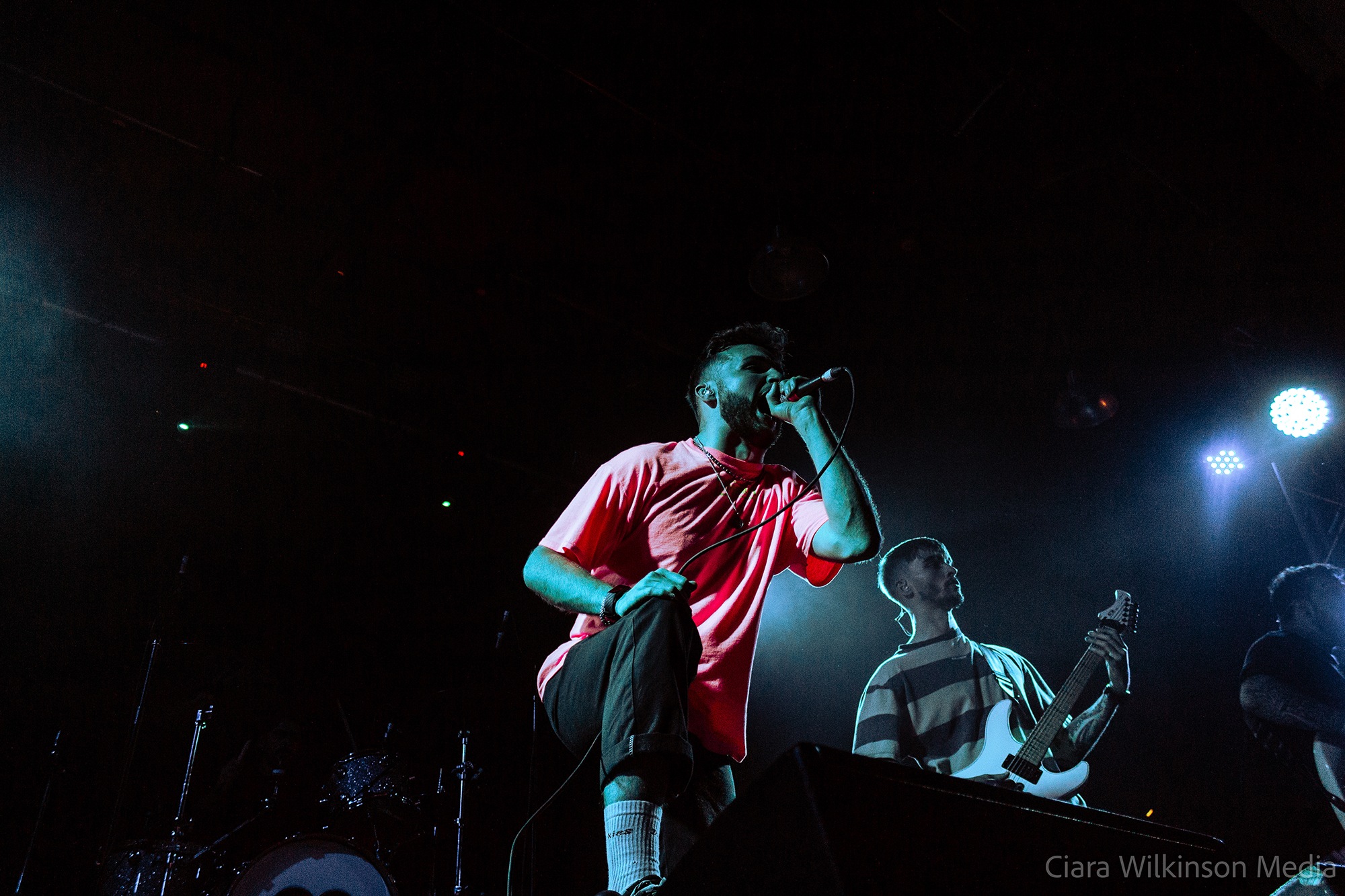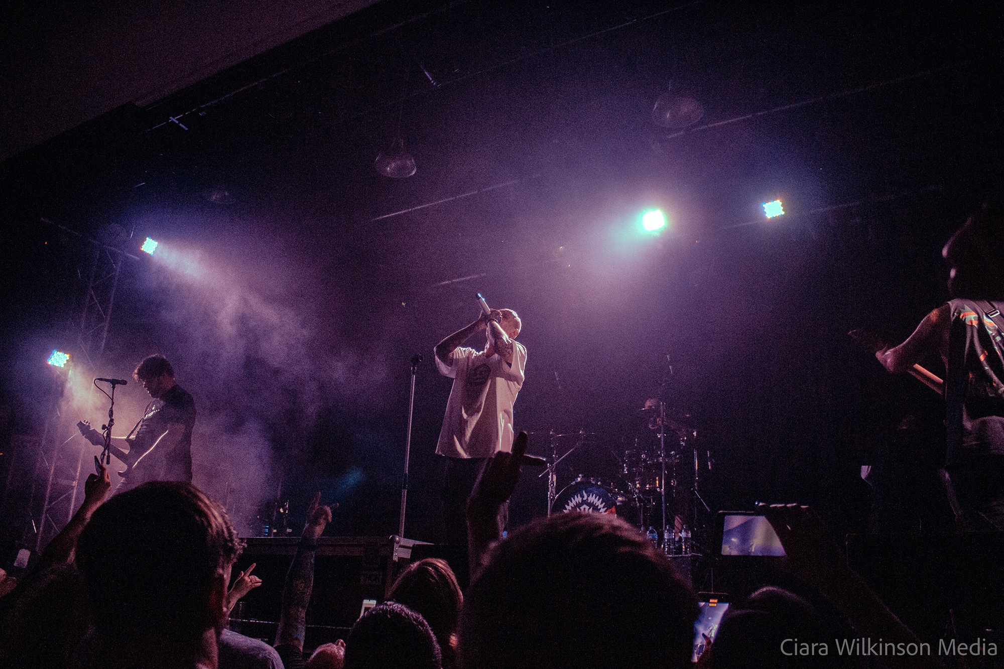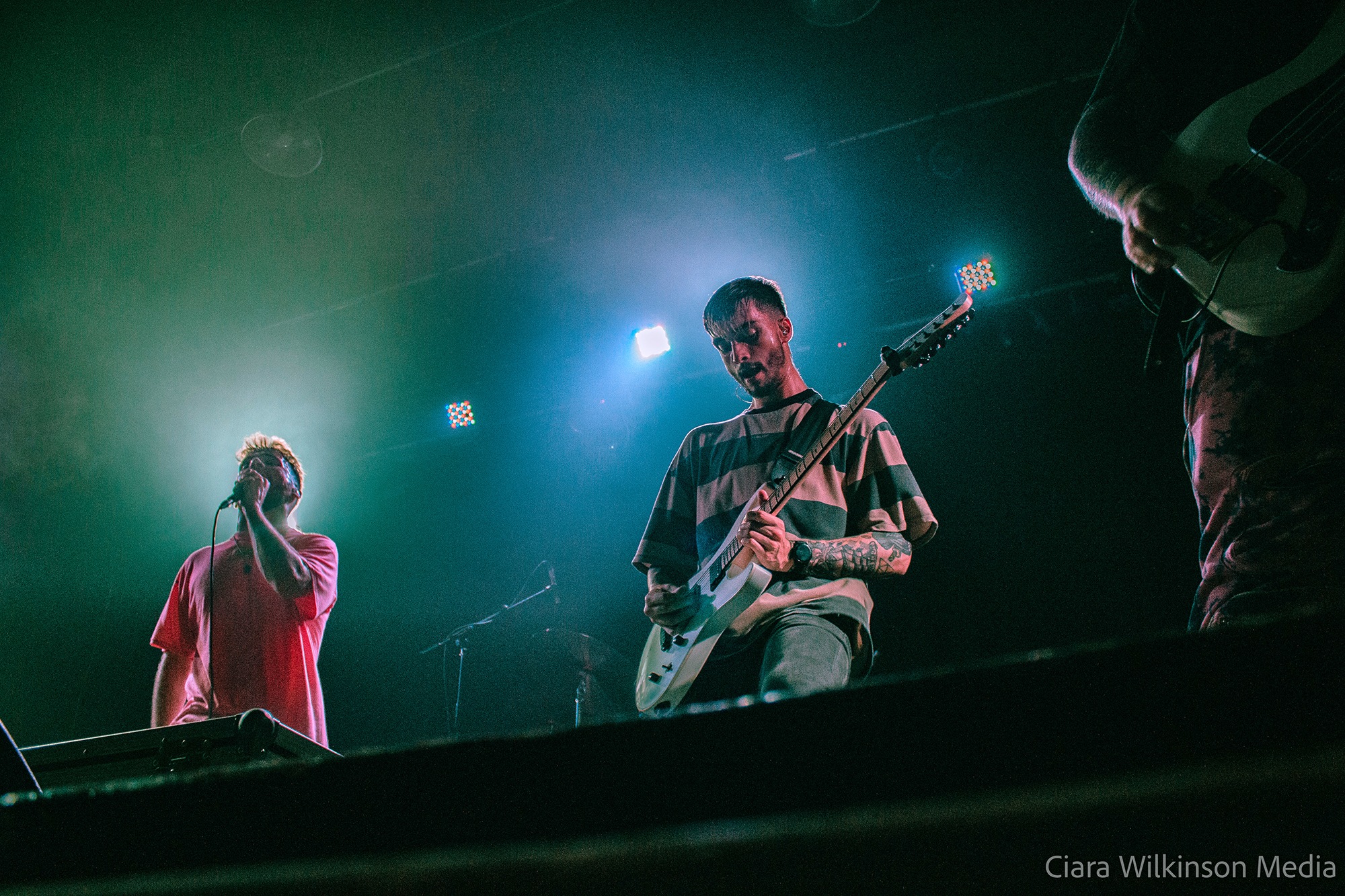 Grammarly-averse five-piece THECITYISOURS on the other hand are sensational. They’re committing some very serious crimes against trousers and guitarist Mikey Page sounds like he’s struggling with the backing vocals slightly, but otherwise they’re on fire. Noticeably heavier live than on record, they power through one crushing metalcore bruiser after another while a massive pit takes up half the floor space. There’s very little banter, but there’s a professionalism to these lads that makes them resemble superstars-in-waiting. DEFENCES vocalist Cherry Duesbury joins them on the mic for a particularly cool moment and when singer Oli Duncanson stage dives at the finale, he may as well have thrown a gauntlet down.
