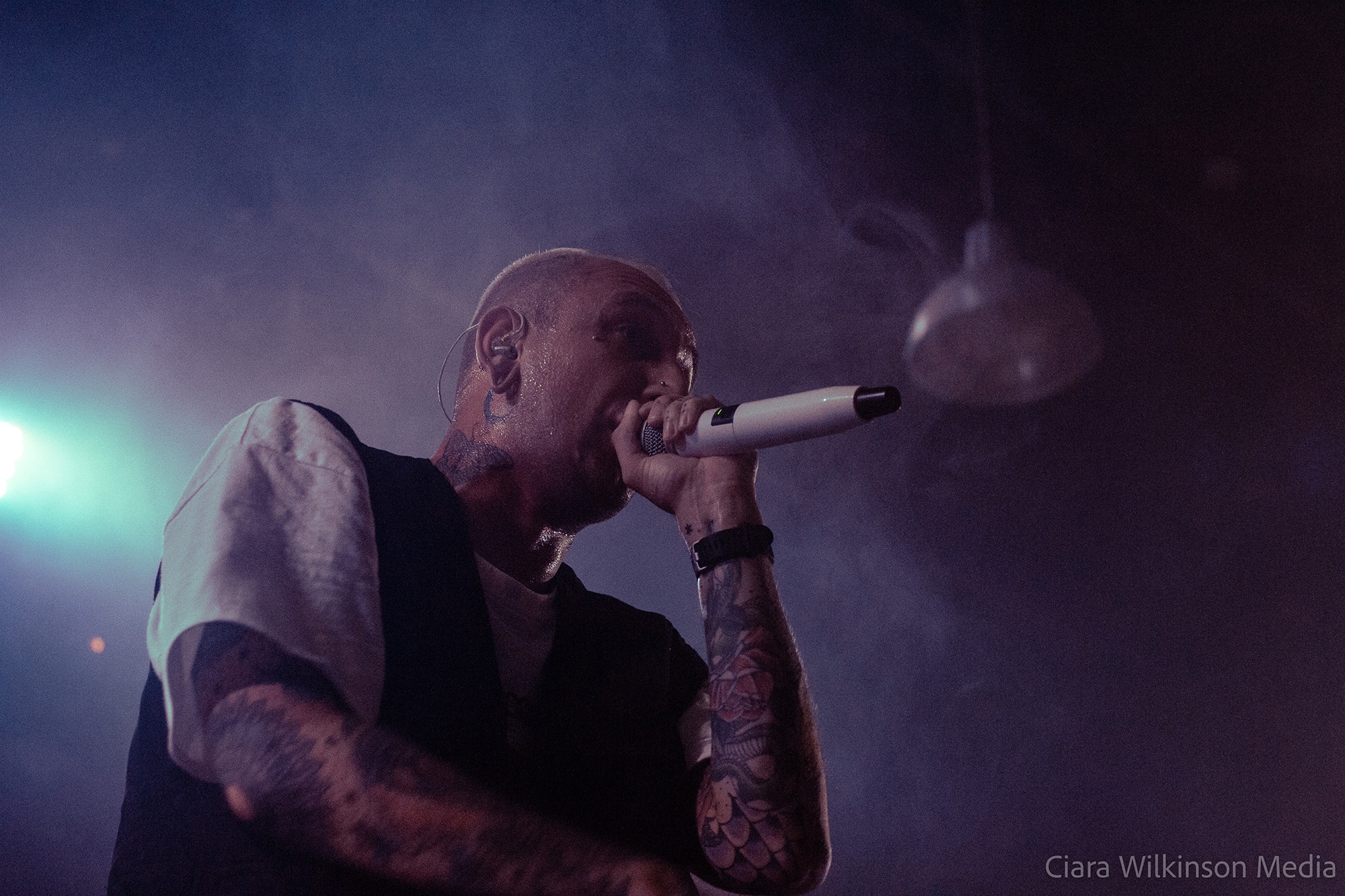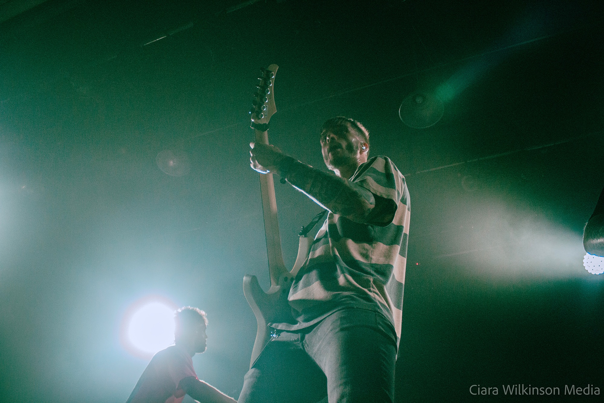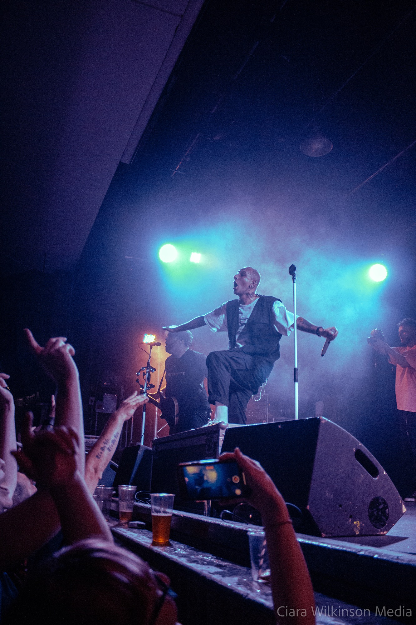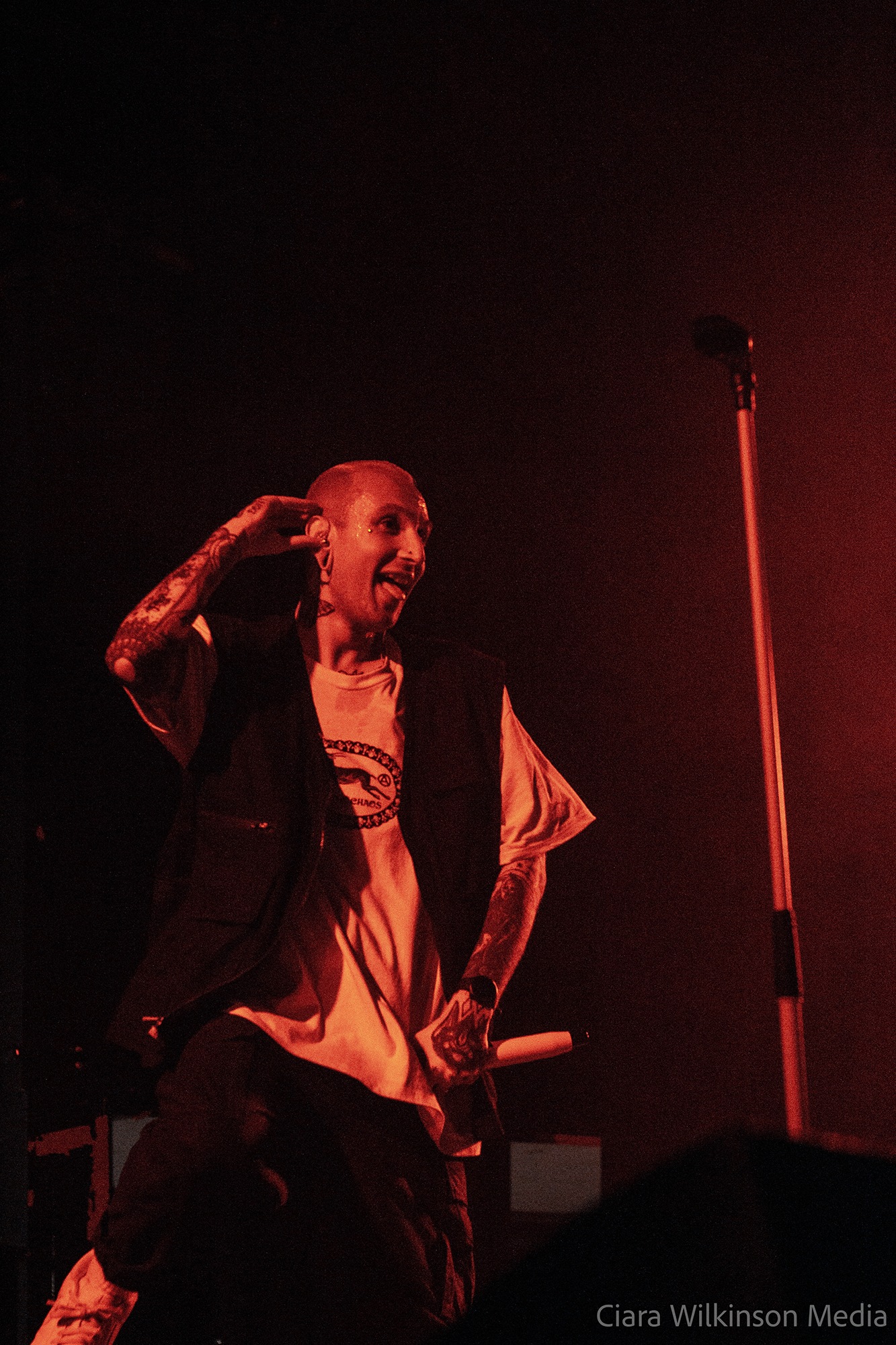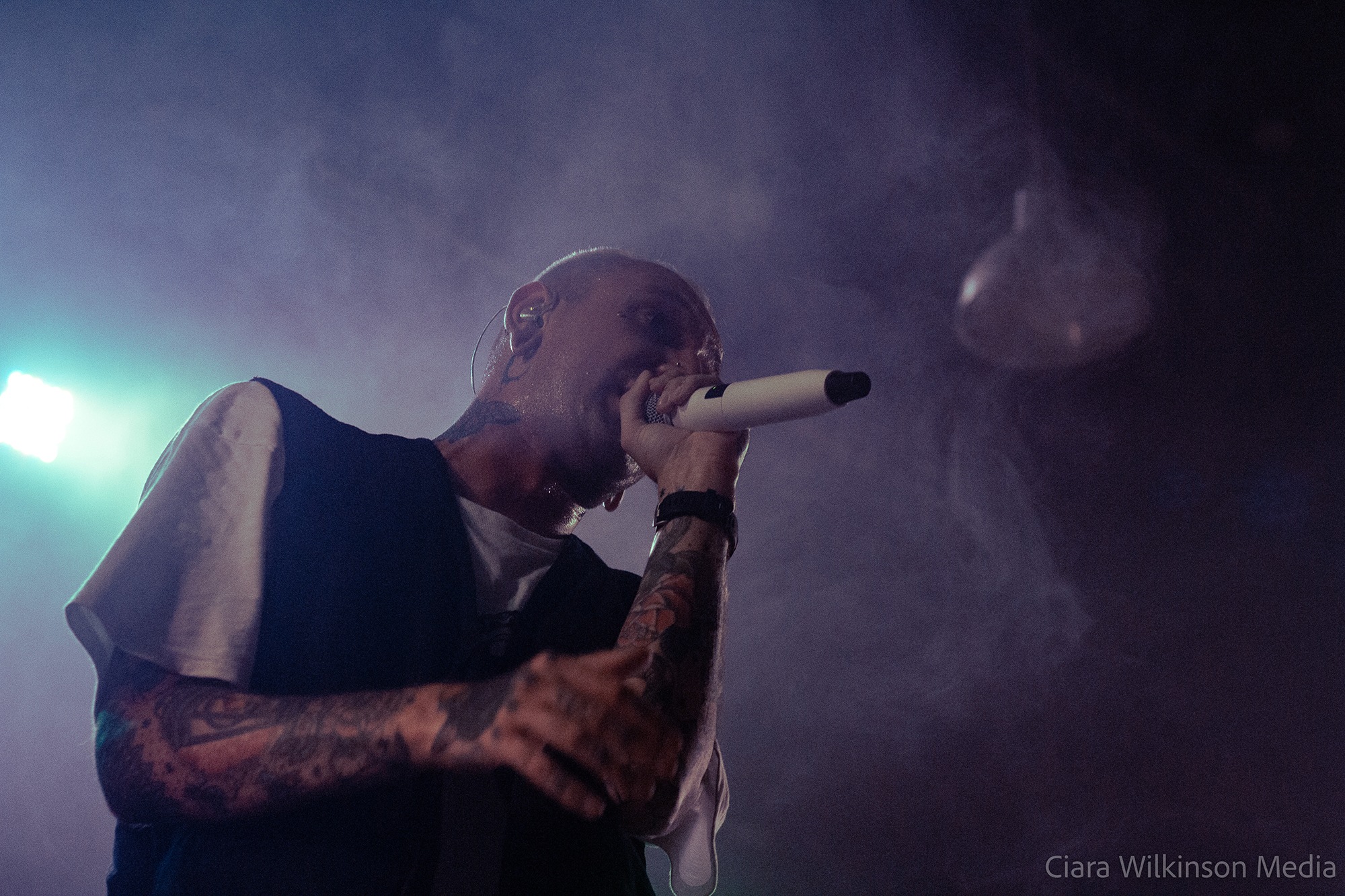Grammarly-averse five-piece THECITYISOURS on the other hand are sensational. They’re committing some very serious crimes against trousers and guitarist Mikey Page sounds like he’s struggling with the backing vocals slightly, but otherwise they’re on fire. Noticeably heavier live than on record, they power through one crushing metalcore bruiser after another while a massive pit takes up half the floor space. There’s very little banter, but there’s a professionalism to these lads that makes them resemble superstars-in-waiting. DEFENCES vocalist Cherry Duesbury joins them on the mic for a particularly cool moment and when singer Oli Duncanson stage dives at the finale, he may as well have thrown a gauntlet down.
