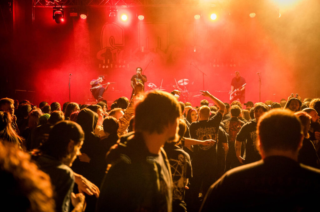Here, playing to their strengths as metal ambassadors to Switzerland, neutrality does not manifest within PALEFACE operation. The band indulges in this greatly as an integral part of their design, spinning explosive messages of pain and defiance into their harsh sound. Seemingly, they’ve cracked the code on killing with kindness, as the crowd feasts on every fast-spoken syllable. In deep-set rhythmic verses, vocalist Zelli carves deeply into tracks with an unmatched camaraderie, a mesh-clad maestro to the greebo masses. Lingering on every resilient message, they are a testament to getting through every bitter day, as these words – once written in private – are now sensationally realised in front of two thousand people.