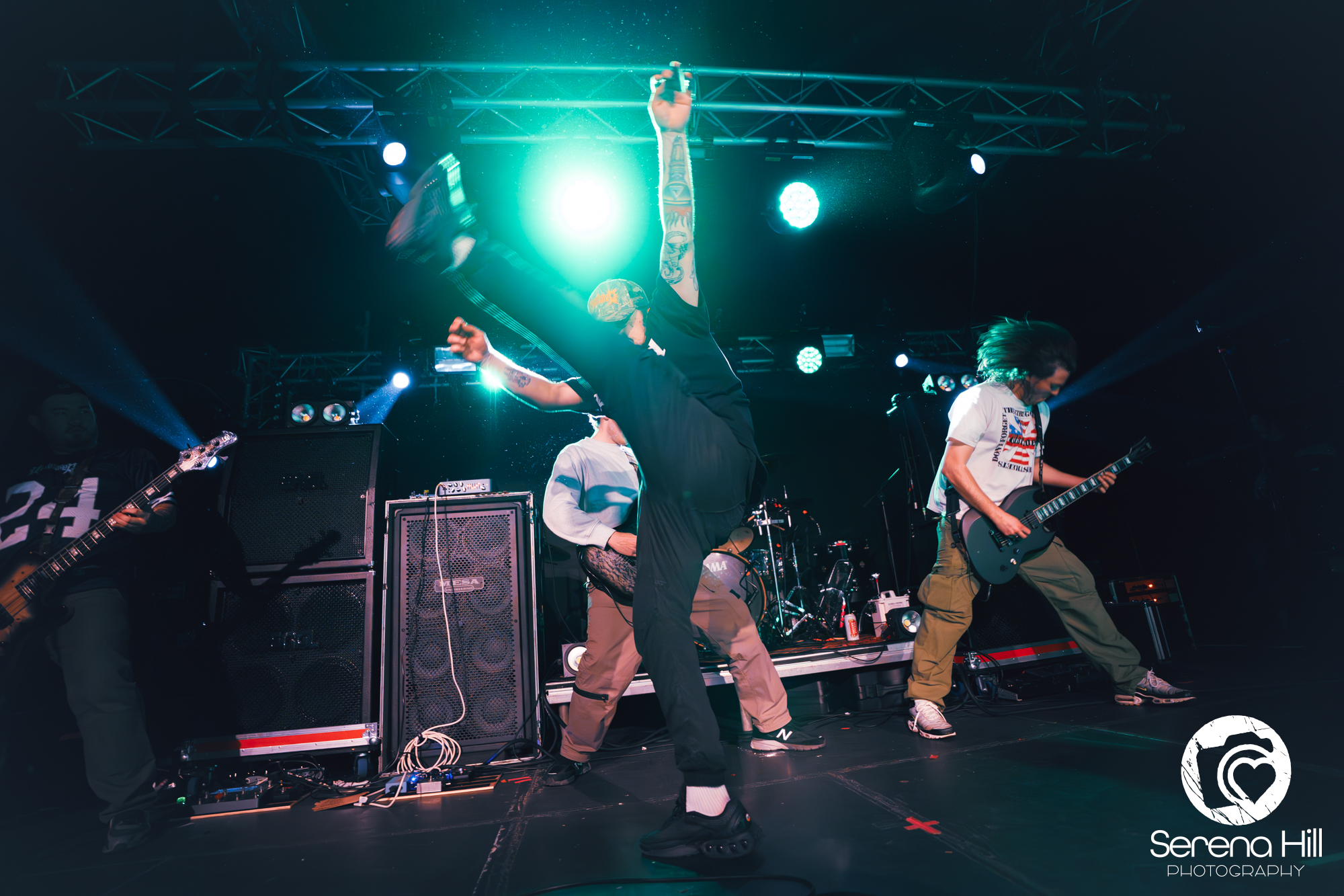 UK hardcore band DESOLATED made sure to get the party started. Before the first song had even started and the band were just making their entrance to the stage, the crowd split in half horizontally so the front and the back were no longer joined. The band dropped into their track Numb and suddenly the two stepping and leg kicking all started. Now to be real, there were approximately a maximum of 10 people participating in these pits, but they sure made up for it with their enthusiasm. The band seemed to come prepared for their show, bringing their friend on the tour whose role was purely to get the pit going. He put in 100% effort, throwing himself every which way, even bringing a few cartwheels to the floor.