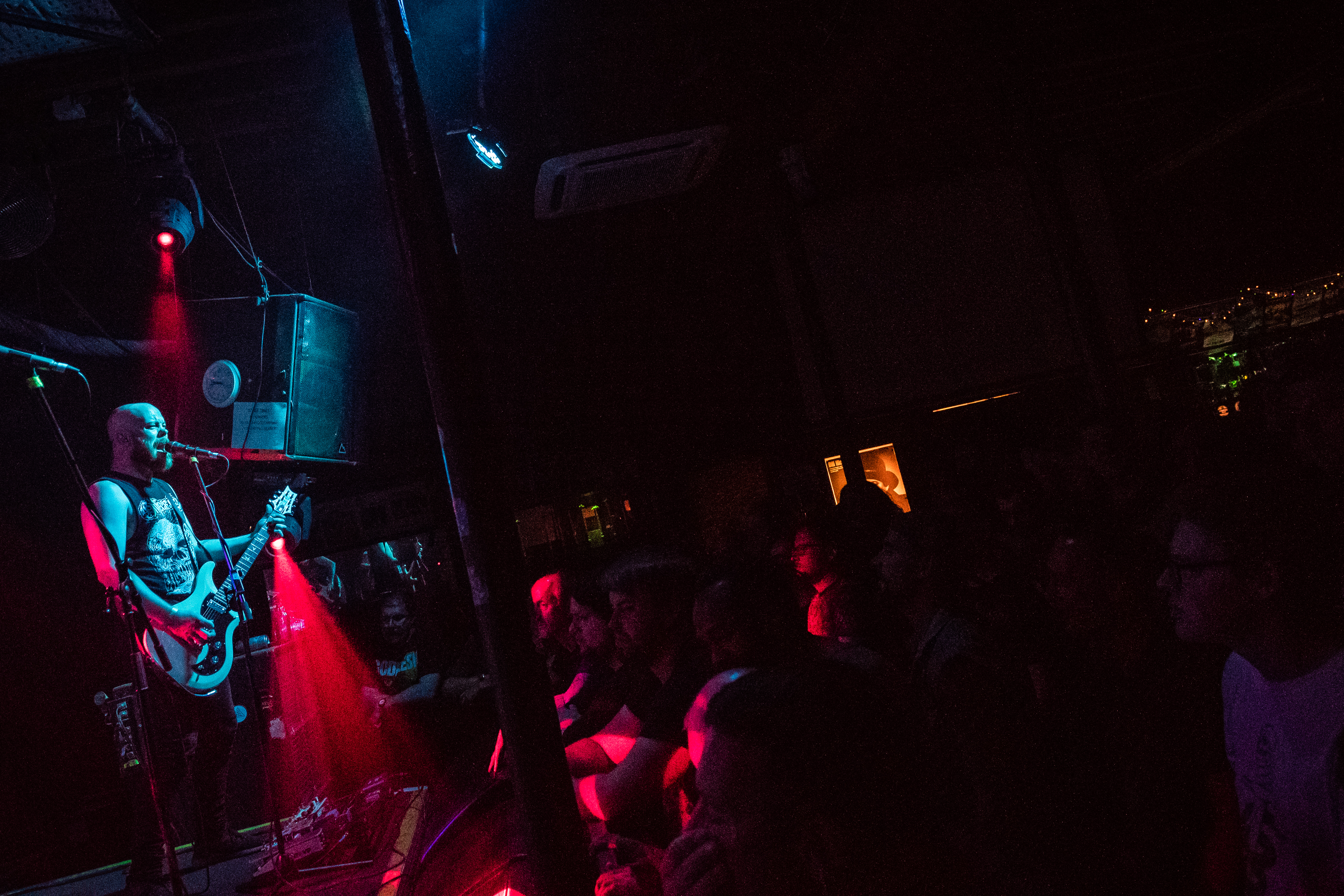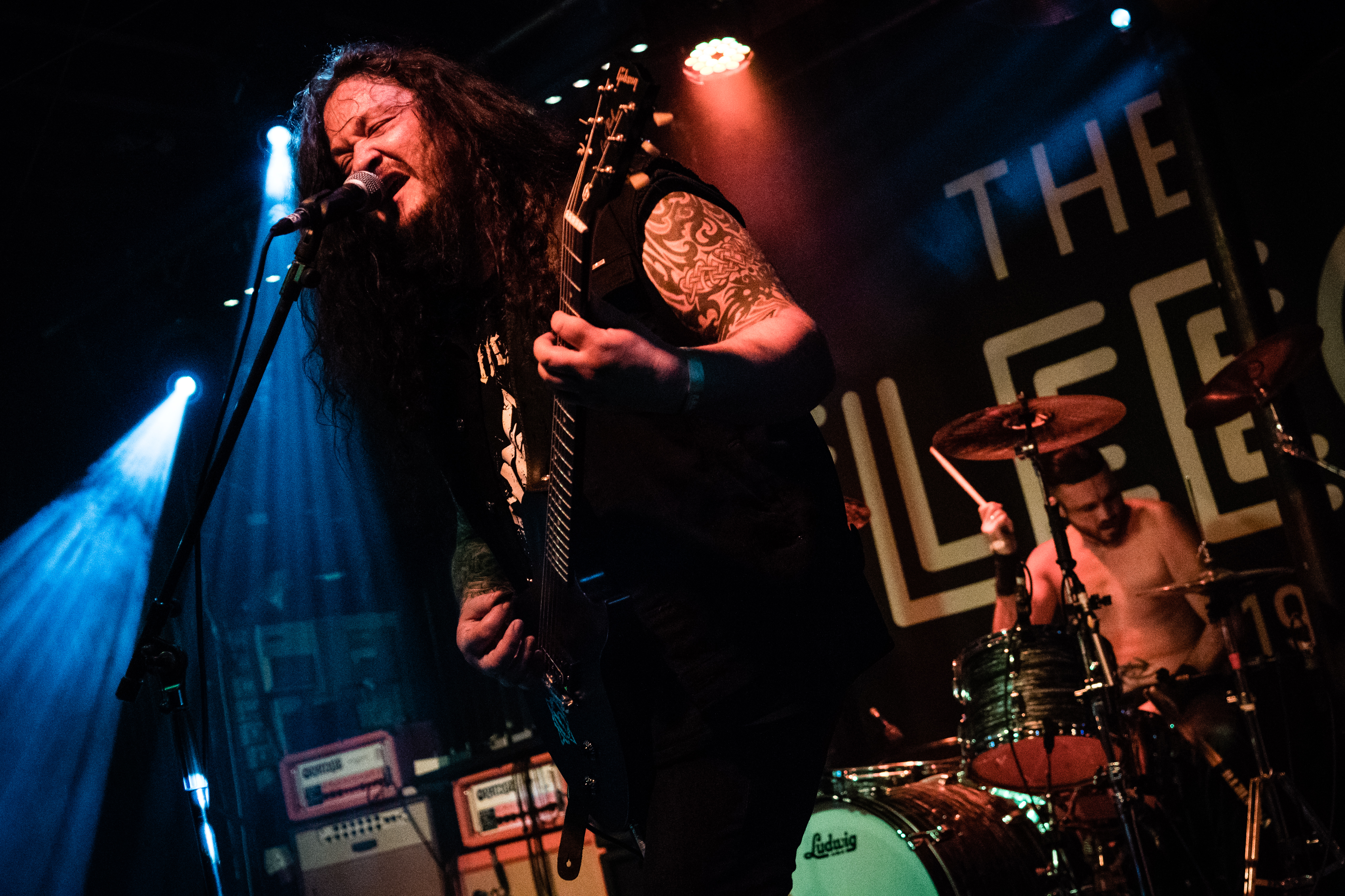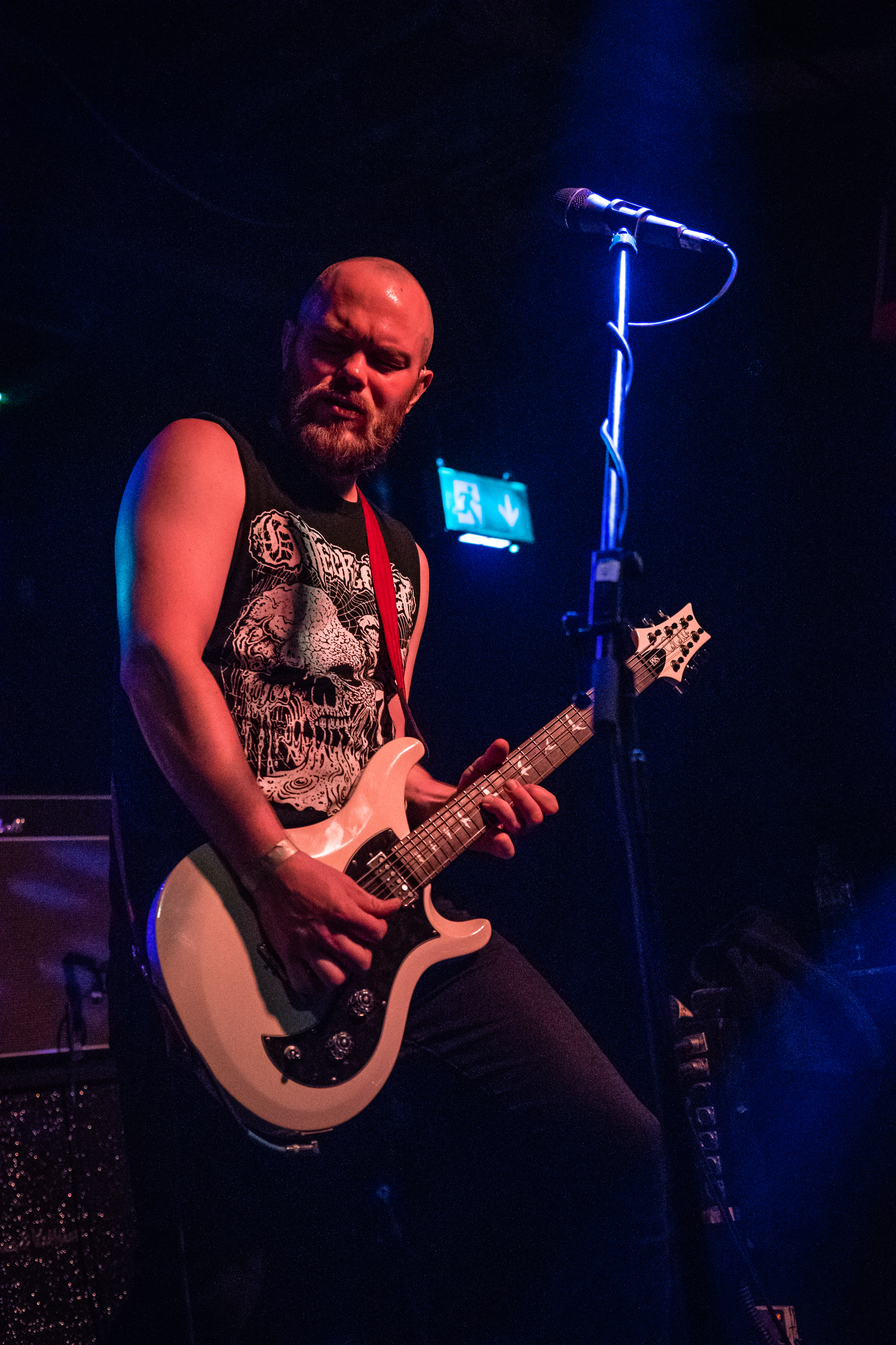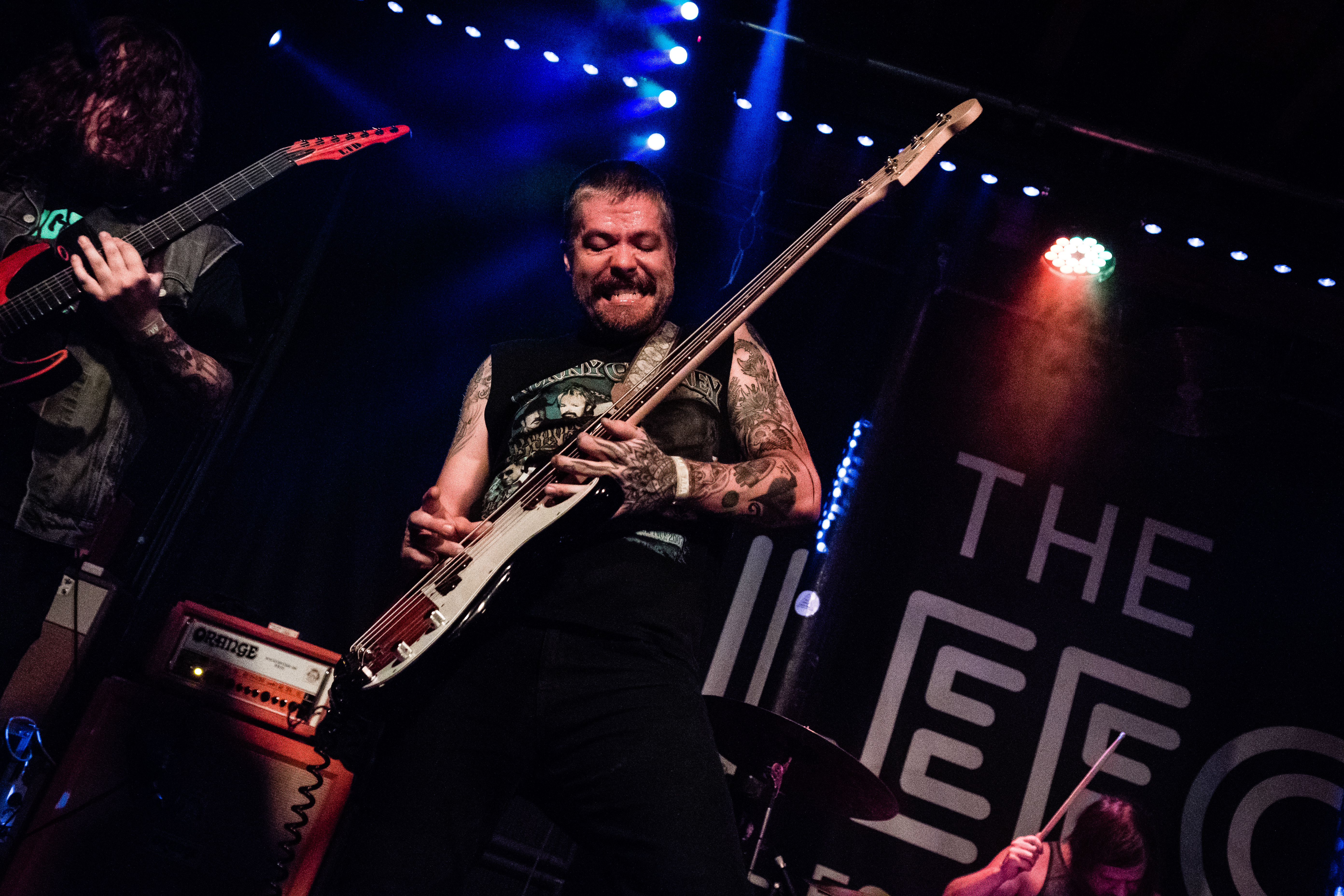 Is there anything worse than technical issues? It’s never a nice thing for a band to experience them, especially before they’ve played a note, but PALLBEARER more than make up for it once mic packs are sorted and frequencies fixed. From the moment that Watcher in the Dark begins its slow, methodical build up to the crushing riffs and soundscapes we all know and love, The Fleece falls under the spell of one of the greatest bands to have broken through in the last few years, and one that will get even bigger. New single Drop Out sounds even more massive live and Dancing With Madness is the absolute highlight of a rousing set that takes everyone inside to another plane of reality completely. The charisma of bassist Joe Rowland adds extra gravity, his gurns and grimaces somehow making things even heavier again as PALLBEARER bulldoze their way through Thorns and Foreigner, the latter of which has the walls physically shaking with the sheer volume pumped out of the speakers. GODTHRYMM‘s Hamish Glencross joins the band onstage for the last two songs, namely Given to the Grave and Devoid of Redemption, and the third guitar add an extra layer that is appreciated by all who are present. It might only be an eight song set, but the journey that PALLBEARER take you on in that time is something that needs to be experienced in the flesh to be truly understood, and if they’re on this sort of form at Bloodstock Festival in a couple of weeks, there might not be a band playing that weekend who’ll top them.