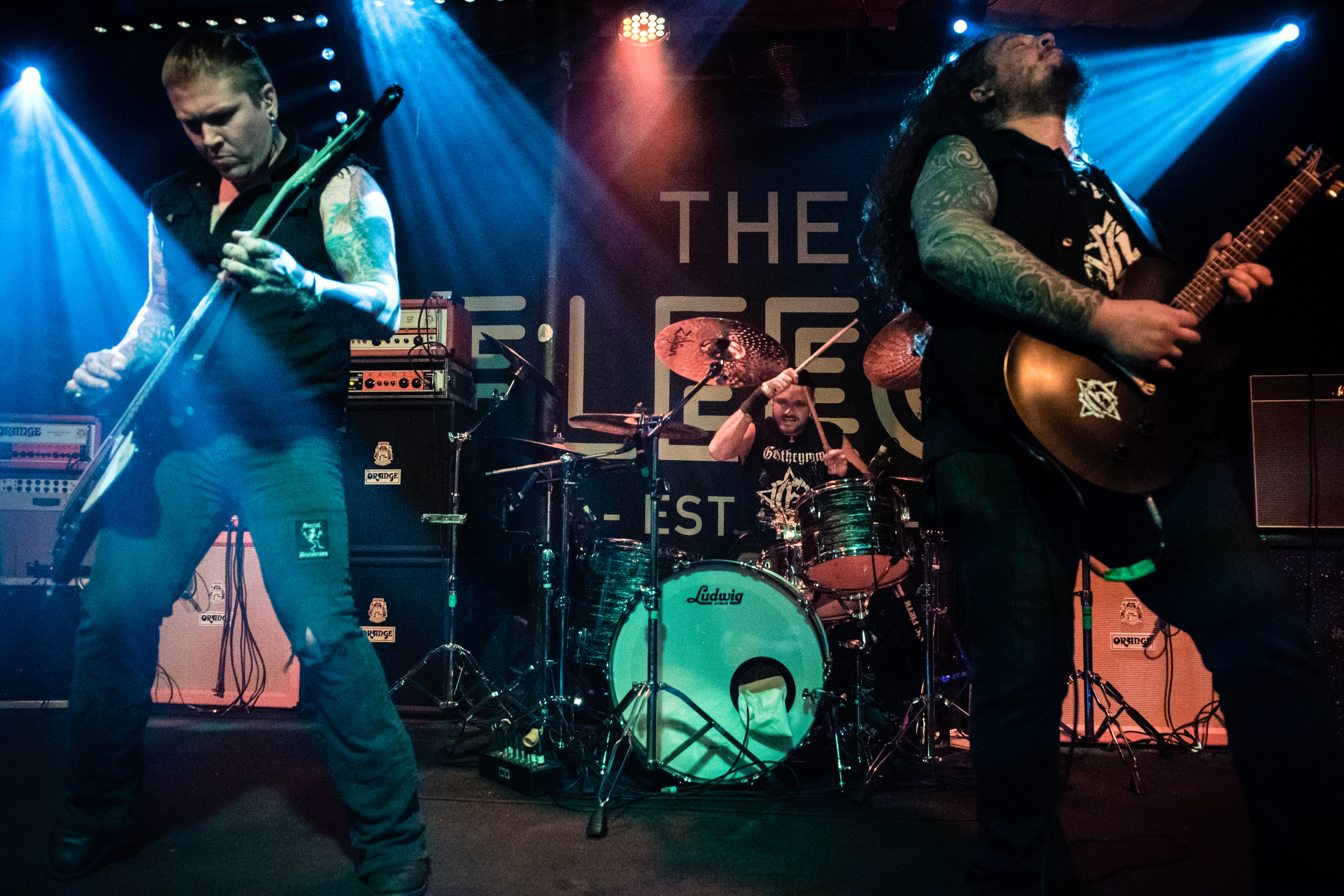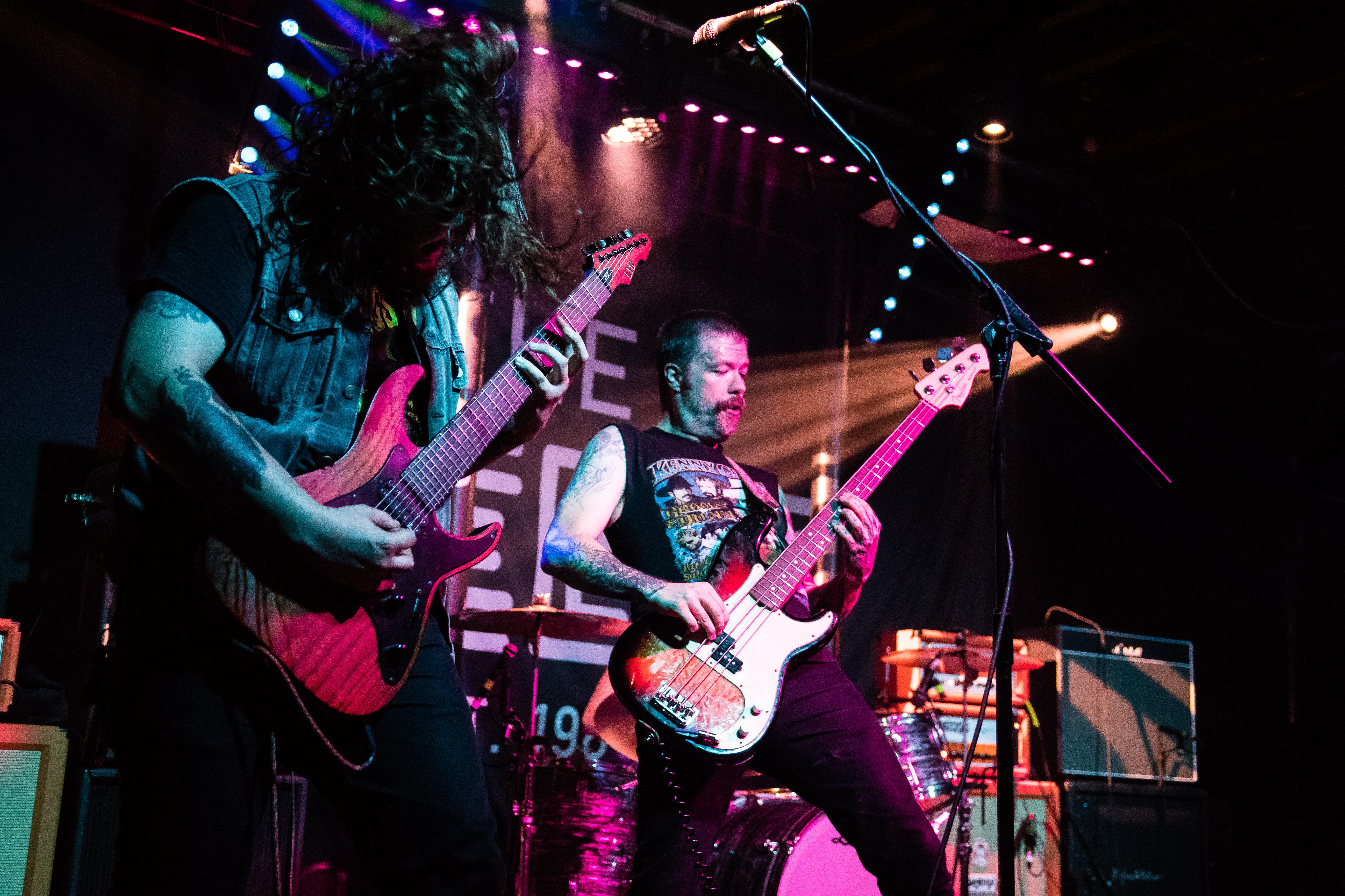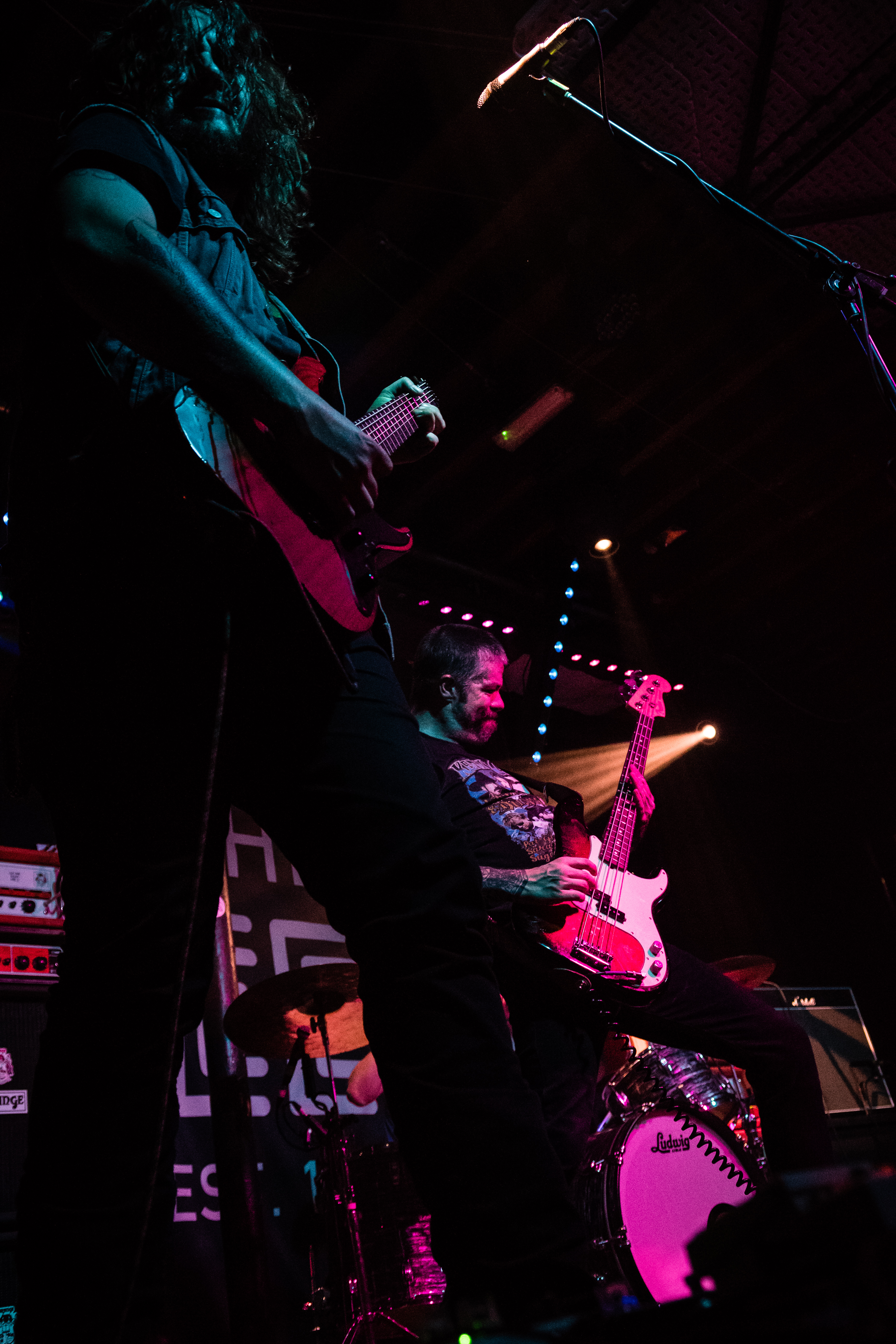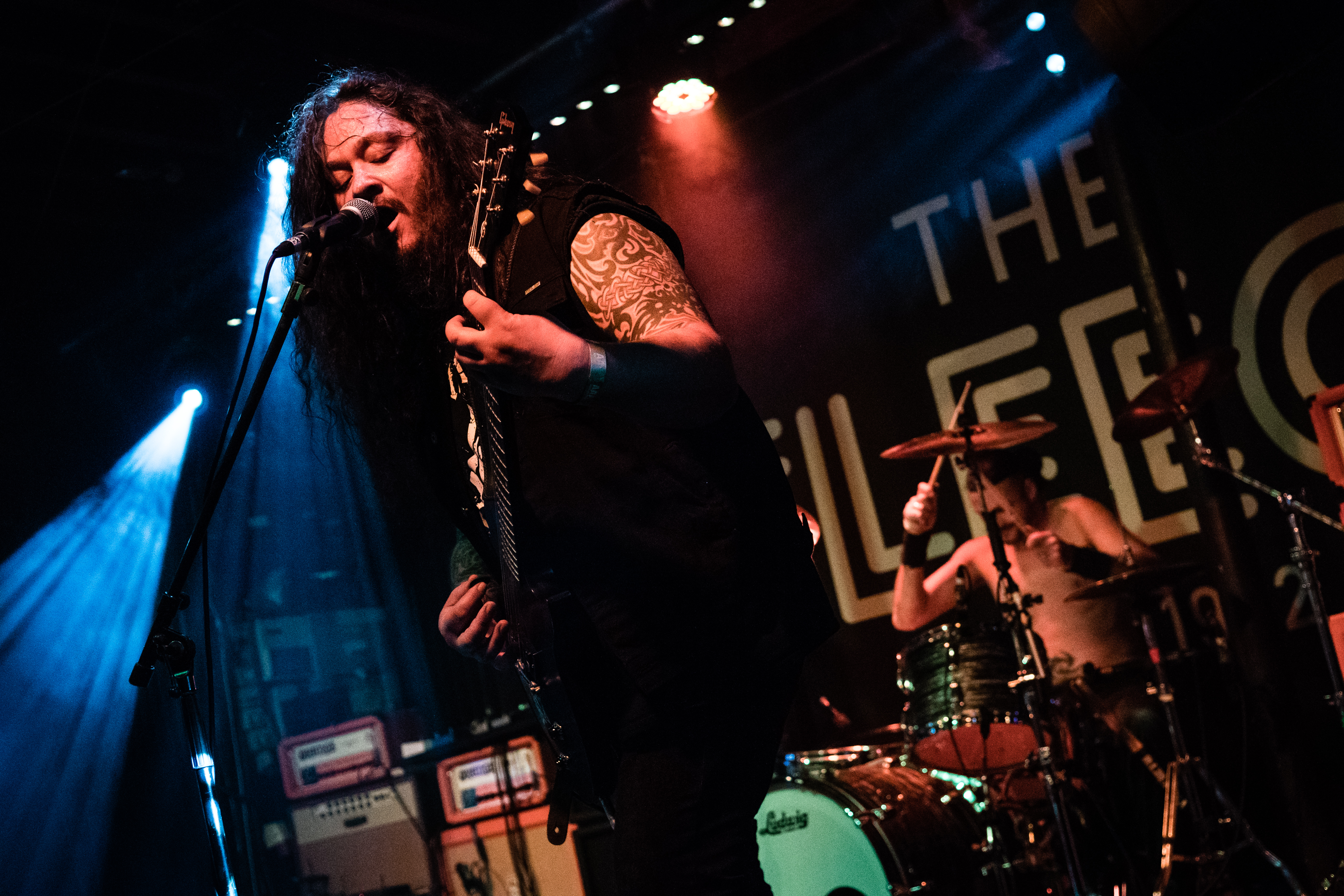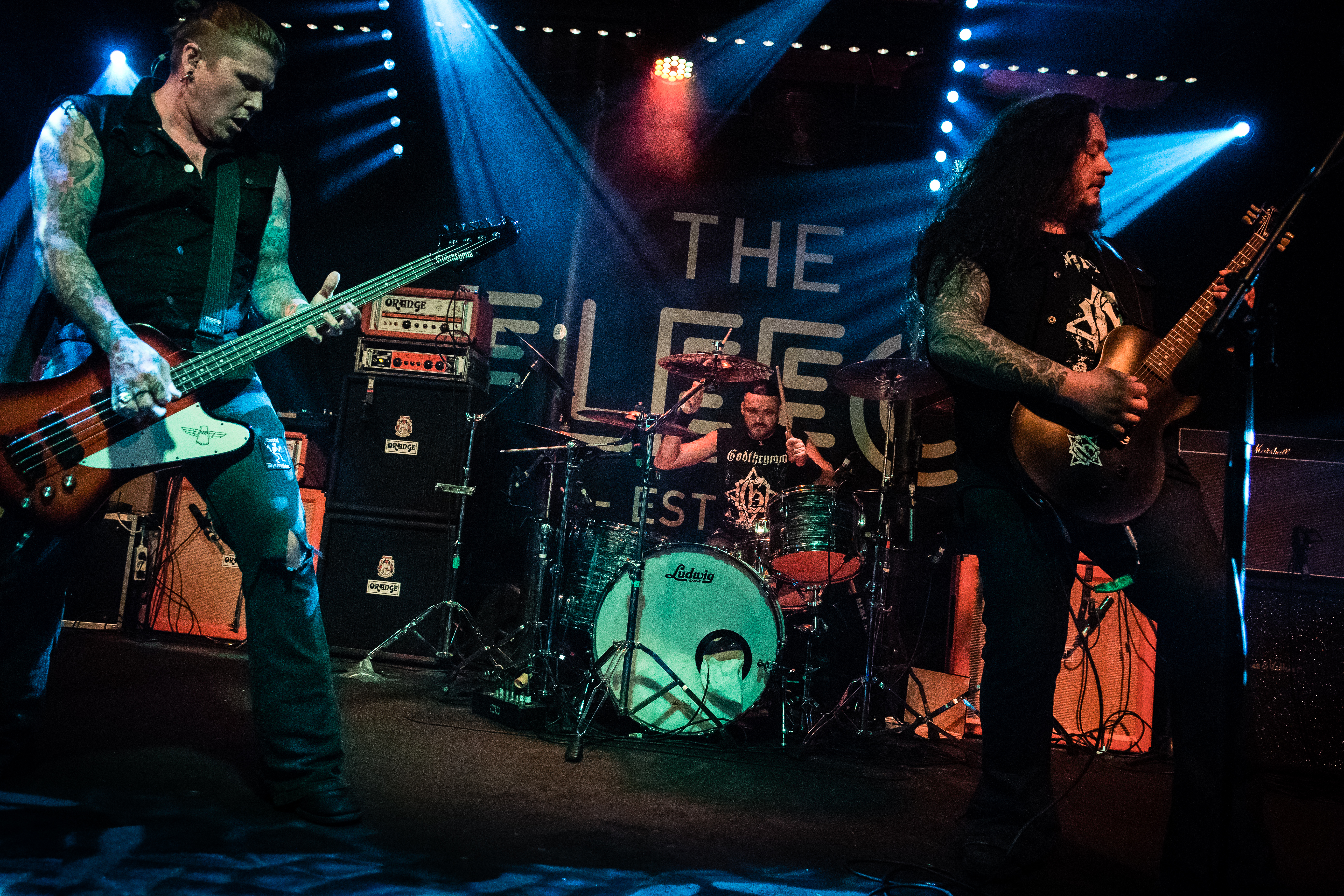 Is there anything worse than technical issues? It’s never a nice thing for a band to experience them, especially before they’ve played a note, but PALLBEARER more than make up for it once mic packs are sorted and frequencies fixed. From the moment that Watcher in the Dark begins its slow, methodical build up to the crushing riffs and soundscapes we all know and love, The Fleece falls under the spell of one of the greatest bands to have broken through in the last few years, and one that will get even bigger. New single Drop Out sounds even more massive live and Dancing With Madness is the absolute highlight of a rousing set that takes everyone inside to another plane of reality completely. The charisma of bassist Joe Rowland adds extra gravity, his gurns and grimaces somehow making things even heavier again as PALLBEARER bulldoze their way through Thorns and Foreigner, the latter of which has the walls physically shaking with the sheer volume pumped out of the speakers. GODTHRYMM‘s Hamish Glencross joins the band onstage for the last two songs, namely Given to the Grave and Devoid of Redemption, and the third guitar add an extra layer that is appreciated by all who are present. It might only be an eight song set, but the journey that PALLBEARER take you on in that time is something that needs to be experienced in the flesh to be truly understood, and if they’re on this sort of form at Bloodstock Festival in a couple of weeks, there might not be a band playing that weekend who’ll top them.