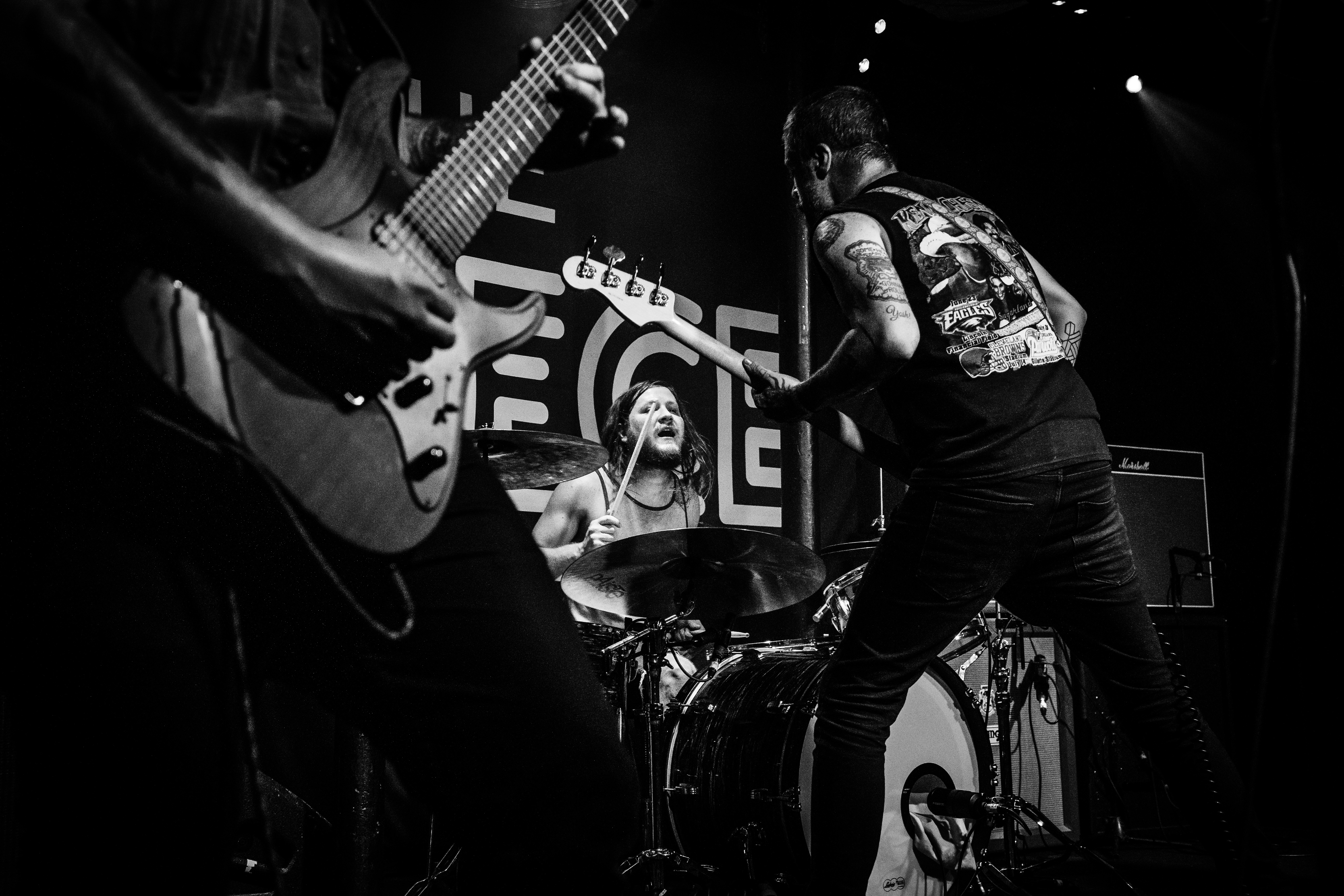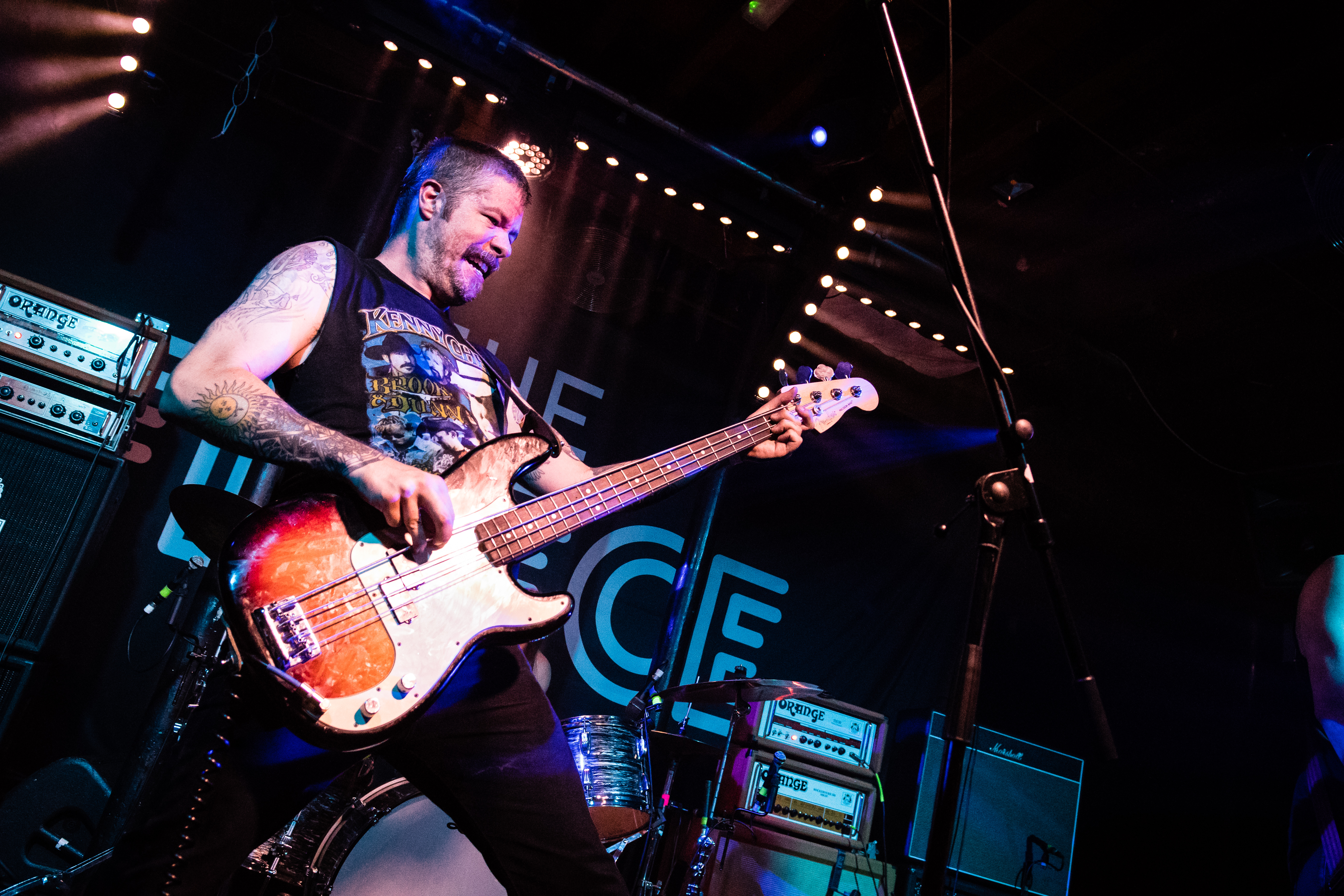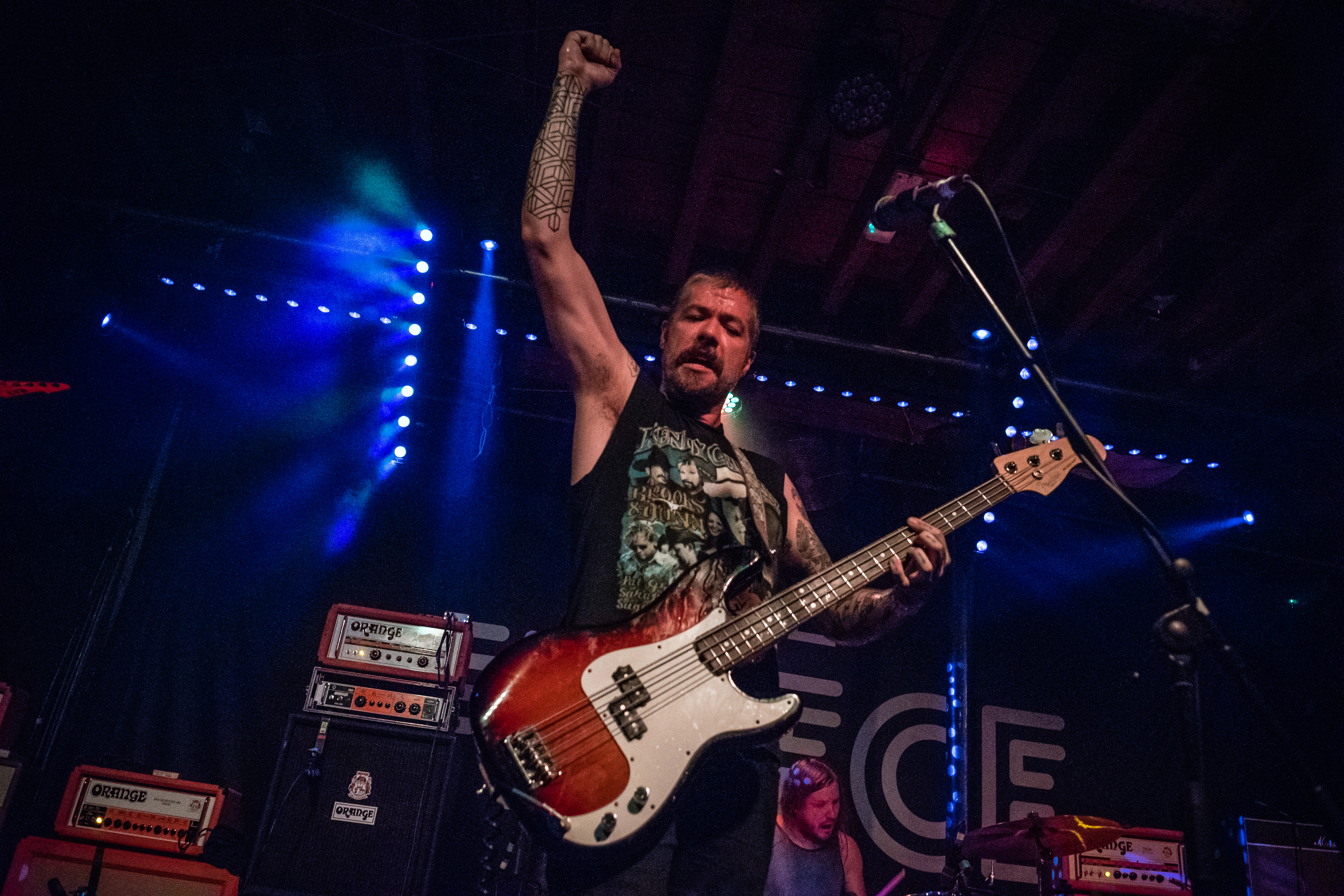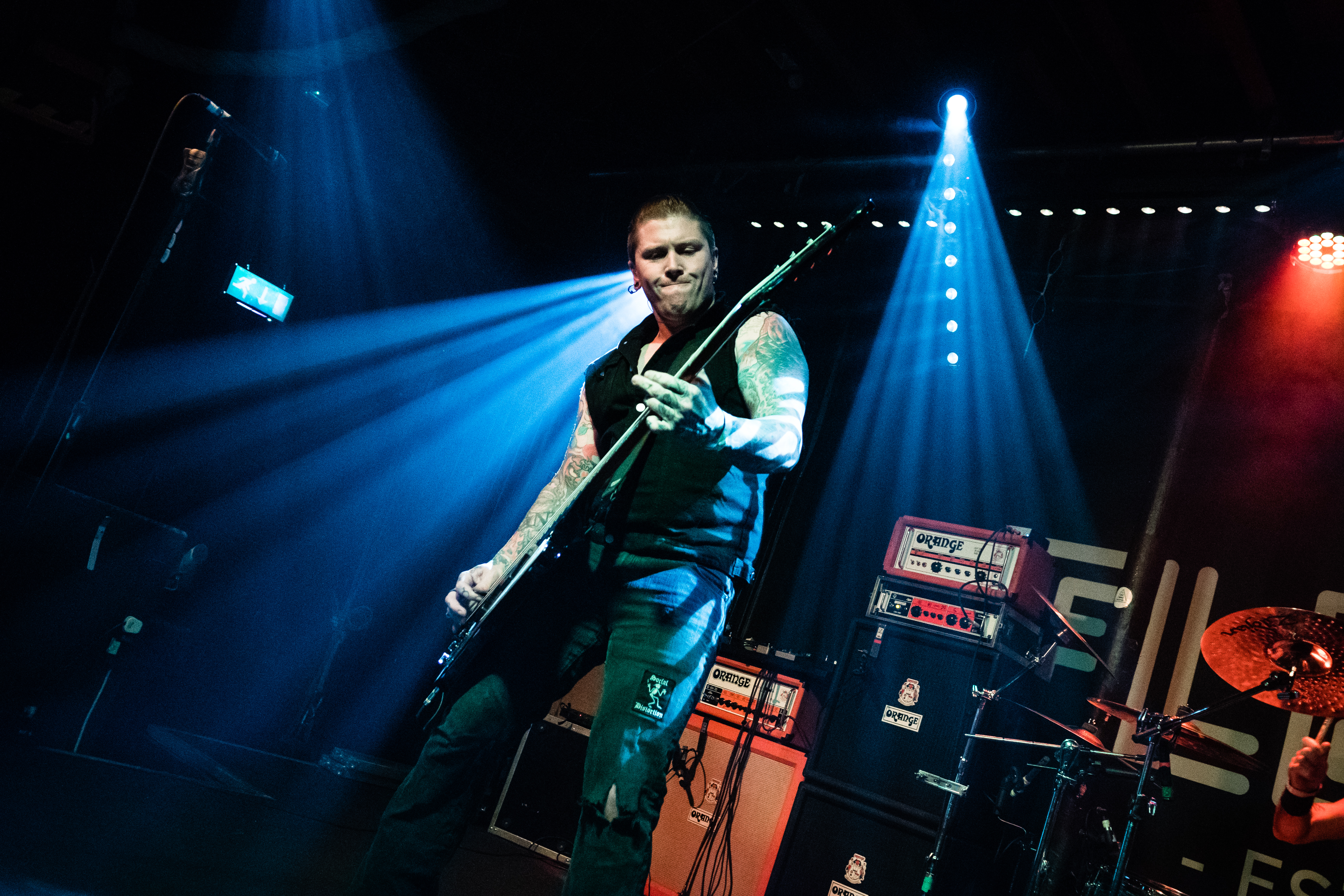 Is there anything worse than technical issues? It’s never a nice thing for a band to experience them, especially before they’ve played a note, but PALLBEARER more than make up for it once mic packs are sorted and frequencies fixed. From the moment that Watcher in the Dark begins its slow, methodical build up to the crushing riffs and soundscapes we all know and love, The Fleece falls under the spell of one of the greatest bands to have broken through in the last few years, and one that will get even bigger. New single Drop Out sounds even more massive live and Dancing With Madness is the absolute highlight of a rousing set that takes everyone inside to another plane of reality completely. The charisma of bassist Joe Rowland adds extra gravity, his gurns and grimaces somehow making things even heavier again as PALLBEARER bulldoze their way through Thorns and Foreigner, the latter of which has the walls physically shaking with the sheer volume pumped out of the speakers. GODTHRYMM‘s Hamish Glencross joins the band onstage for the last two songs, namely Given to the Grave and Devoid of Redemption, and the third guitar add an extra layer that is appreciated by all who are present. It might only be an eight song set, but the journey that PALLBEARER take you on in that time is something that needs to be experienced in the flesh to be truly understood, and if they’re on this sort of form at Bloodstock Festival in a couple of weeks, there might not be a band playing that weekend who’ll top them.