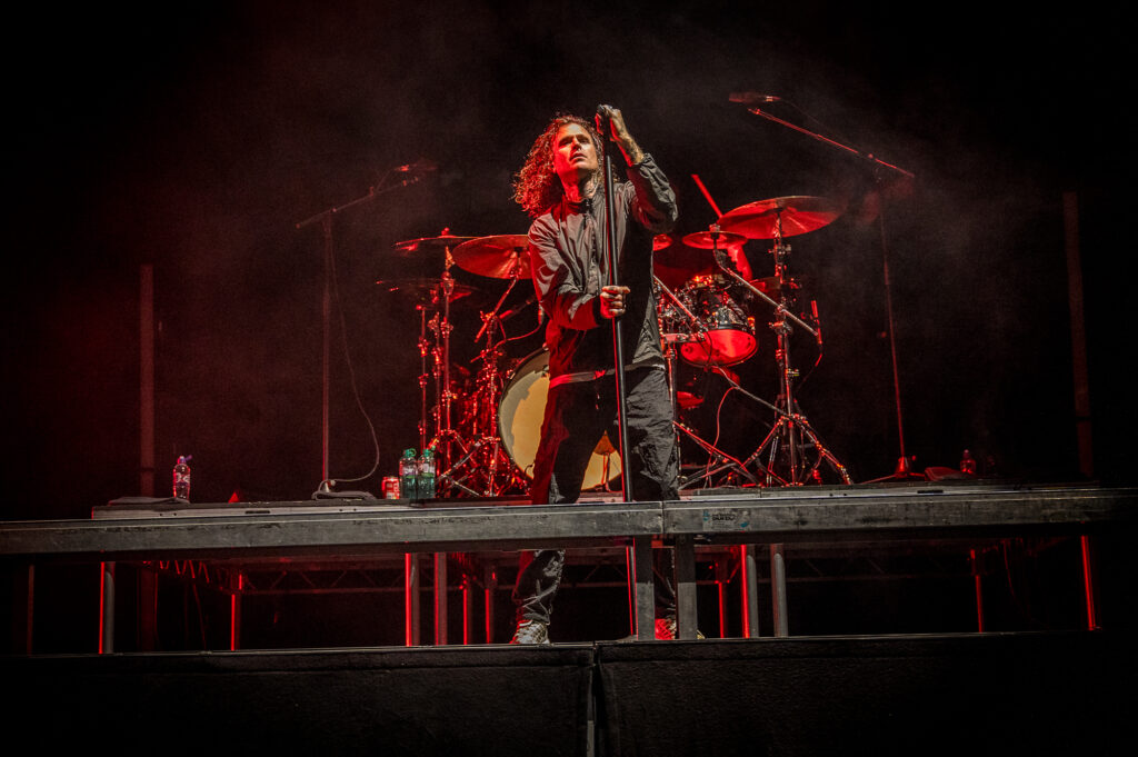 In an attempt to go right back to their roots, the band pushed on with a special mash-up edition of their first album, Killing With A Smile. Ten minutes of full-frontal ferocity, wall-to-wall mosh pits in the swirling sea that overtook the arena’s packed floor. Ten minutes later, Winston decides to take centre stage, becoming an anchor point for the crowd to rally around him for Idols and Anchors. Other tracks like Chronos and Darker Still are elevated spectacularly by a three-piece string accompaniment. The show becomes a symphony, hitting the heavy with the sweet bliss of the duelling violins. Wishing Wells, whilst slow to start, feels eerie with the oncoming rain, with wicked meaning drawn out by the robe-clad dancers, occult and unnerving.Â