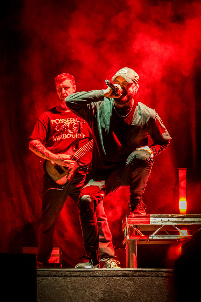 Making a statement about the power of the Australian scene, Winston McCall invites THE AMITY AFFLICTION’s Joel Birch and THY ART IS MURDER’s Andy Marsh for Boneyards. Their gnarly triad of screams adds a damaging dimension to the performance. The band’s attention to detail and dazzle continues with the extended outro on Horizons from guitarist Jeff Ling, as he is hoisted above the stage on a pyro-encrusted platform, with the lingering moments of riffage bringing beautiful moments of reflection to the show.Â