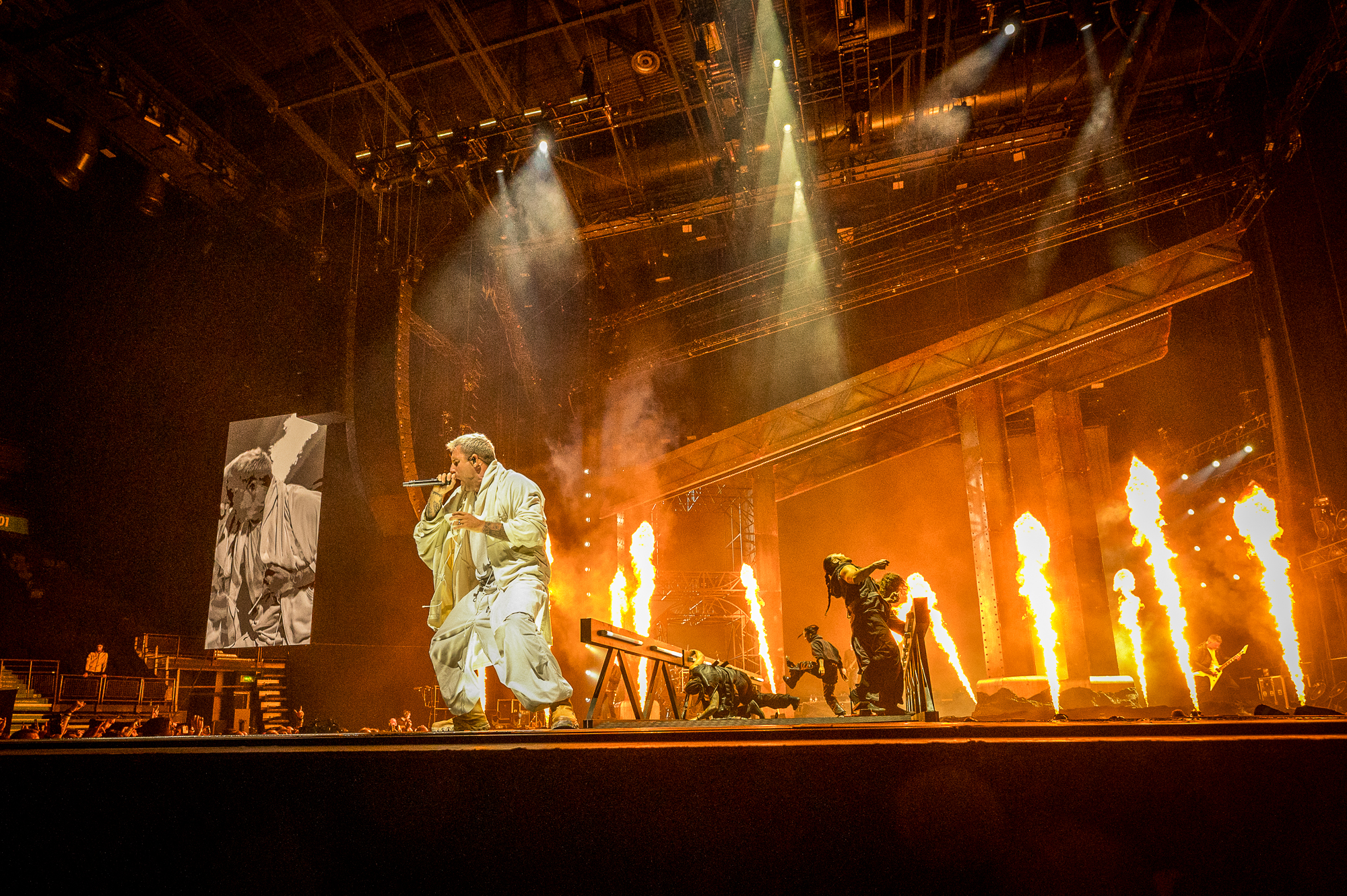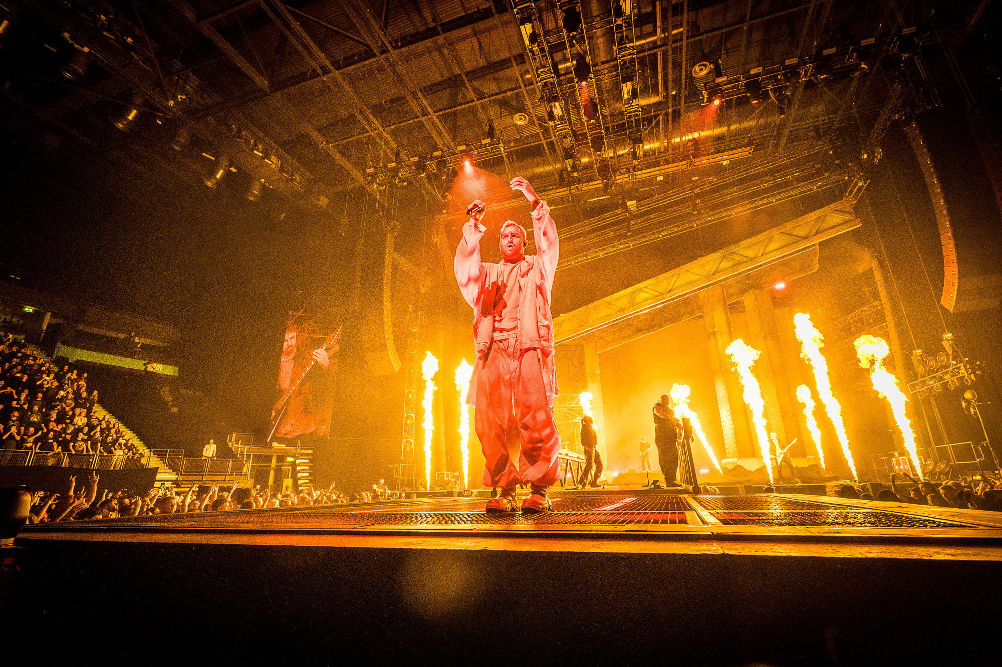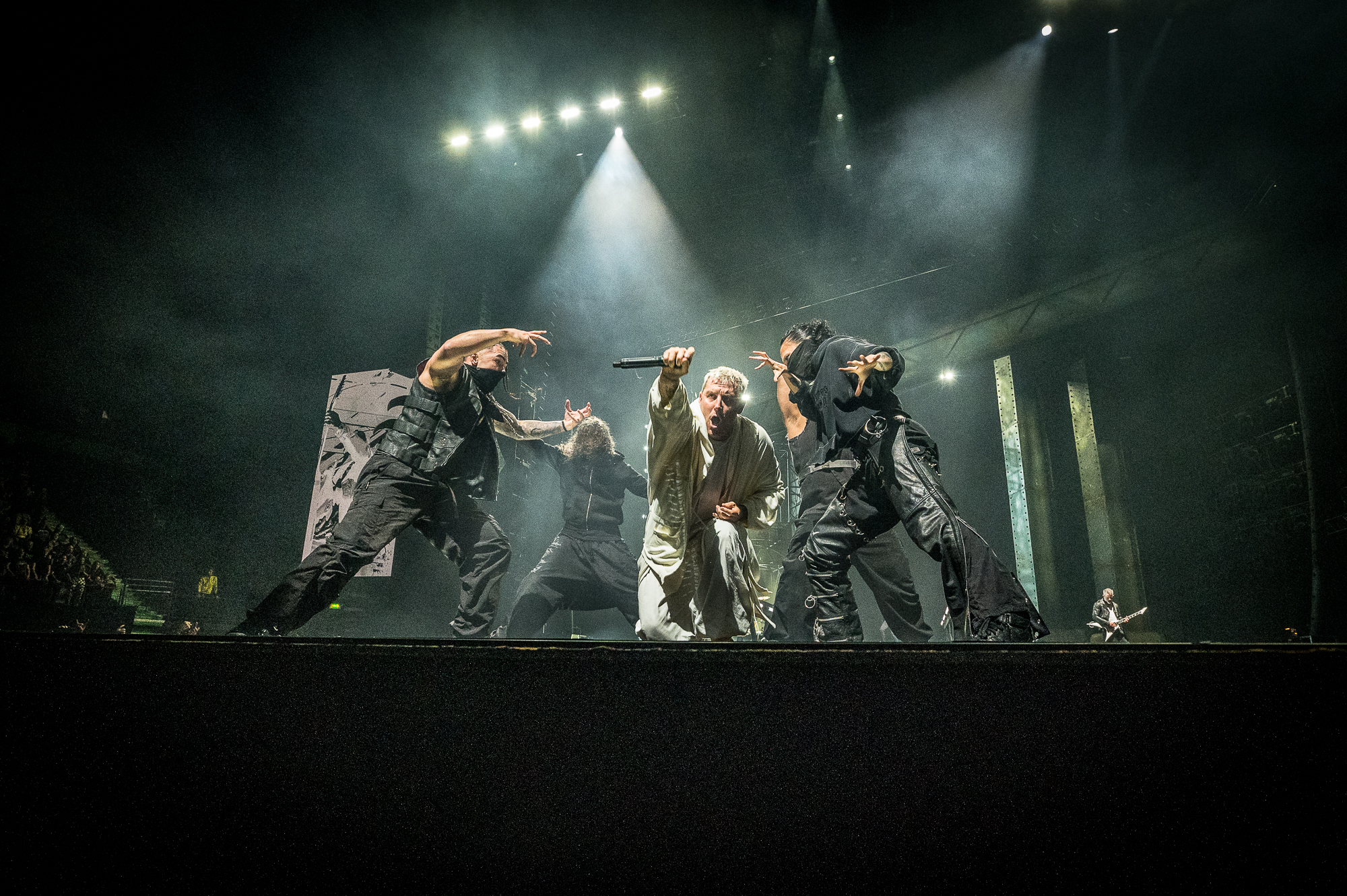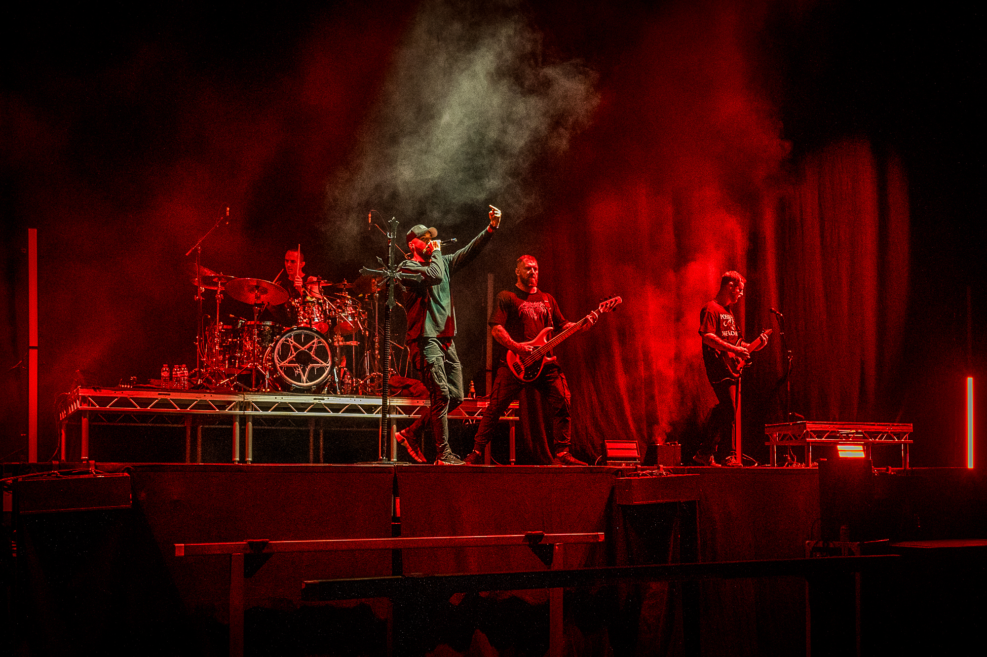 Aside from the final curtain call, this is the most stripped-back the band get. A full dramatic reveal of the stage, dripping with skyline scaffolding and contemporary dancers contort their bodies out of shape into recent-hit Glitch. This is not a show, it’s a full-on production, with the PARKWAY DRIVE fully ascended to maestros of their own hellish creation. The opportunity for pyro overtakes the stage, as it swirls around the band with explosive results. Here, Vice Grip comes unexpectedly early in the set, and the crowd responds with their full undivided attention.Â