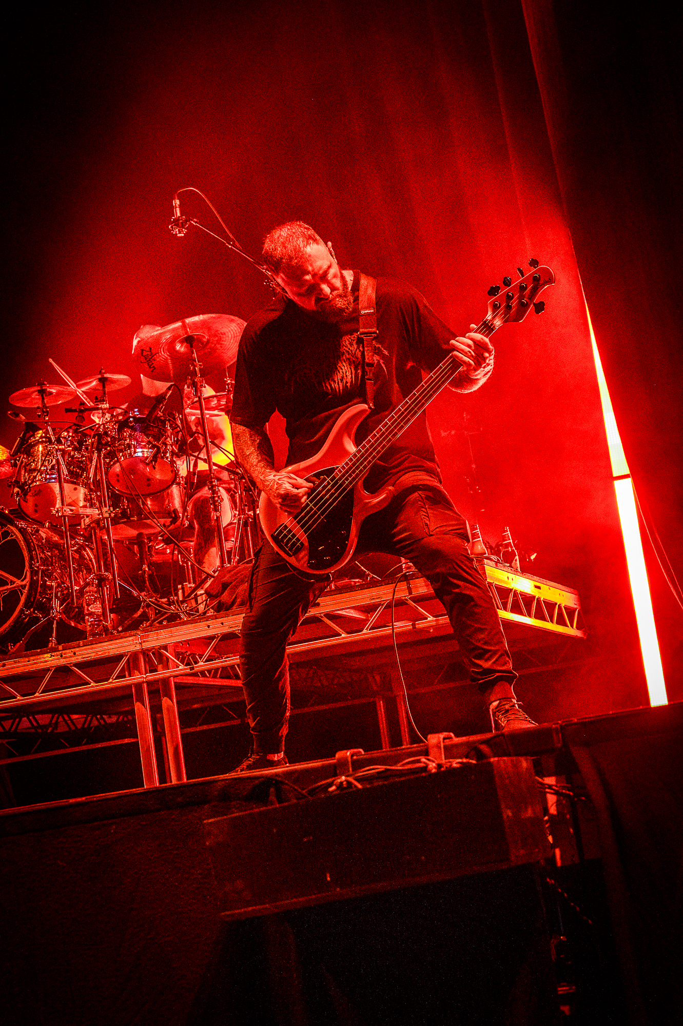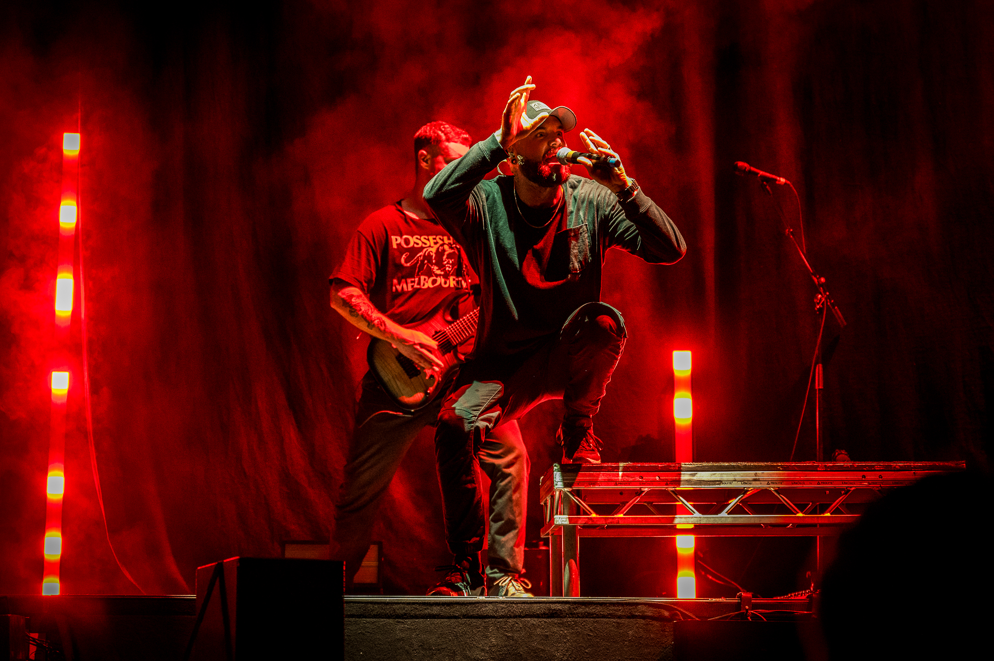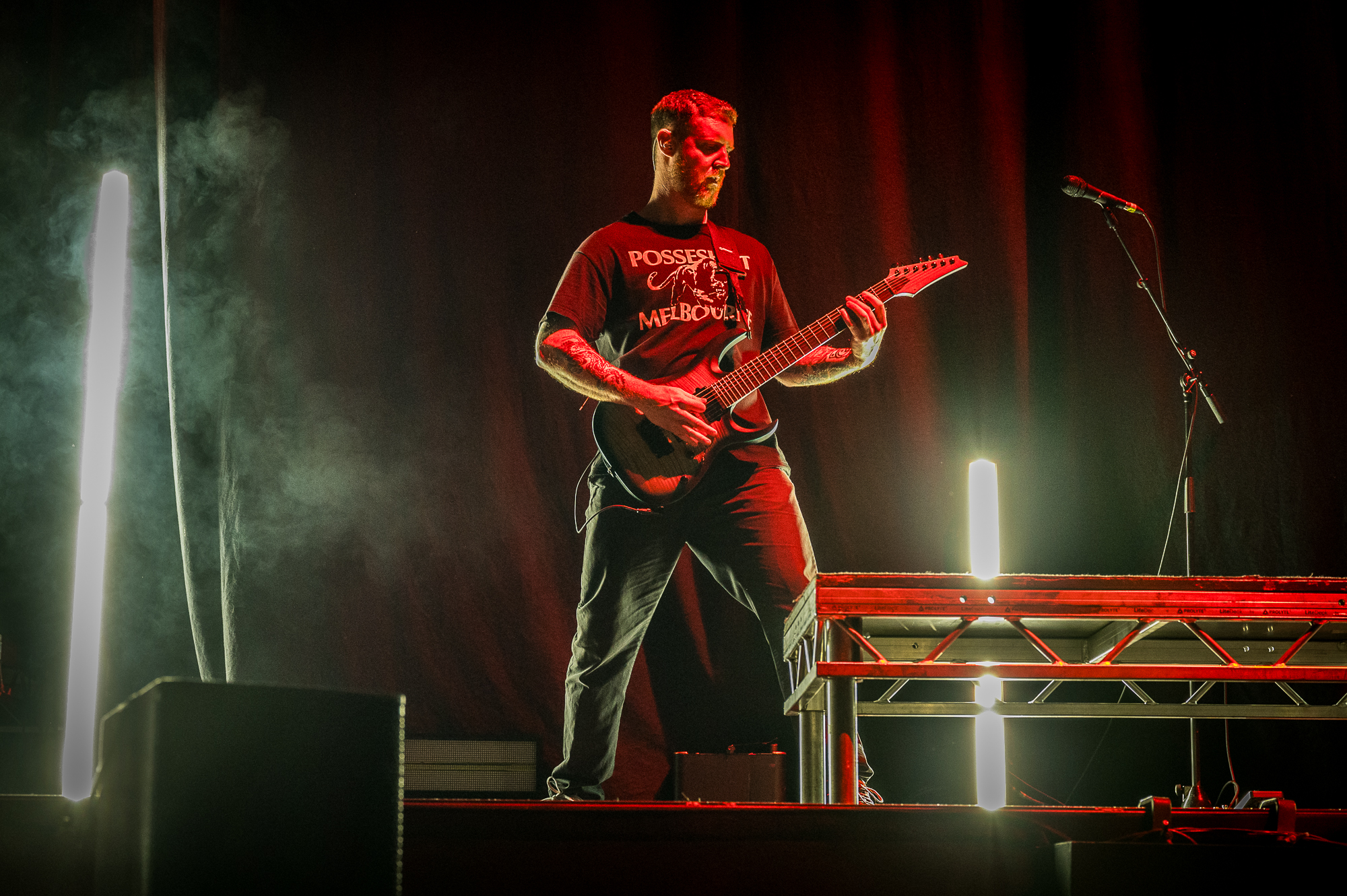 Sydney’s THY ART IS MURDER were at the centre of the evening’s slam sandwich, the deathcore filling that was both sweet and packed a punch. From beginning to end, they brought the heat that got the crowd fully warmed up for the headliner. Impressive and impactful, from the slicing guitar breakdowns to Tyler Miller’s enthralled howls, there was method in their madness. Amongst the jokes and the drama that came with their dazzling rainbow-filled entrance to VENGABOY’s We Like To Party – showcasing yet again that the heavy metal love of Europop is universal- there was seriousness in the power and a determination that came with the new, fully-formed era for the band from their latest album Godlike.