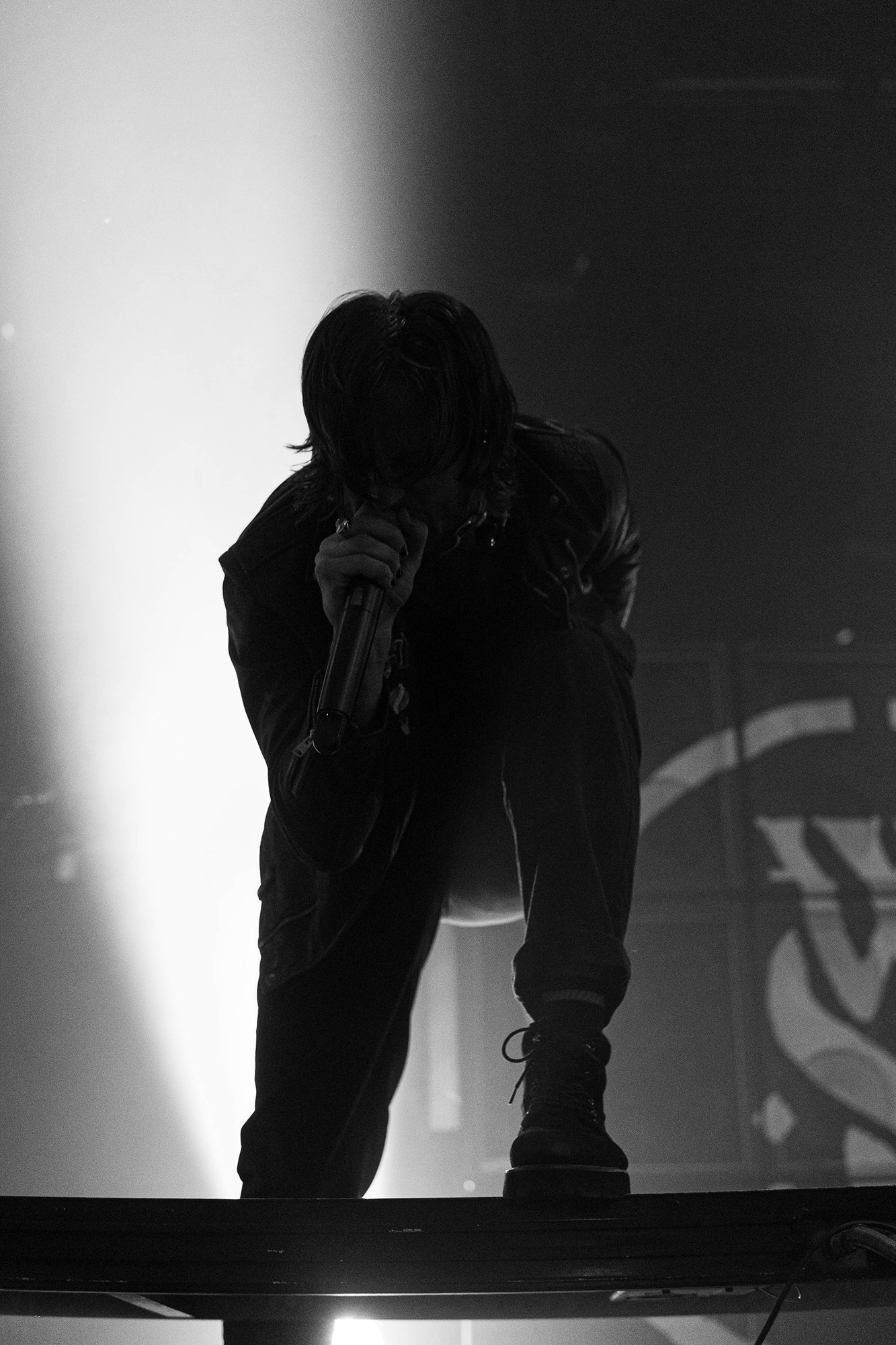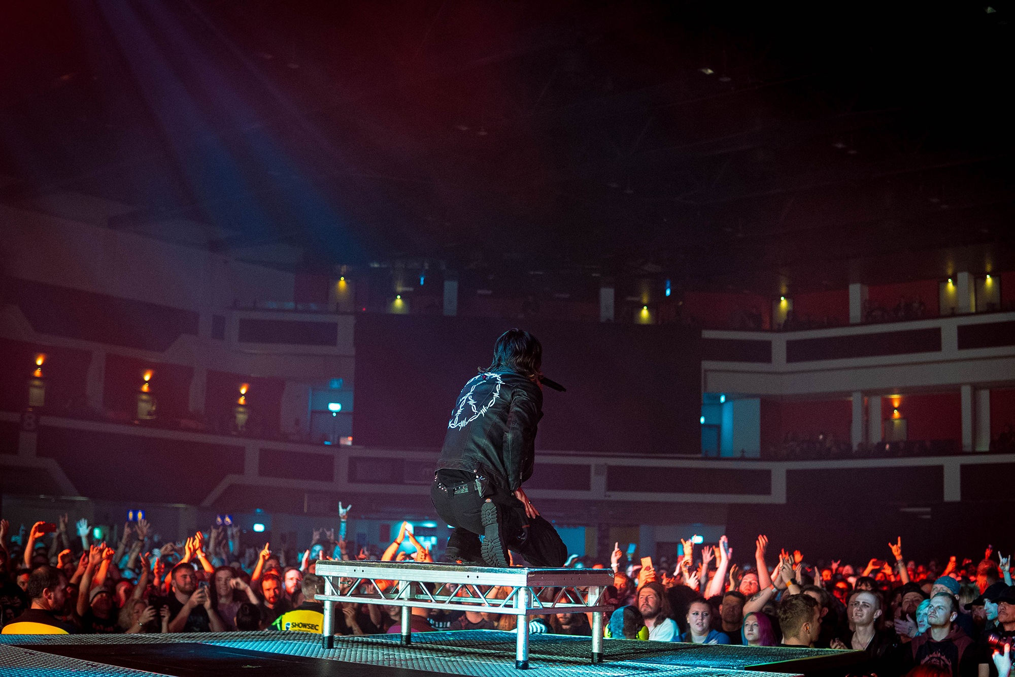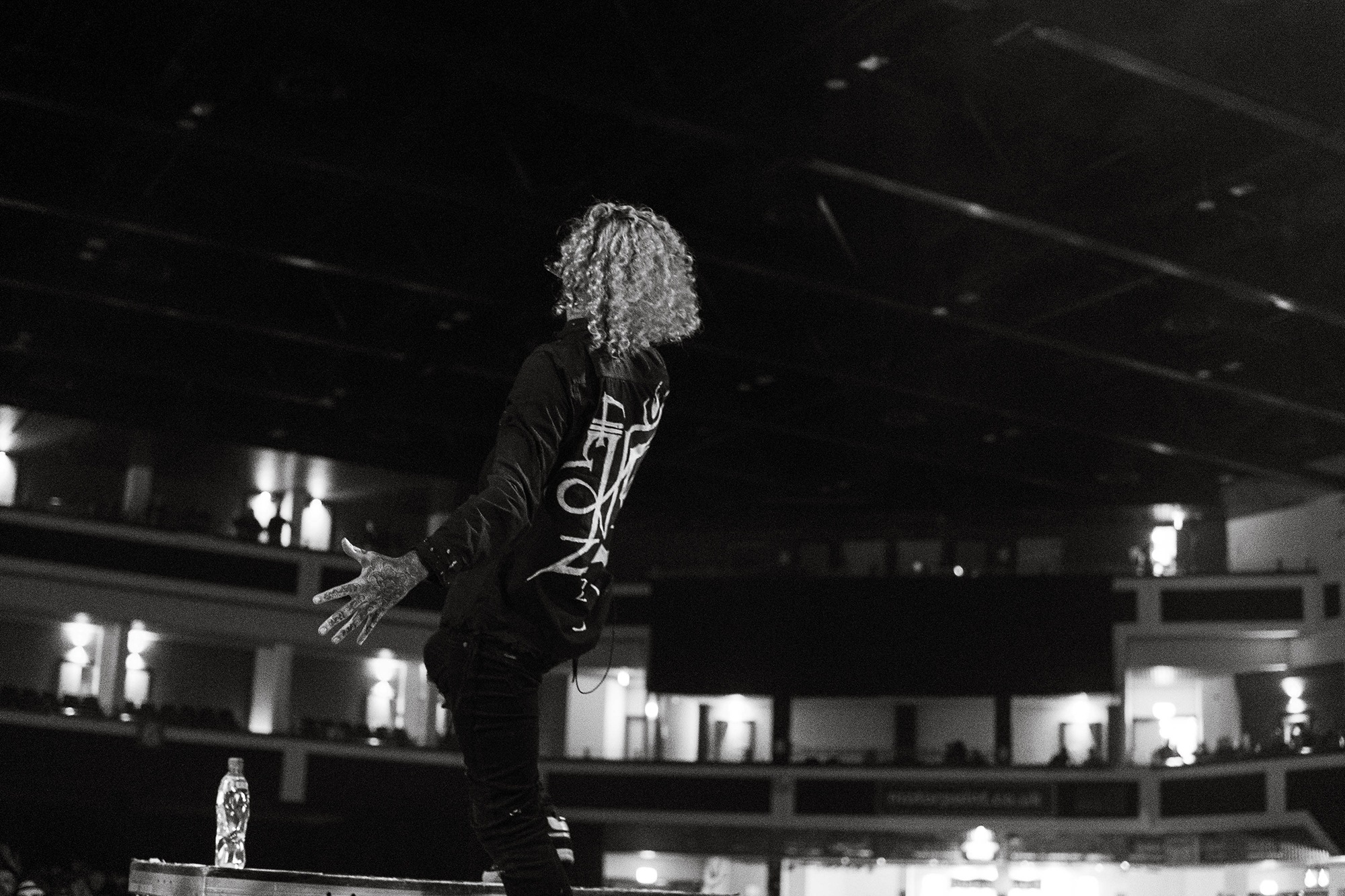 With WHILE SHE SLEEPS dropping the announcement that they will be headlining Alexandra Palace in September of next year, they’ve got a point to prove: namely that, despite their status as main support, they’ve got the presence and the power to play these sorts of venues outright. By the time they come offstage, there’s no doubt in anyone’s minds that they can. SLEEPS SOCIETY has an already fired up crowd whipped into a frenzy in next to no time, whilst the material from SO WHAT? – arguably the band’s weakest record – goes incredibly hard live, especially a jaw-dropping bludgeon through THE GUILTY PARTY. The ego ramp at the front of the stage makes frontman Loz Taylor look ten feet tall, a giant shape that jumps onto the front rows for I’VE SEEN IT ALL…although not without consequence. “Whoever decided to try and stick their middle finger up my arse, I hope you have a dogshit Christmas!” bellows Taylor as EYE TO EYE sees multiple circle pits open up and Silence Speaks bring over even more crowdsurfers. The question now isn’t whether WHILE SHE SLEEPS can headline arenas; it’s why they haven’t done so sooner.