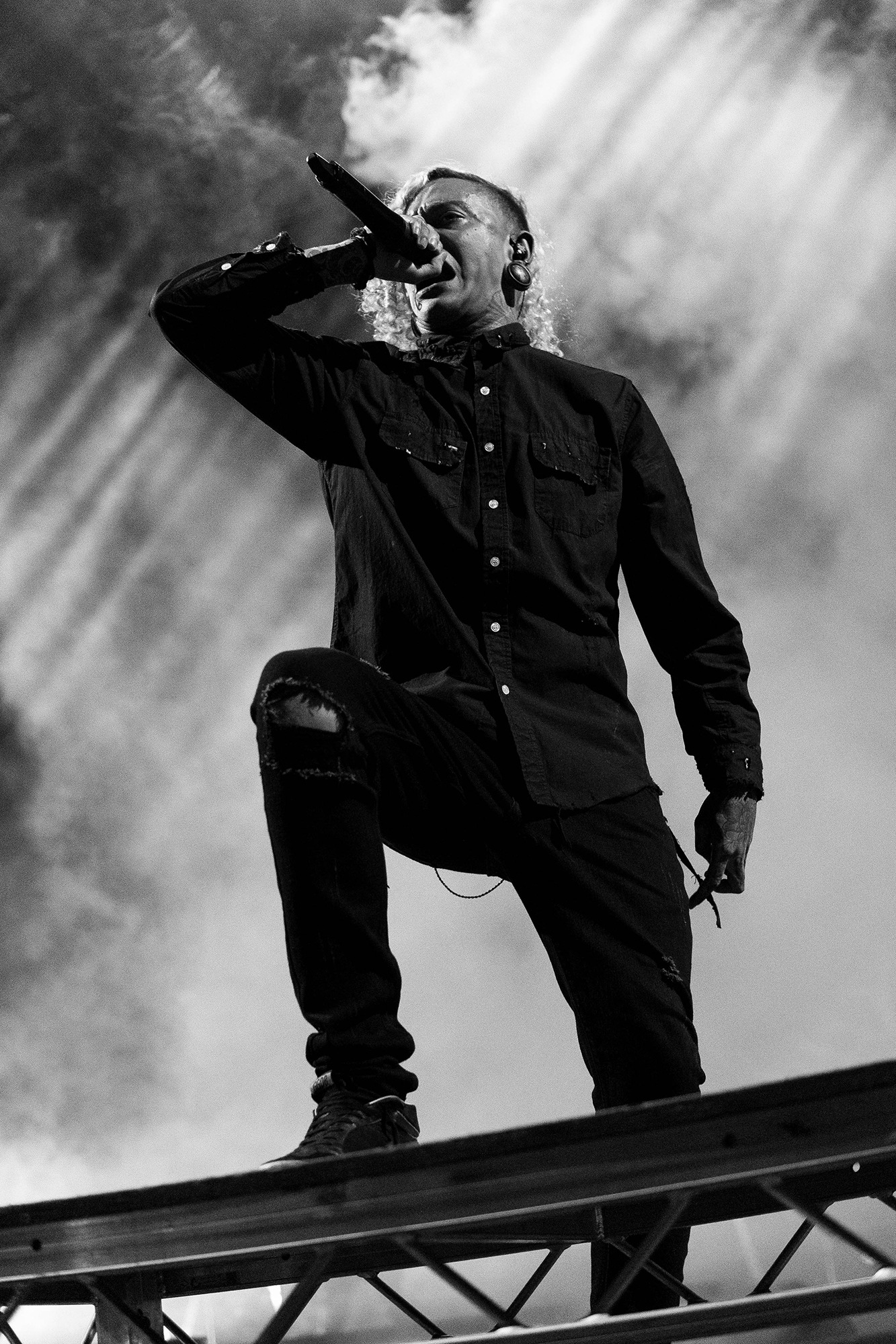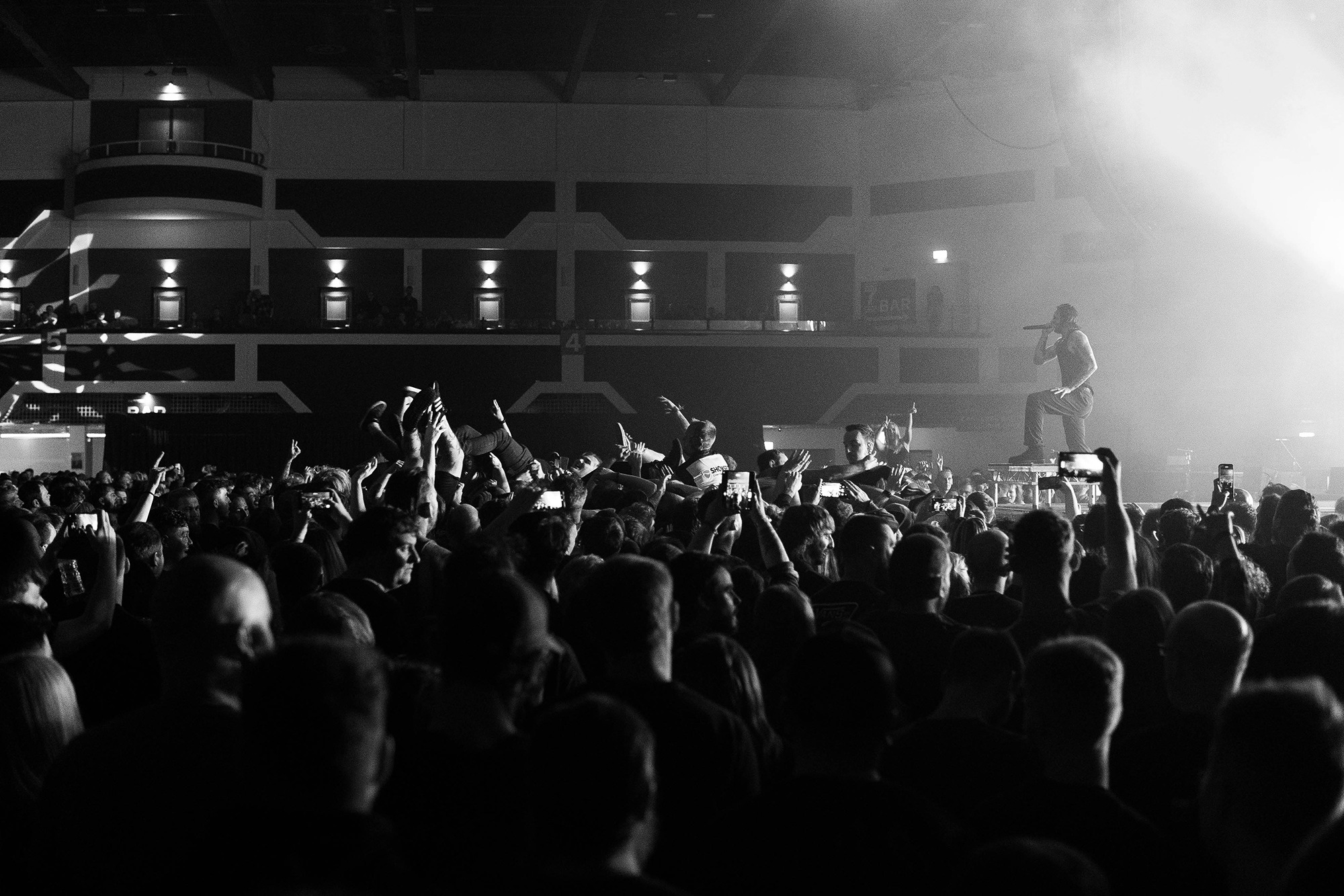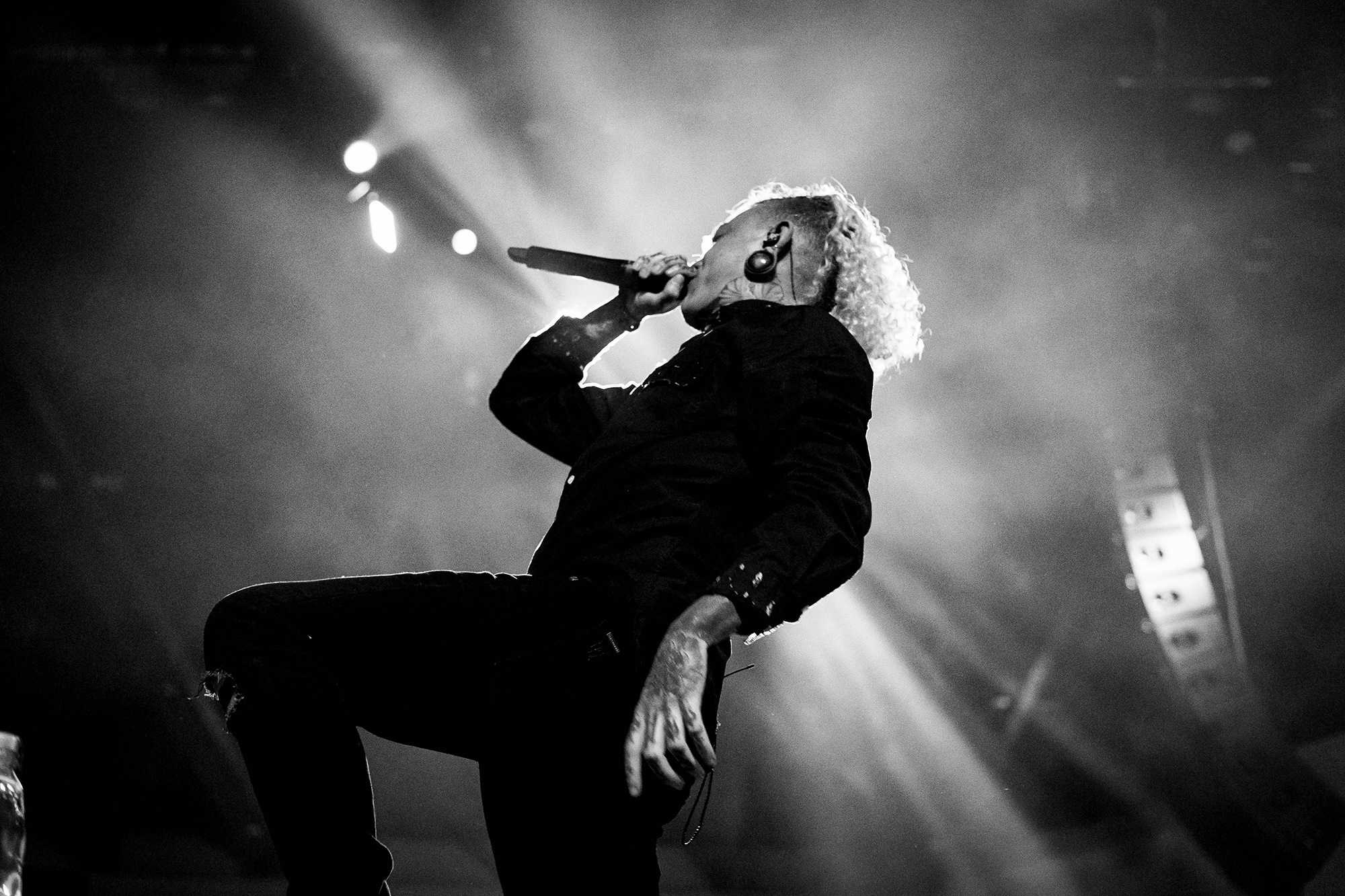 With WHILE SHE SLEEPS dropping the announcement that they will be headlining Alexandra Palace in September of next year, they’ve got a point to prove: namely that, despite their status as main support, they’ve got the presence and the power to play these sorts of venues outright. By the time they come offstage, there’s no doubt in anyone’s minds that they can. SLEEPS SOCIETY has an already fired up crowd whipped into a frenzy in next to no time, whilst the material from SO WHAT? – arguably the band’s weakest record – goes incredibly hard live, especially a jaw-dropping bludgeon through THE GUILTY PARTY. The ego ramp at the front of the stage makes frontman Loz Taylor look ten feet tall, a giant shape that jumps onto the front rows for I’VE SEEN IT ALL…although not without consequence. “Whoever decided to try and stick their middle finger up my arse, I hope you have a dogshit Christmas!” bellows Taylor as EYE TO EYE sees multiple circle pits open up and Silence Speaks bring over even more crowdsurfers. The question now isn’t whether WHILE SHE SLEEPS can headline arenas; it’s why they haven’t done so sooner.